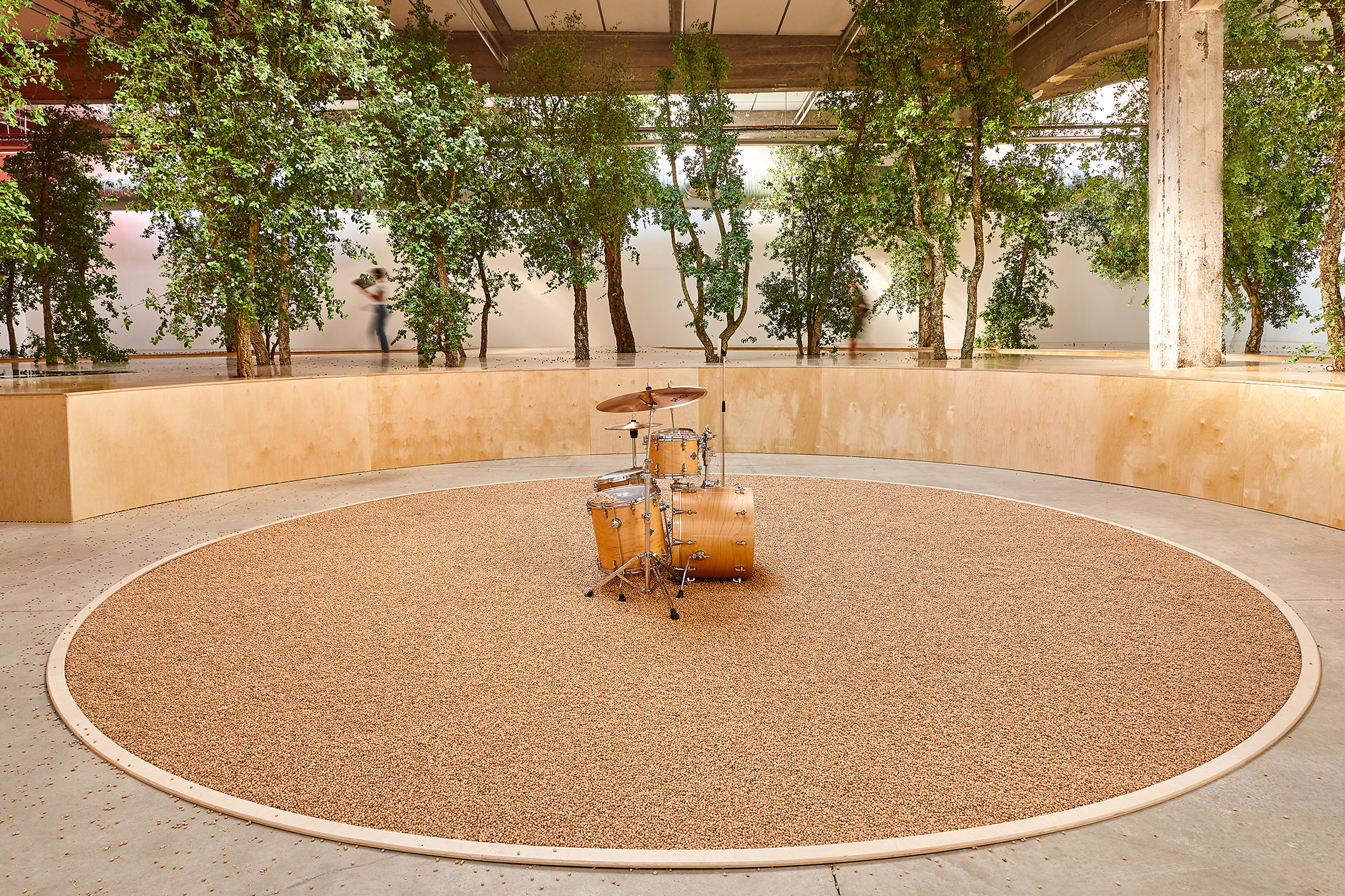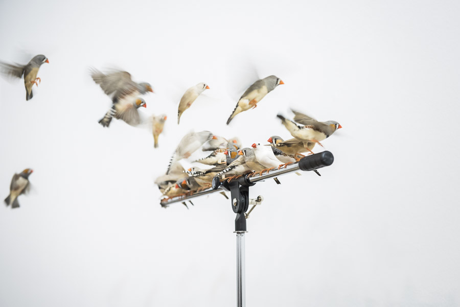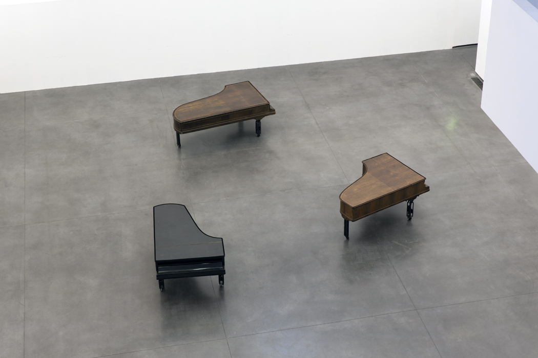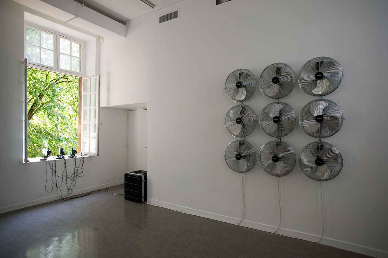 Céleste Boursier-Mougenot invites us to be listeners who also see, who explore the modalities of permanence and present and to be, as he calls it, «distracted listeners». Noises in our daily environment or residual noises that are not made for a musical purpose are rich in a potential that Céleste Boursier-Mougenot’s installations transform into a «listening experience». The sound of a car driving by, of a chair that’s being dragged, the familiar hum of appliances or the clinking of porcelain bowls floating in a kids’ pool: those are all the fleeting data and materials used by Céleste Boursier-Mougenot to conceive the installations that accompany the physiological rhythm of our life and that extend the expectations of «environment music». He uses the flaws of his systems and technical incidents like audio or video feedbacks; he plays on the mismatching of sources with virtuosity: video signals are treated like sounds, he connects harmonicas to vacuum cleaners or uses electric guitars as bird tables..