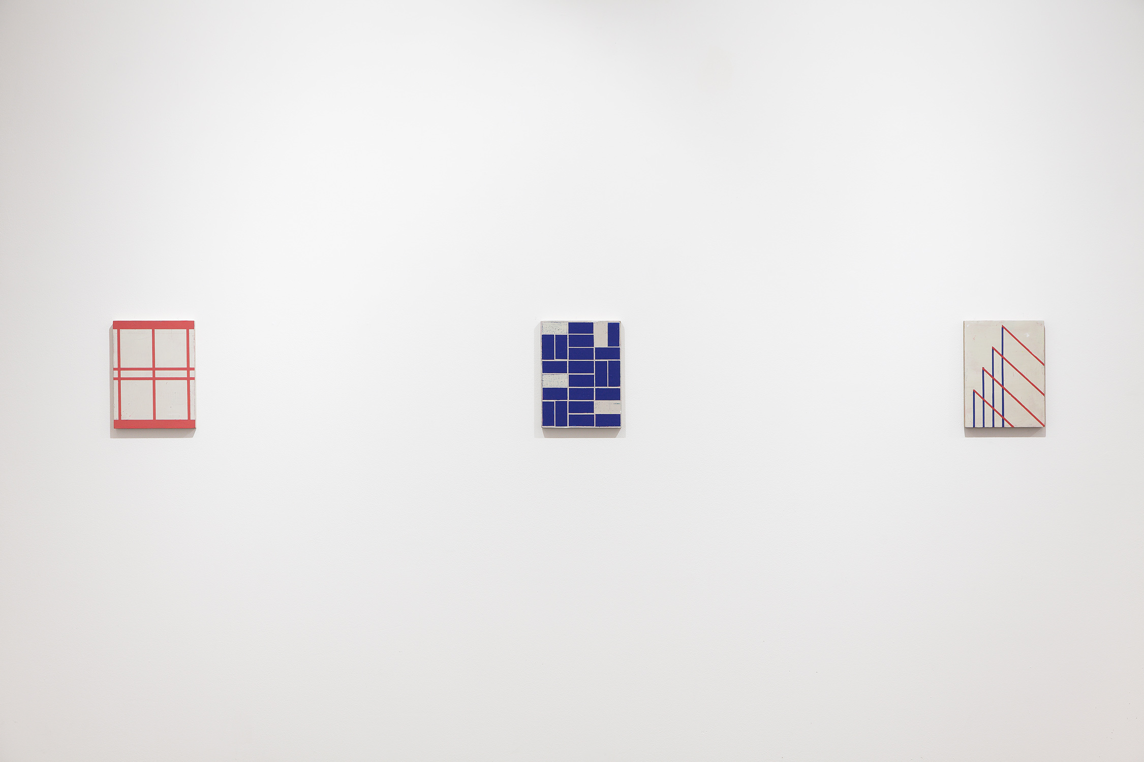 During his wanderings, he seeks out gems of color, shape and composition which he discovers on billboards or other media. The colors of logos and graphic patterns are then transposed and re-interpreted with brushes, using a layered technique, so that his works are halfway between a precious object and a fragment from the world of design. The scale of these paintings, mainly on wooden panels, invite the viewer to pay a tribute to the world of advertising and design. And through works of identical formats, whether small or large, the artist draws forgotten parallels between the history of abstraction and that of a more common visual universe.