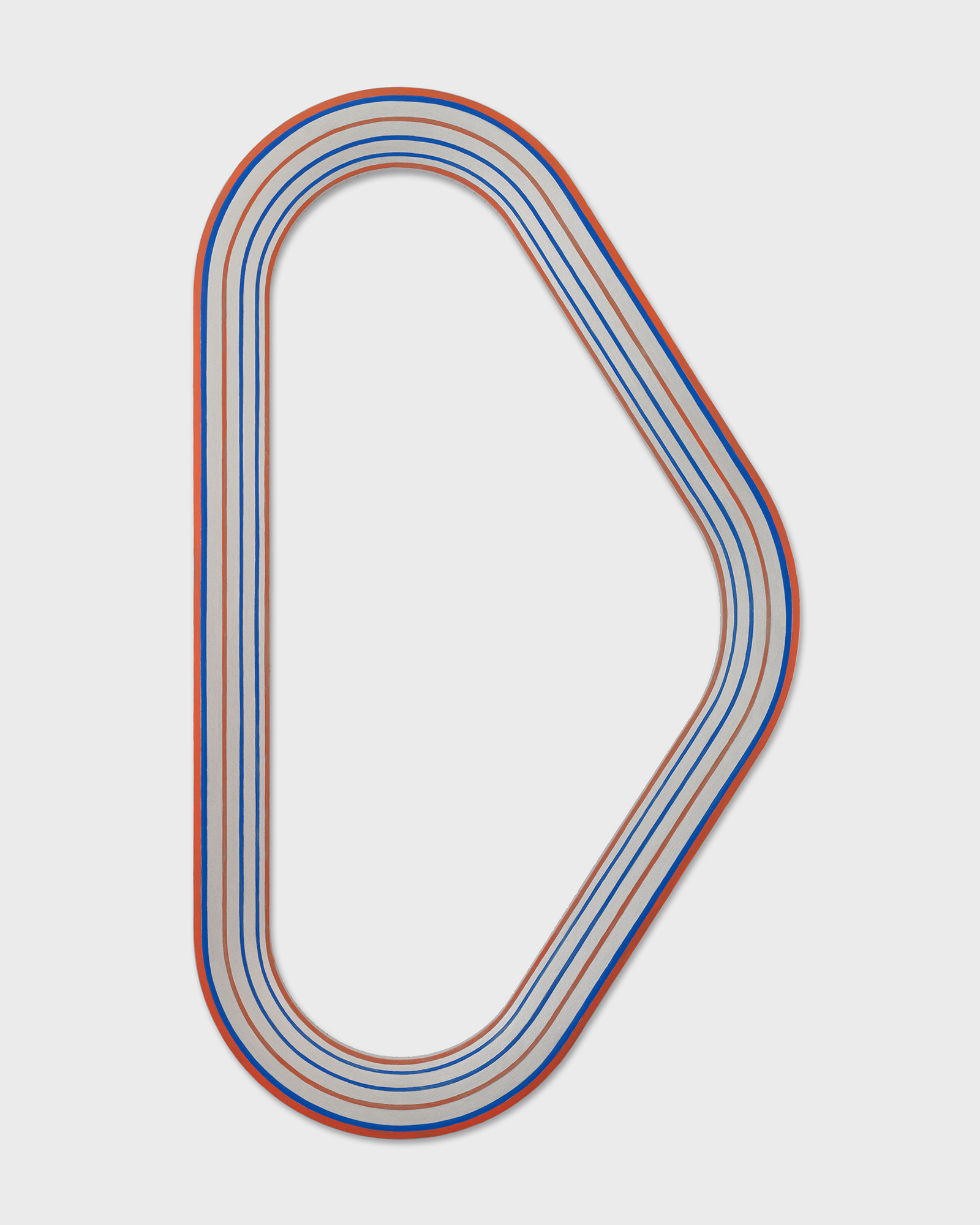 Blair Thurman creates multi-dimensional paintings that recall the pleasures of the road or the big screen of our youth. His influences range from pop art to minimalism, popular music, 70’s cinema and his childhood memories. Standardized figures from small race car tracks, architectural settings and compositions from everyday life take on a nostalgic quality. The artist probes the intersection between our cultural environment and our fantasies, examining the memory and poetry embedded in the very act of looking and offering us a work that goes beyond the field of art history, which he inscribes in a broader cultural history, at the crossroads of cinema, literature and industrial design.
