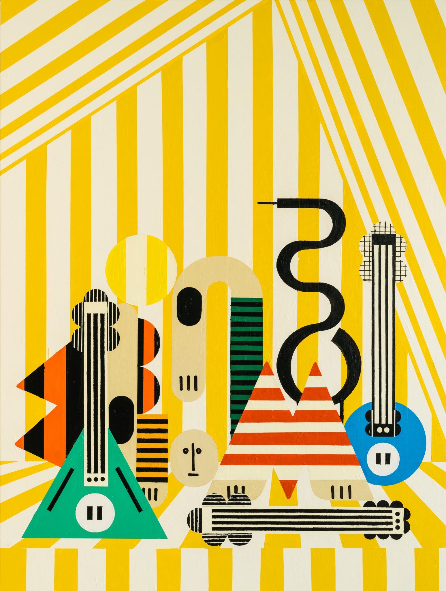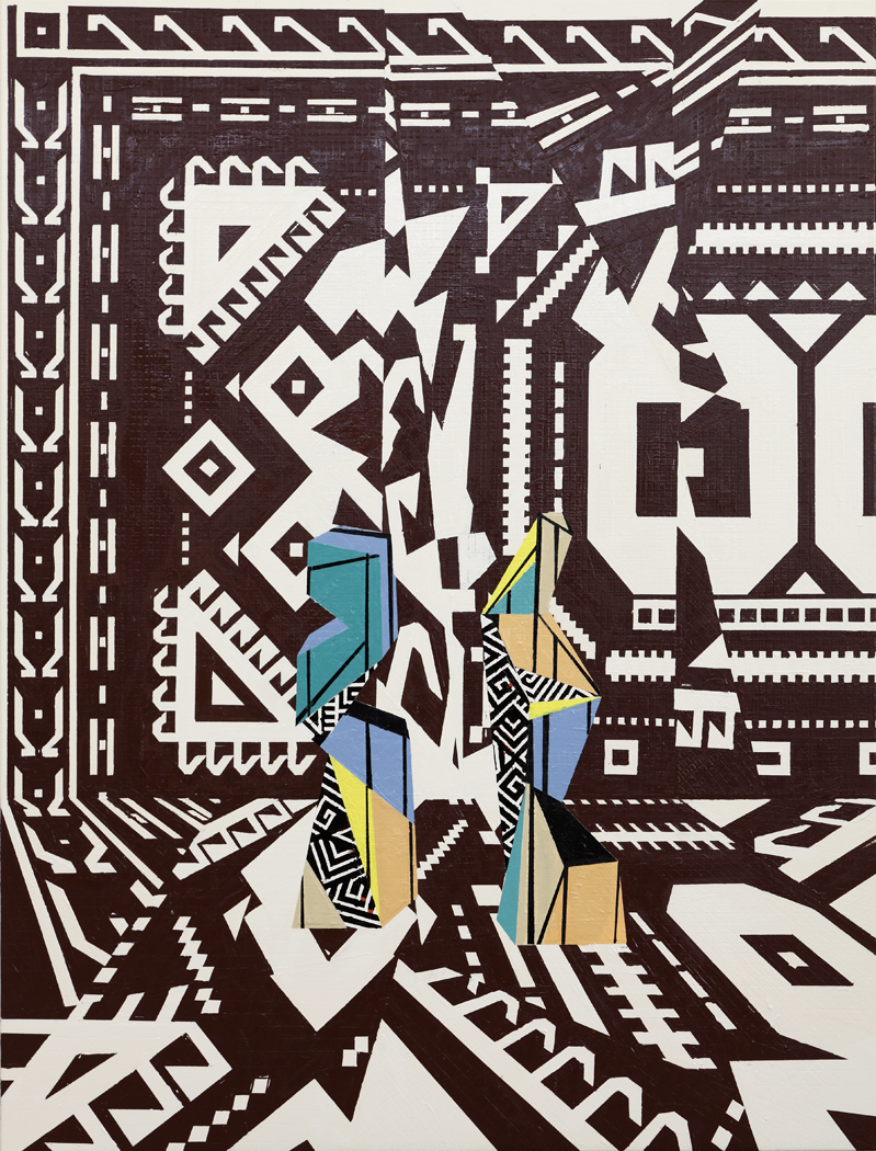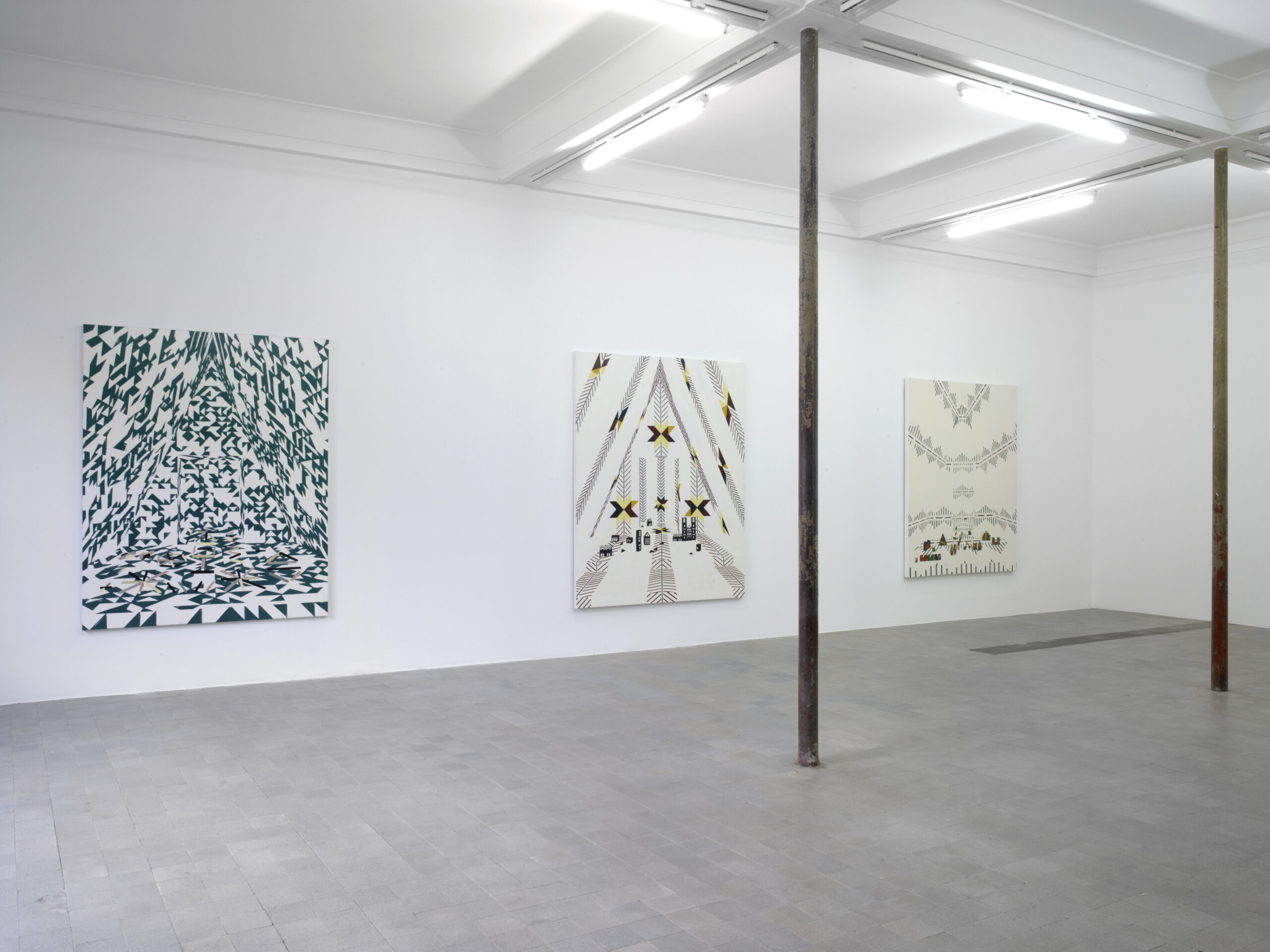 Farah Atassi develops a figurative painting using the vocabulary of abstract painting: the geometric shapes that efficiently make up the composition create spaces in which the objects are put on “display”. Her paintings deals with thick layers and repentance that contrast with the rigidity of straight lines. Similar to a collage, they meticulously combine anachronistic forms with contradictory appearances, borrowed from sculpture, painting, and design. Through her complete dedication to this media, Farah Atassi develops a painting style that is simultaneously conceptual and joyful.