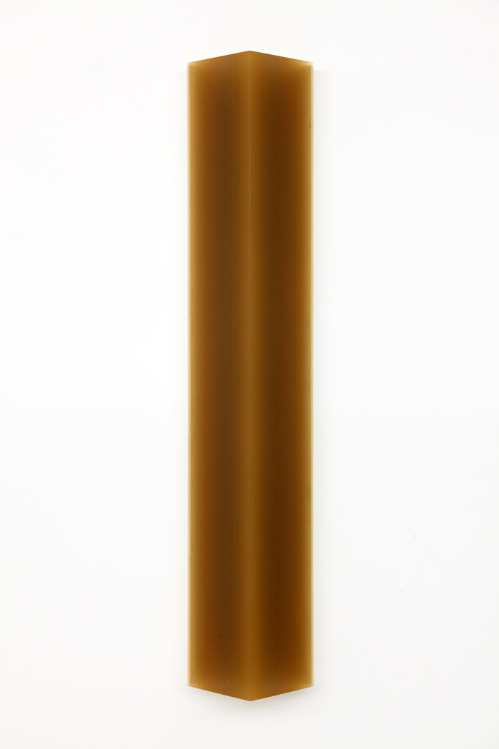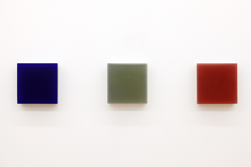 Hamak plays with both the physical properties that allow color to appear to the eye and also with the diverse aesthetic mediums that enable color to attract our eyes. Because the color is imprisoned in a translucent material, it can interact with the surrounding light. Light passes through the paintings, endowing them with a vaporous aspect that belies the true weight and mass of the object.