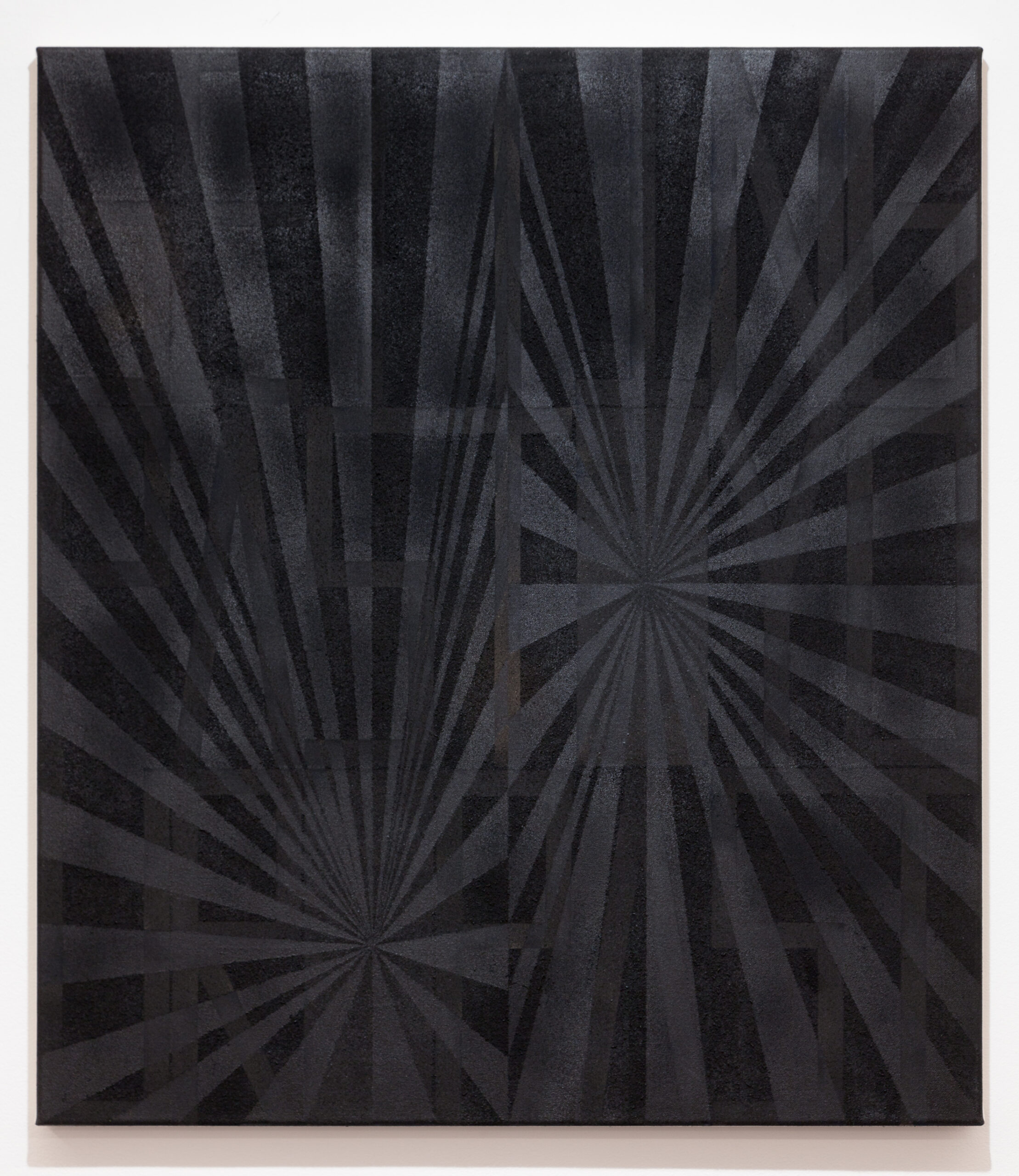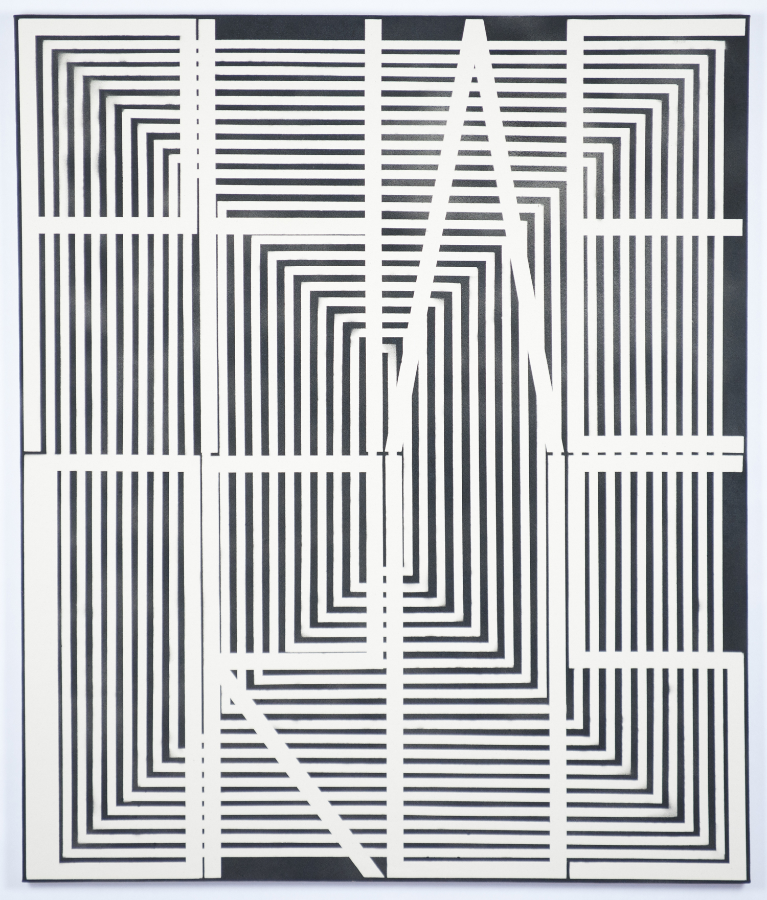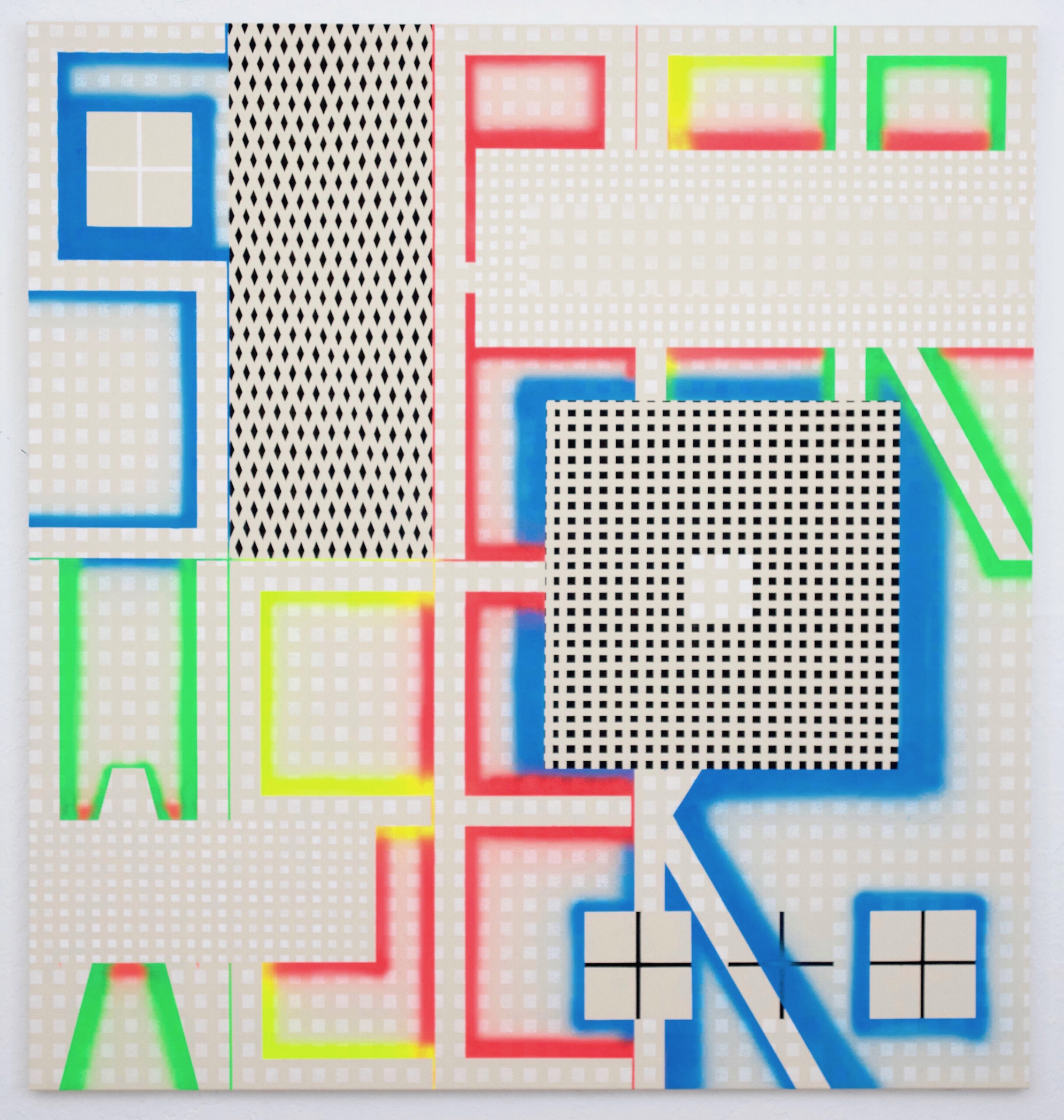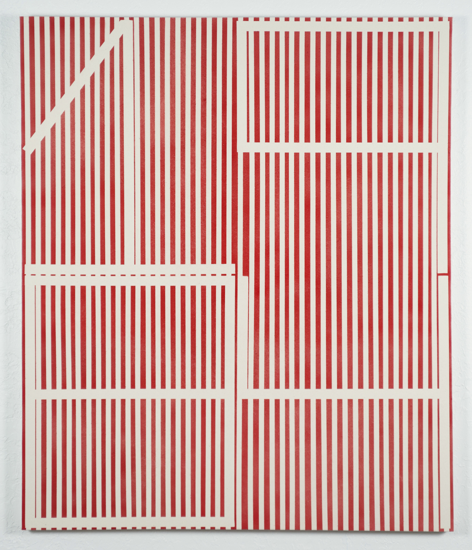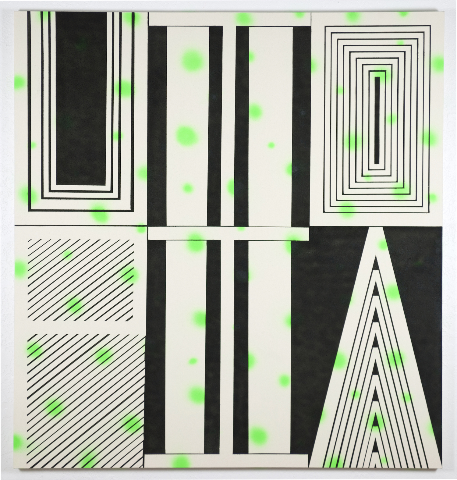 The artist also pursues an endless experimentation with numerous techniques. He combines the use of acrylic brush and spray paint, stencils and masking tapes, prepared and raw canvases. John Phillip Abbott constantly reinvents traditional ways of paintings and introduces unexpected shifts between graphic intention and process related accidents.