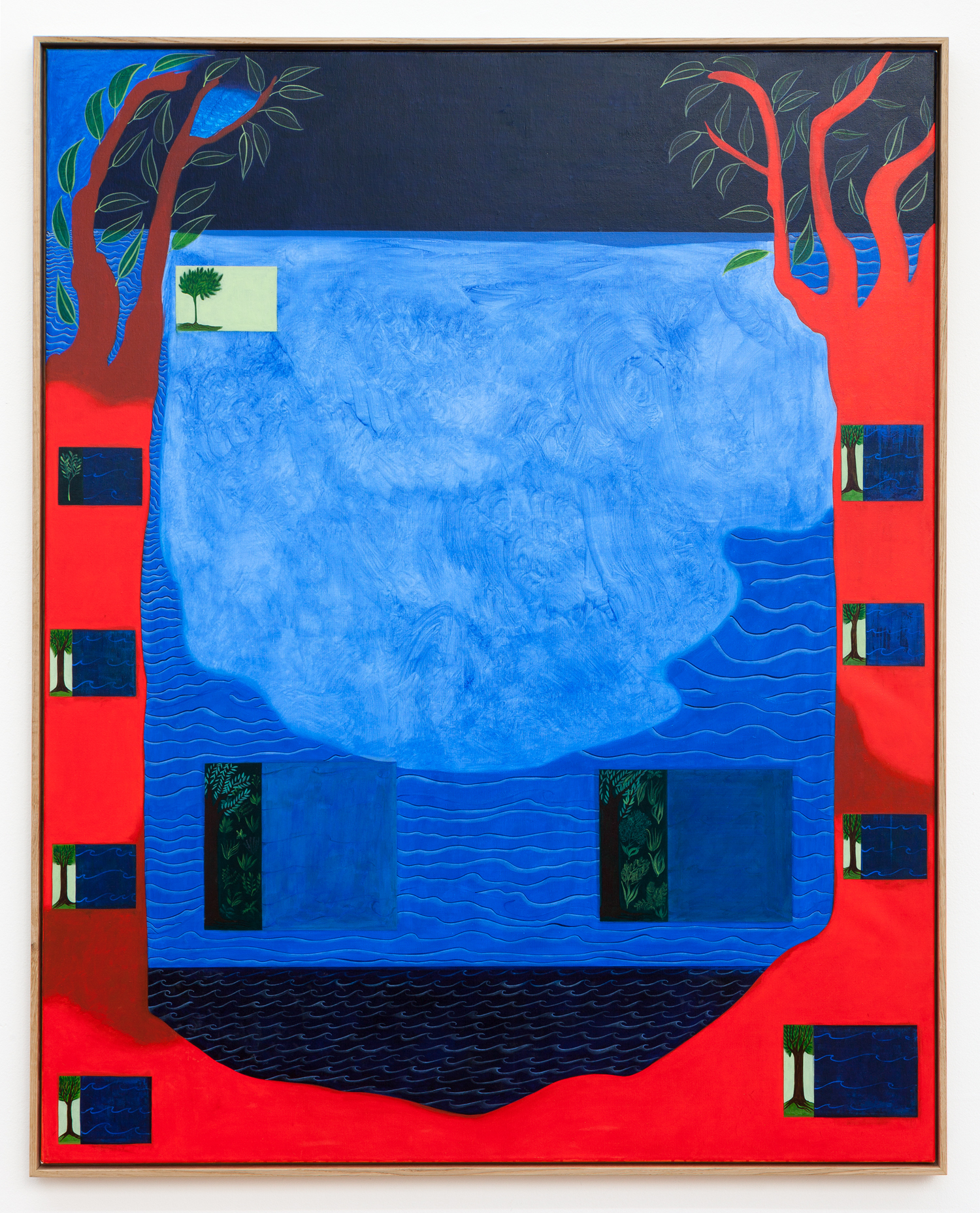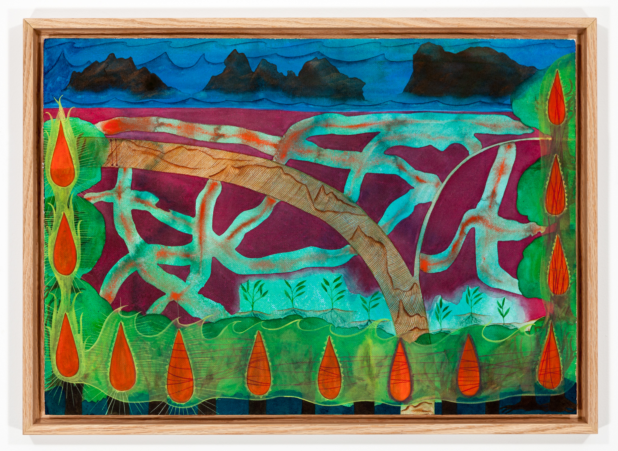 Understanding the artworks like narratives is a key here: the act of storytelling is essential for Karishma D’Souza. Behind signs and symbols, as if behind curtains, hide stories. They are meant to be carefully unfolded, shape by shape, meaning by meaning. A Goan artist, Karishma D’Souza’s paintings often refer to the political situation in India and to social injustice. They speak of those who were chased from their homes so that another factory could be built; of forests eradicated by “hungry ghosts” of capitalism in view of further industrialization; of killings and persecutions and the numerous lies of official propaganda – “drops of blood stand for people slain (dots of red stand for a count of the murdered)”. Other narratives seem to be full of hope, harmony and inner light – a portrait of a friend, reminiscence of a conversation, of a window with a view or of a poetic image, for example, Kabir’s multiple suns. Whatever their impulse, these stories are a reflection of the artist’s experiences and turn the process of image-making into an art of remembering.