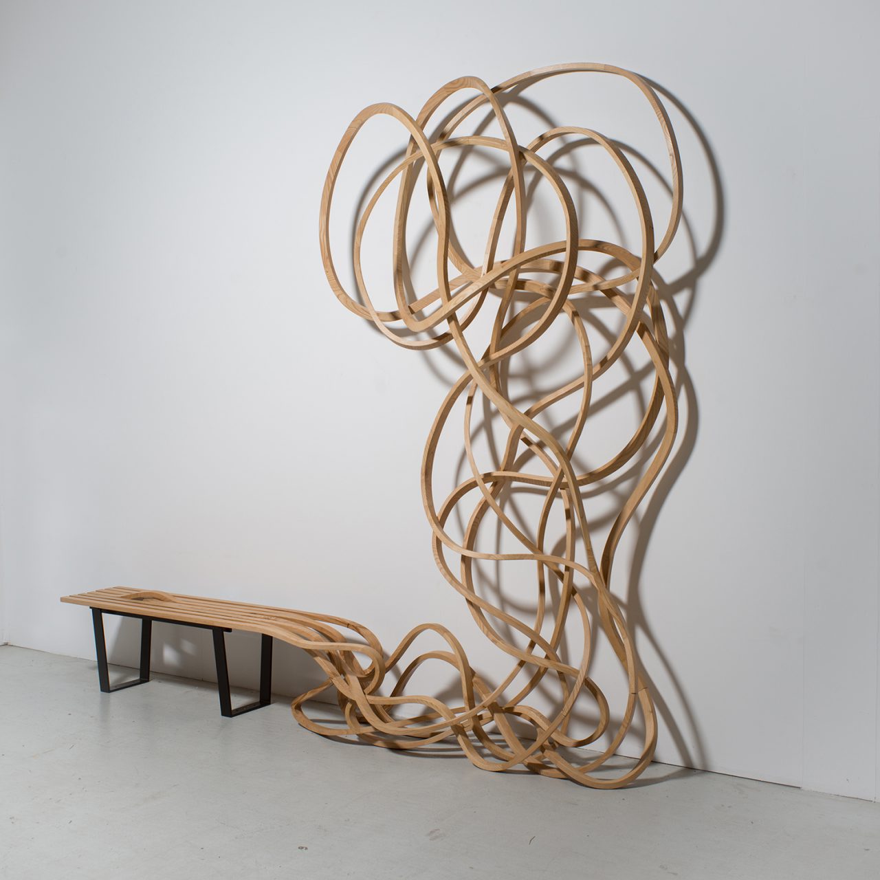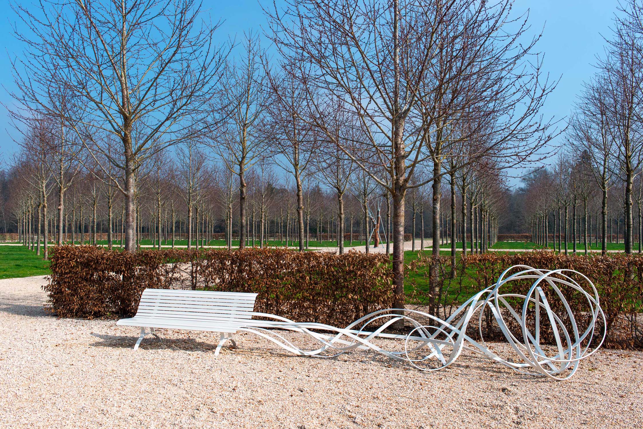 In his famous series Bancs Spaghetti, he reinvents the every day object with humour and frivolity. His work hides both an ethical aspect – the respect of nature and of its materials – as well as a critical one against meaningless processes of a certain type of contemporary design. His installations and sculptures reveal a deep knowledge of the environment linked to our perception of the world, the landscape and space. As part of a process of deployment and development, his work finds its way within monumentality and at the same time, it keeps a human scale.