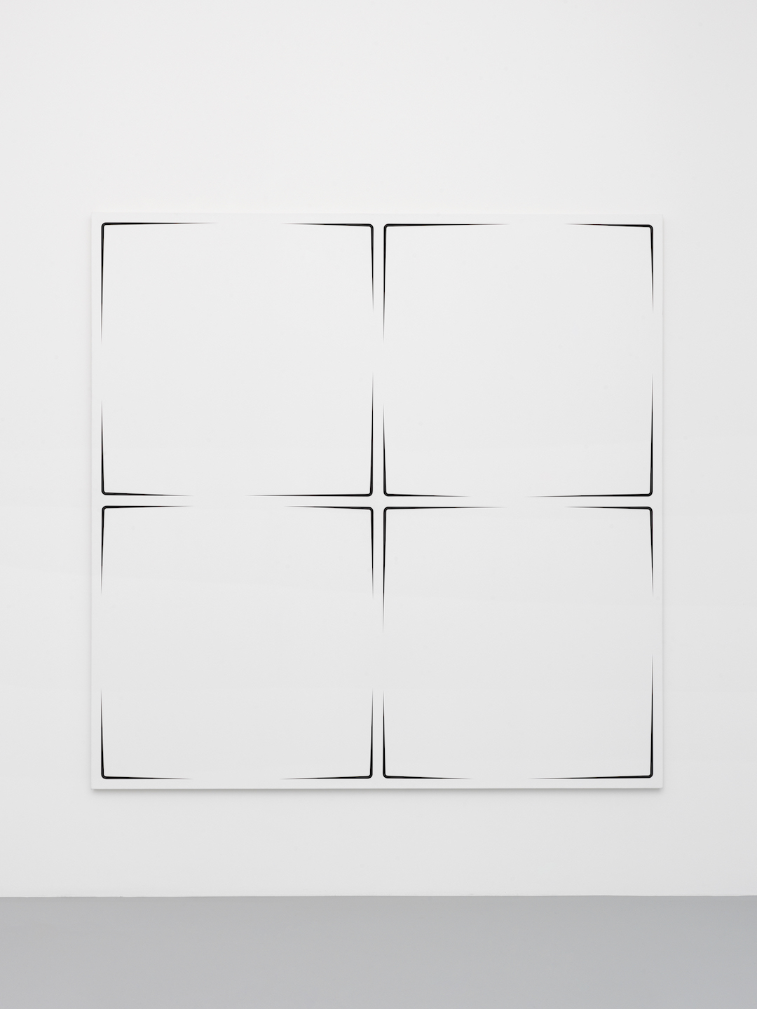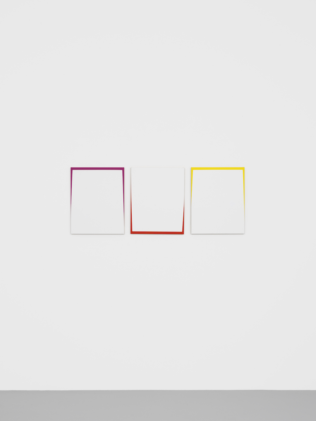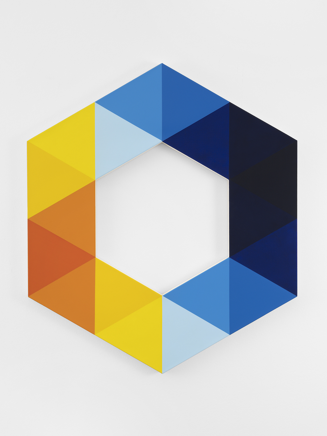 Stéphane Dafflon’s paintings are simple at first glance, strangely smooth, however perfectly mastered. Made of geometric and abstract shapes with sharp contours and primary colors, his artworks question first by their effective sobriety. Then, when getting closer, shapes blur, some angles become round and some points progressively unravel. Stéphane Dafflon distorts the line, shifts the alignment, granting a vibratory power to his canvases, which resonates within the space where it is situated. First created with a computer, Stéphane Dafflon’s artworks, when transcribed onto a canvas or a wall, reveal themselves in their environment. Therefore, Stéphane Dafflon’s work needs to be felt, heard; it is a real-life experience. The many physical sensations that the artist wishes to provoke on the spectator in the way, for instance, of music and its vibrations by which he is inspired. As a mather of fact, the Swiss artist intermixes a lot of different influences. From the concrete art and the minimalism in the shapes and the colors, including graphic design in the computer-aided process of creation, its paintings could be considered as well as “design painted” as of monochrome.