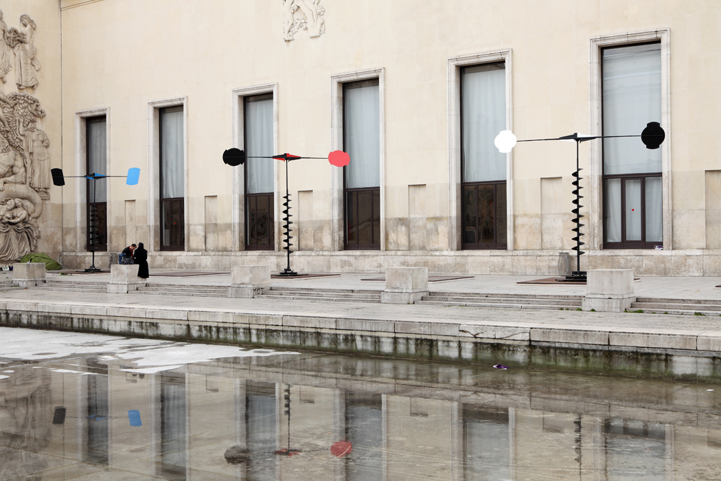 His sculptures are visible in a number of public spaces in Paris and abroad. A monumental basin of Light Signals is visible on the esplanade of La Défense, next to Paris; the Aeolian Signals are outside the Unesco headquarters in Paris, an Aeolian Signal is installed in front of Athens’ National Pinacotheque, along with three 7-metre tall Aeolian Signals which are opposite the Benaki Contemporary Art Museum in Athens; his “Solar Energy” Signals are also visible in front of the headquarters of the European Commission in Brussels.