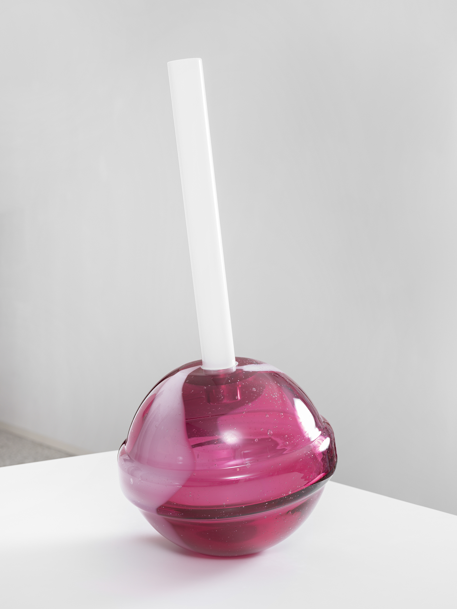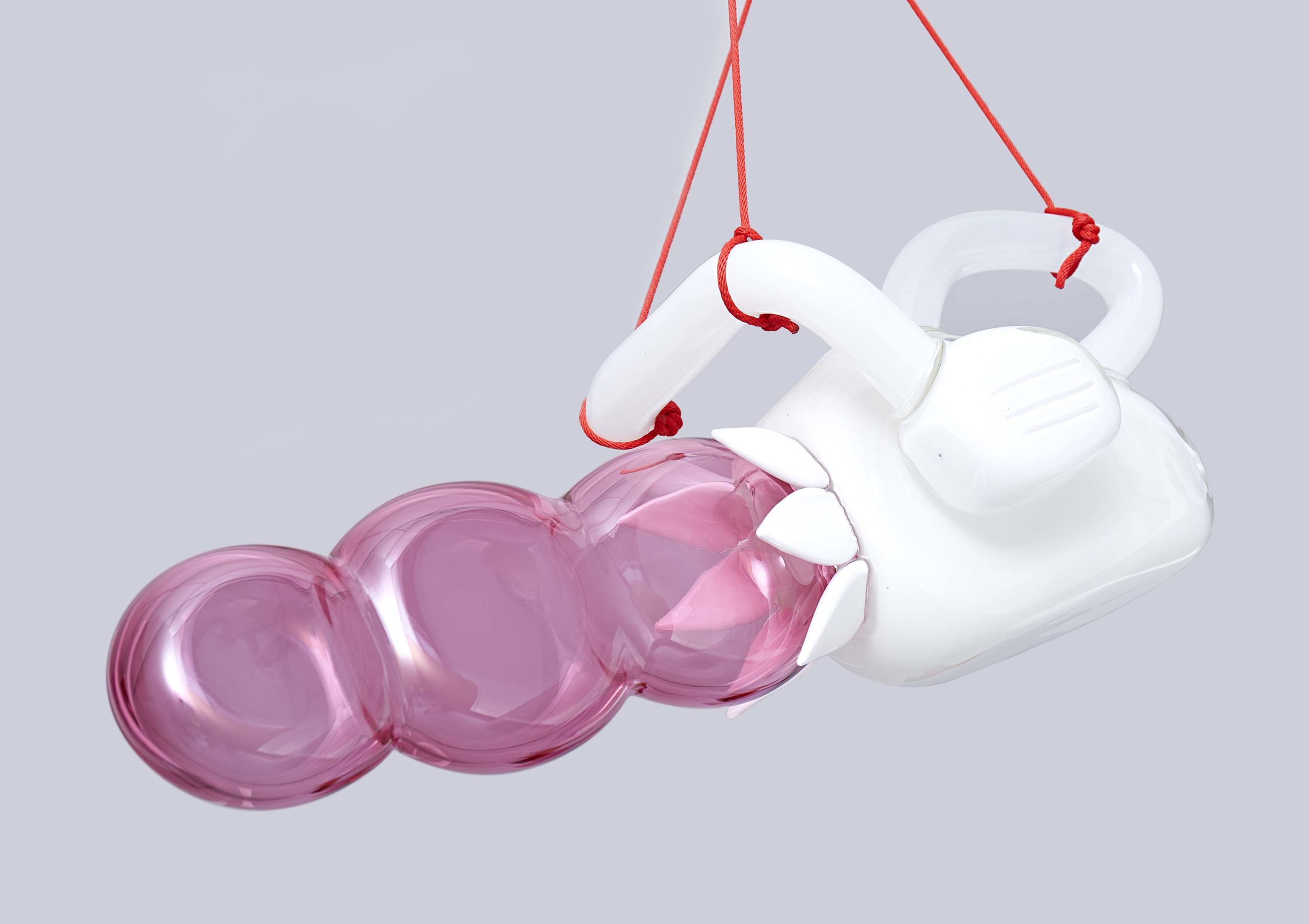 Verre soufflé à la canne (blanc opaque et rose translucide) et corde