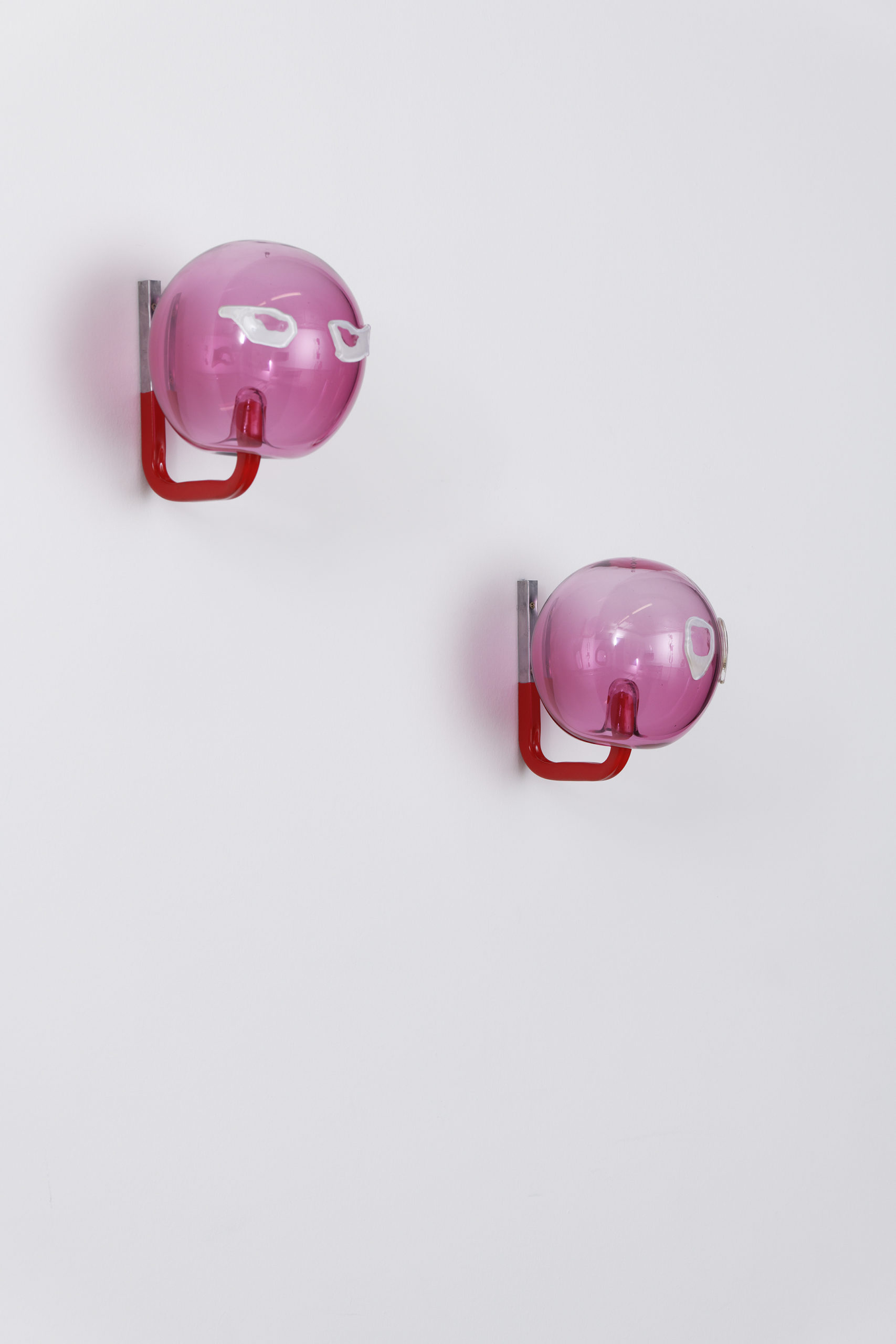 Verre soufflé à la canne (blanc opaque et rose translucide)