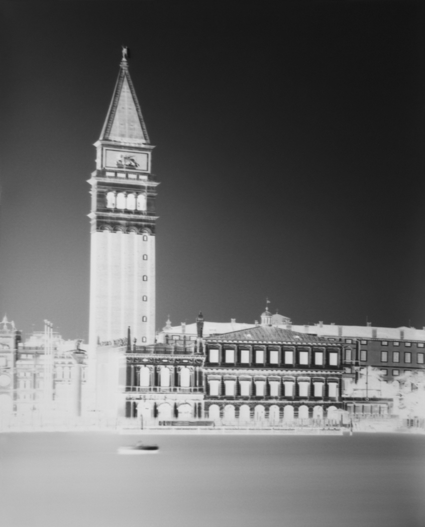 Vera Lutter investigates the camera obscura and its process of recording light on photographic paper. She draws inspiration from architecture and her works explore urban landscapes, industrial sites, mythical landscapes, and the views from her artist studio. These are a selection of the many places where she reframes images to reveal different layers of spatial perception. Her large-scale photographs often require several hours or days of light exposure. She chooses to work with room-sized cameras allowing the size of the resulting image to reflect the architecture in which it was made. The prolonged exposure allows her to record images that give evidence to time passed. The resulting ephemera and movement dissolve time into the image, sometimes enabling ghostly forms to surface. These photographs don’t simply translate the real; they also reveal an intermediate world, a space of corresponding apparitions. The images radiate a fluid and otherworldly feeling that allows the gaze to drift and linger on certain details captured with startling precision.