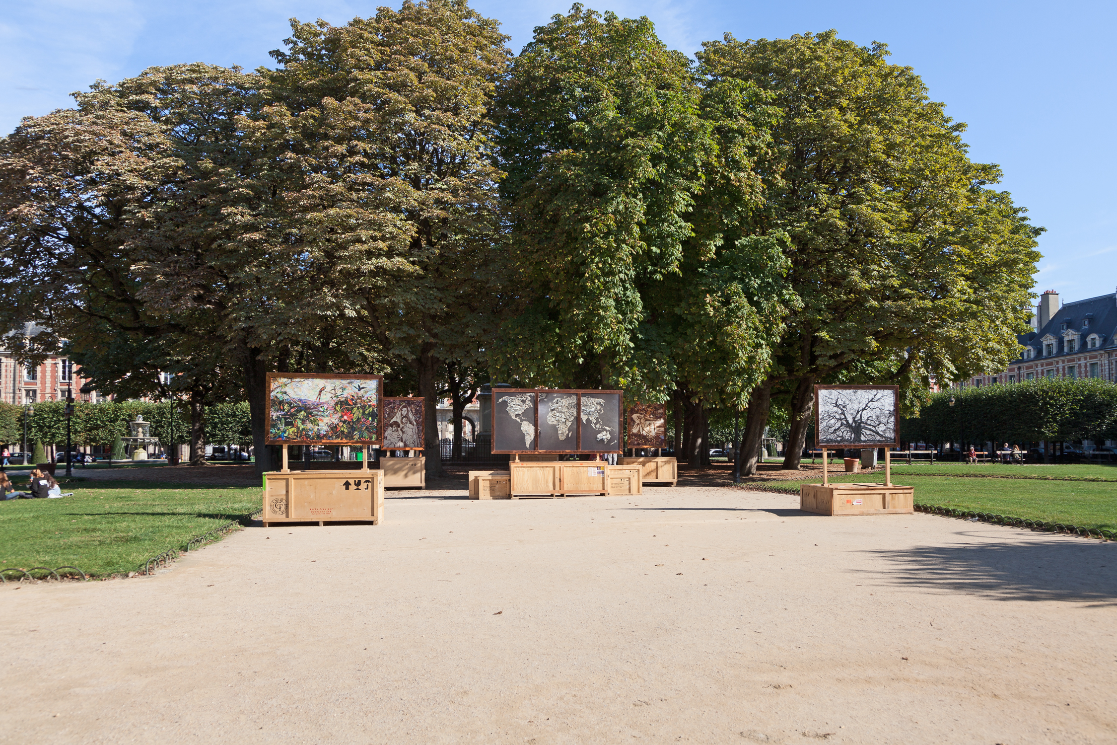 Installation view Biennale Photoclimat 2021, Place des Vosges, Paris -