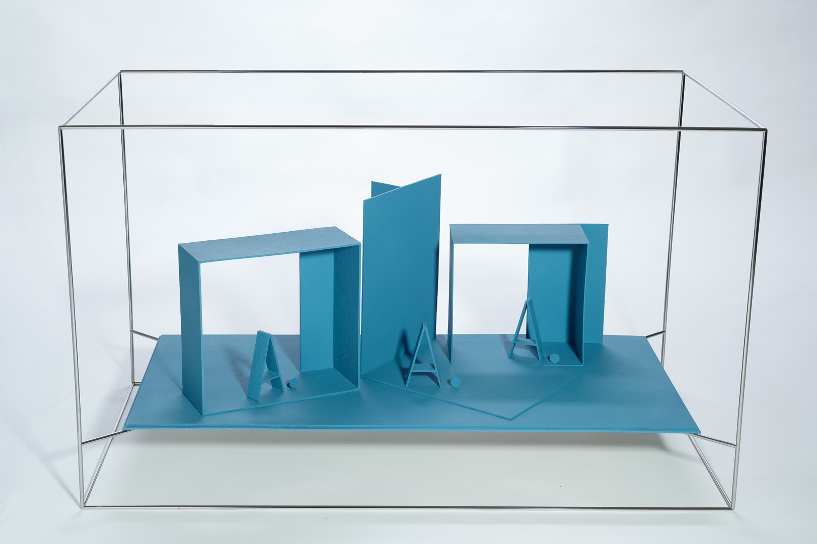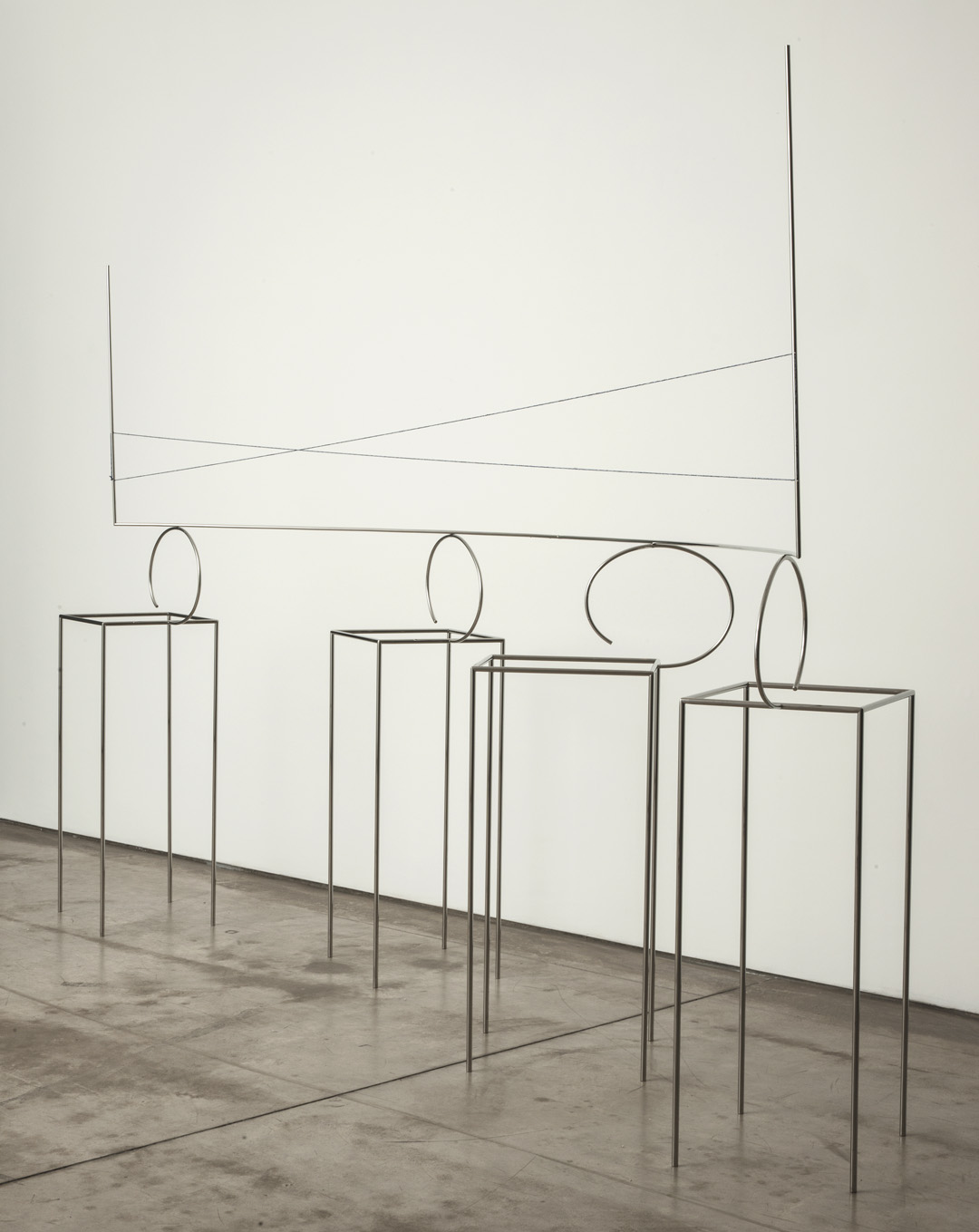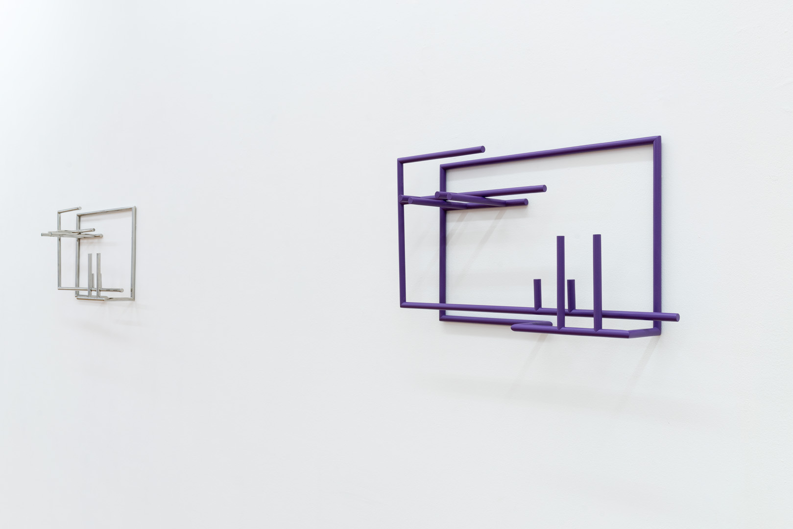 Caldas pushes the paradox between presence and absence, and between transparency and opacity, to its extreme. This paradox is reinforced through a play on mirrors, a recurrent technique in his work. Here again, the artist develops the idea of reflection without actually employing mirrors. In creating several planes where lines and objects replace the reflections of one another, the artist reveals a three-dimension mirror and materialises the idea of reflection, a process he considers as a “functional dismantling of the mirror”2. Thus Caldas goes beyond the duality between presence and absence, positive and negative, and manages to reach a paradoxical fusion between a tangible reality and thought.