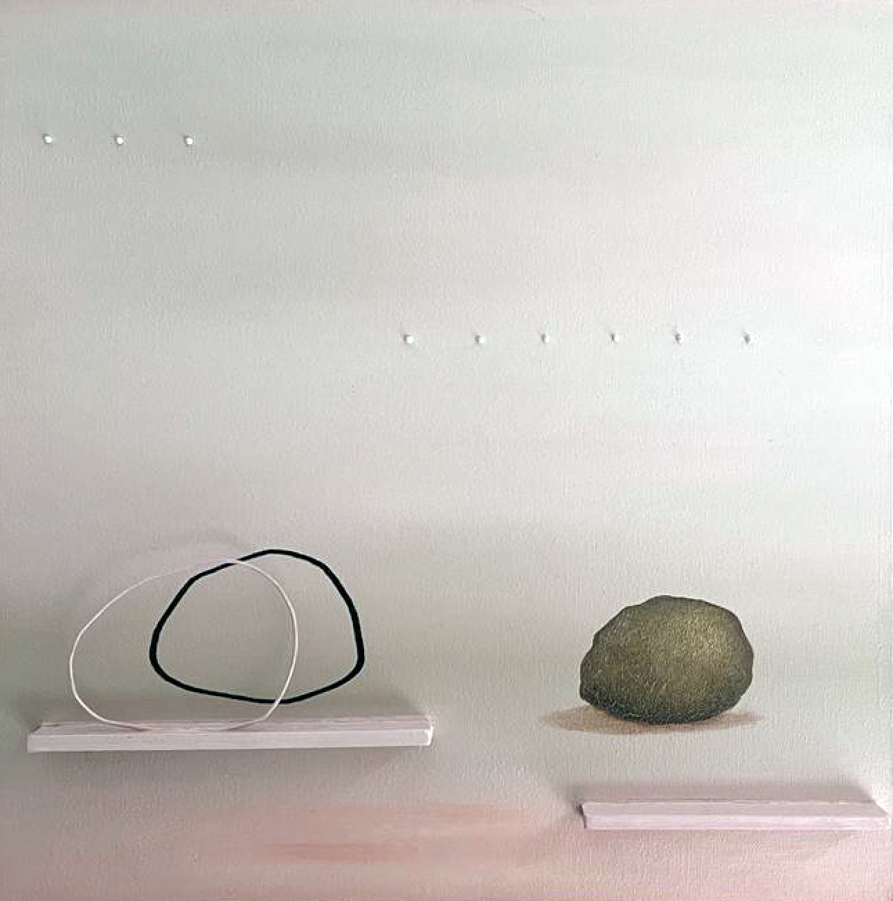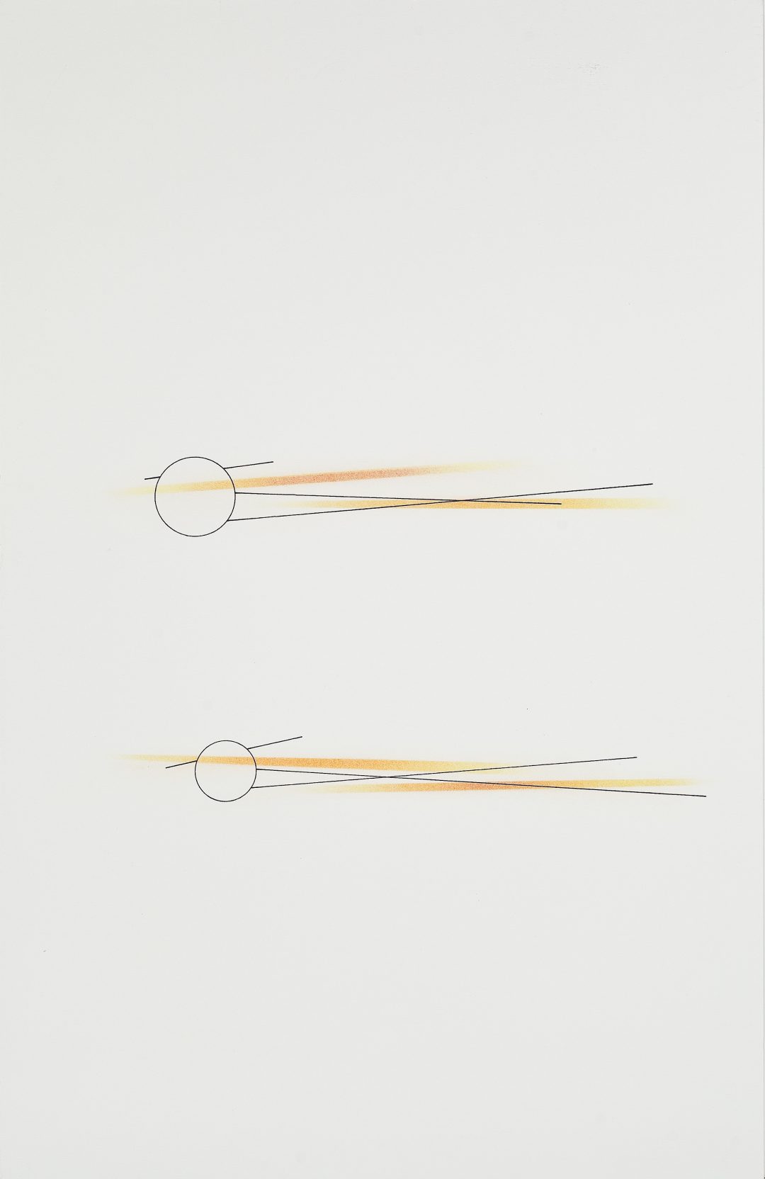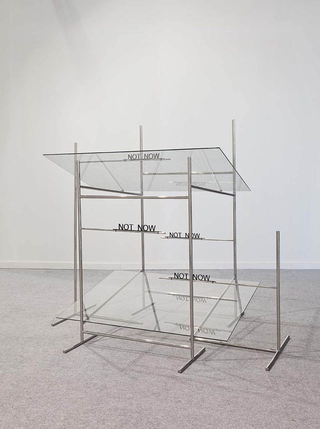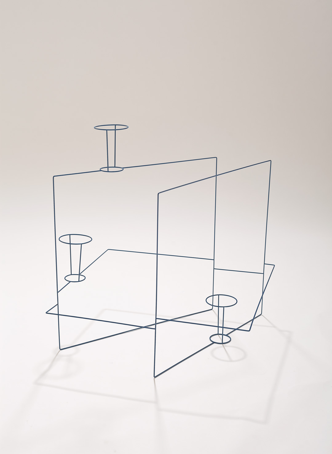 Caldas pushes the paradox between presence and absence, and between transparency and opacity, to its extreme. This paradox is reinforced through a play on mirrors, a recurrent technique in his work. Here again, the artist develops the idea of reflection without actually employing mirrors. In creating several planes where lines and objects replace the reflections of one another, the artist reveals a three-dimension mirror and materialises the idea of reflection, a process he considers as a “functional dismantling of the mirror”2. Thus Caldas goes beyond the duality between presence and absence, positive and negative, and manages to reach a paradoxical fusion between a tangible reality and thought.