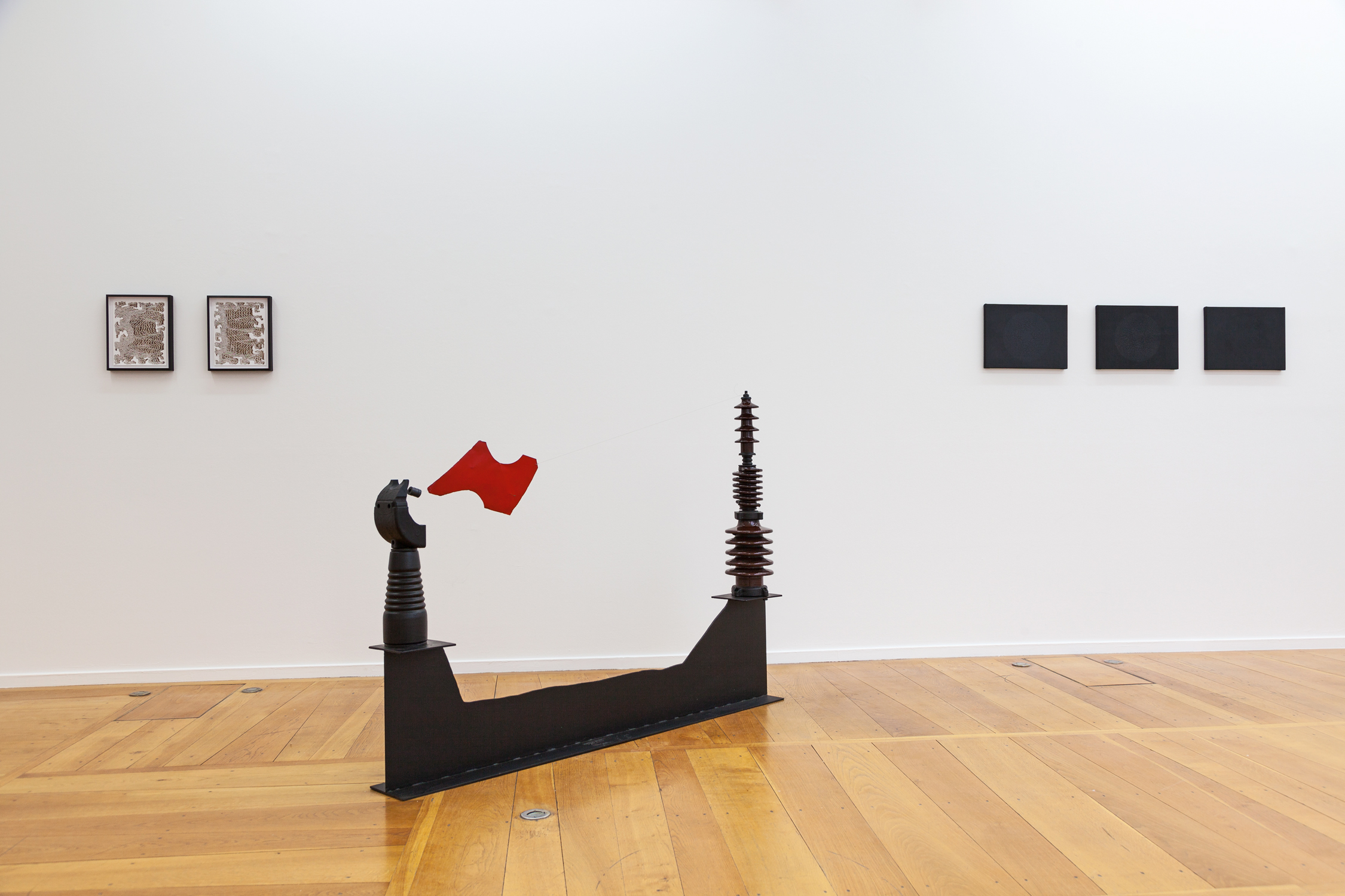 Renos Xippas inaugurated his gallery in Paris on October 19, 1990 with a major exhibition dedicated to Takis’ sculptures. For this very first exhibition, presented on three floors, Takis worked with the specific features of the gallery’s architecture and conceived an environment made of magnetic sculptures. On the top floor, the artist aligned a series of musical sculptures (a variation of his famous Musicals) which generated beautiful and mysterious sounds. On the ground floor, he installed a group of luminous signals made with Archimedes screws. On the lower level, using the architecture’s four symmetrical I-beam columns, Takis designed a grid floor and created a gigantic electromagnetic chess-game referencing Marcel Duchamp. Its pieces were made with metallic ribbons and rods anchored to insulators. They were attracted to each other by electromagnets placed on the checkered floor. Thereafter, numerous exhibitions were organized with Takis who became overtime a historic and iconic artist of the gallery.