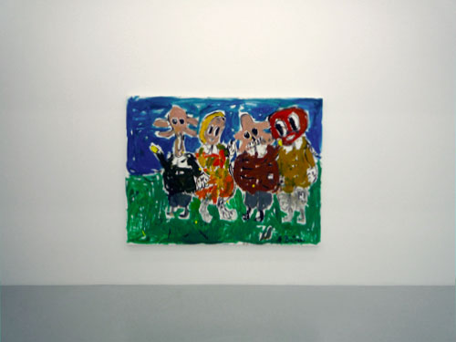 Definitely emblematic, these figures are the products of a personally created mass culture, which pushes deformity to an extreme under the thrust of dozens of allusions. From the history of art to the history of states, from Munch, Pollock, Baselitz to the national-socialism of the “SS” and from Siemens to Walt Disney, Butzer makes countless references to American and German history, contemporary politics and political history, economics and social hierarchy, the entertainment industry, technology, science fiction.