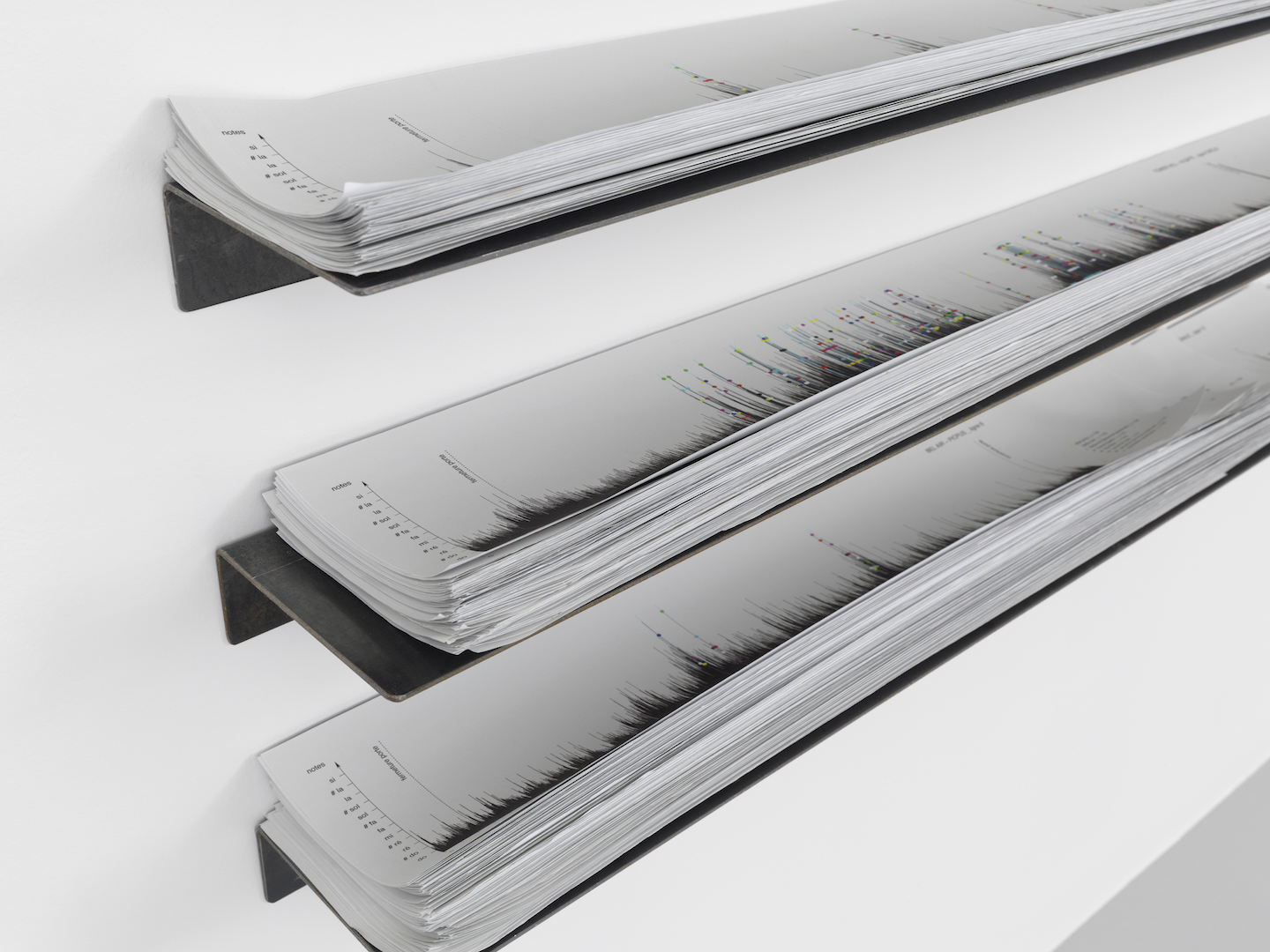 On another note, the video Le tour de Babel follows a monstrous cruise ship, synonymous of all- inclusive trip, through his different stages to reach its final destination. For the project Les Complaisants Bertille Bak asked every sailors who made a stopover in Saint-Nazaire to give her a couple of hair. With the hair she recreated each 35 flags of convenience, which allows a wide flexibility regarding the labour law.