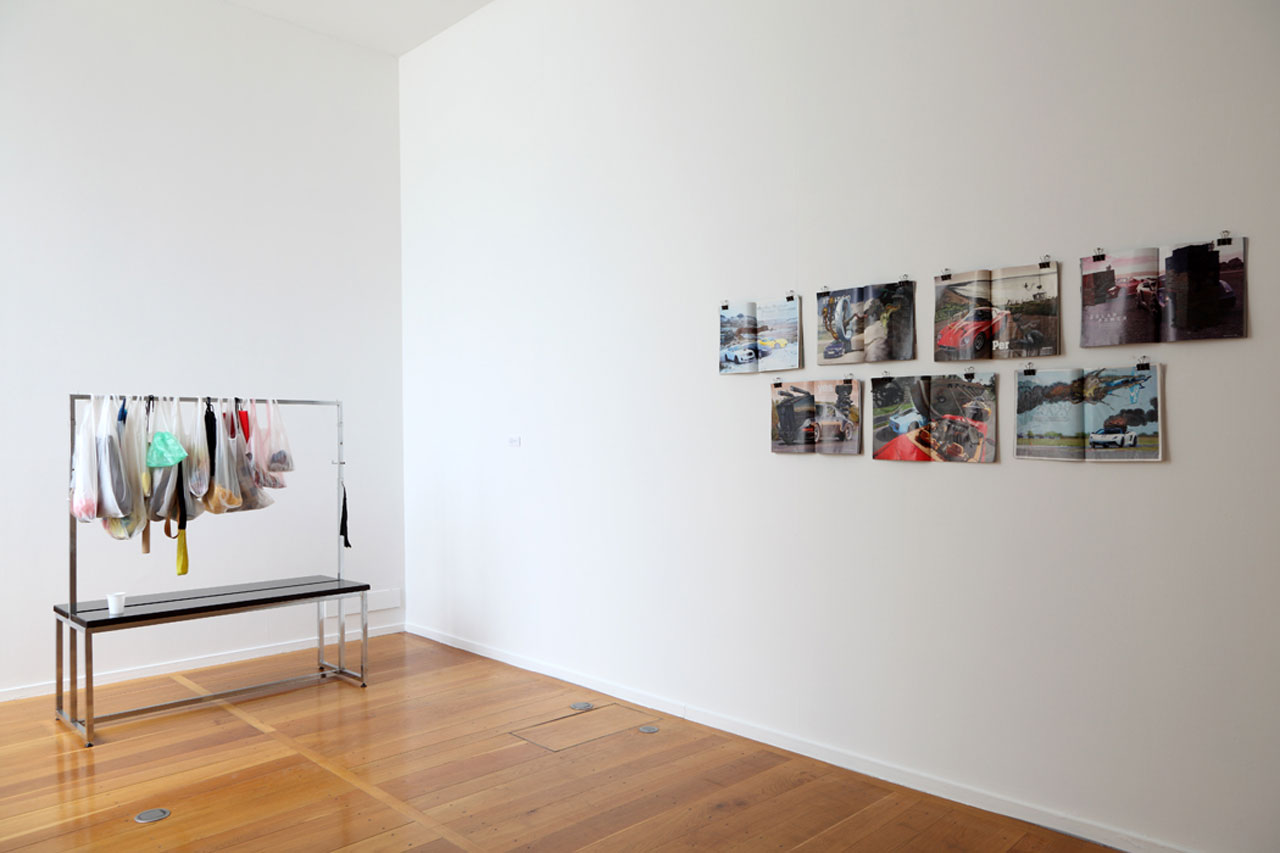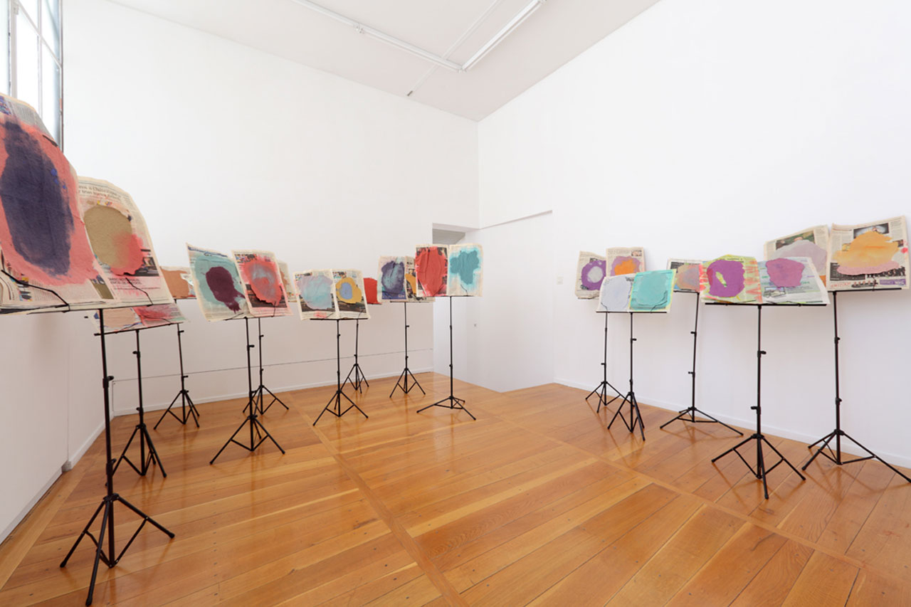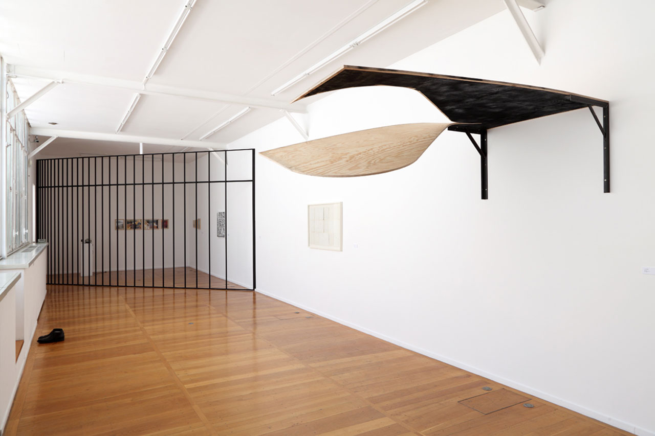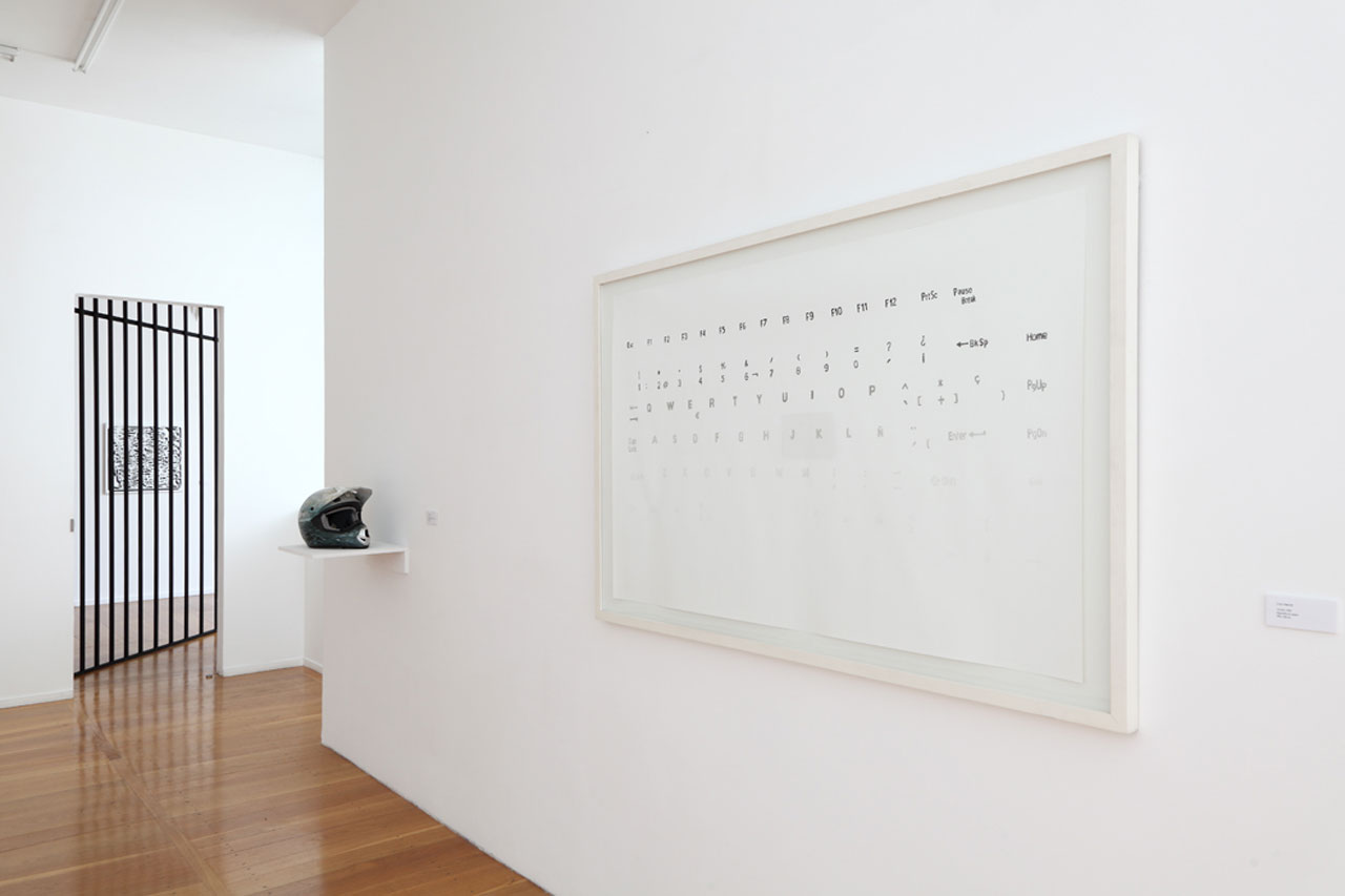 The particularity of the Xippas Gallery’s space is its architecture, which forces the visitor to interact with a space without exits. In order to discover all the artworks show, it is necessary to go into the first room, go up a stairway, cross a hallway, a room, another room, go down the stairs, and then to do it all over again to leave. The exhibition plays with this criteria and each artwork reappears on the path, split into its double by the new perspectives offered to the visitor.
