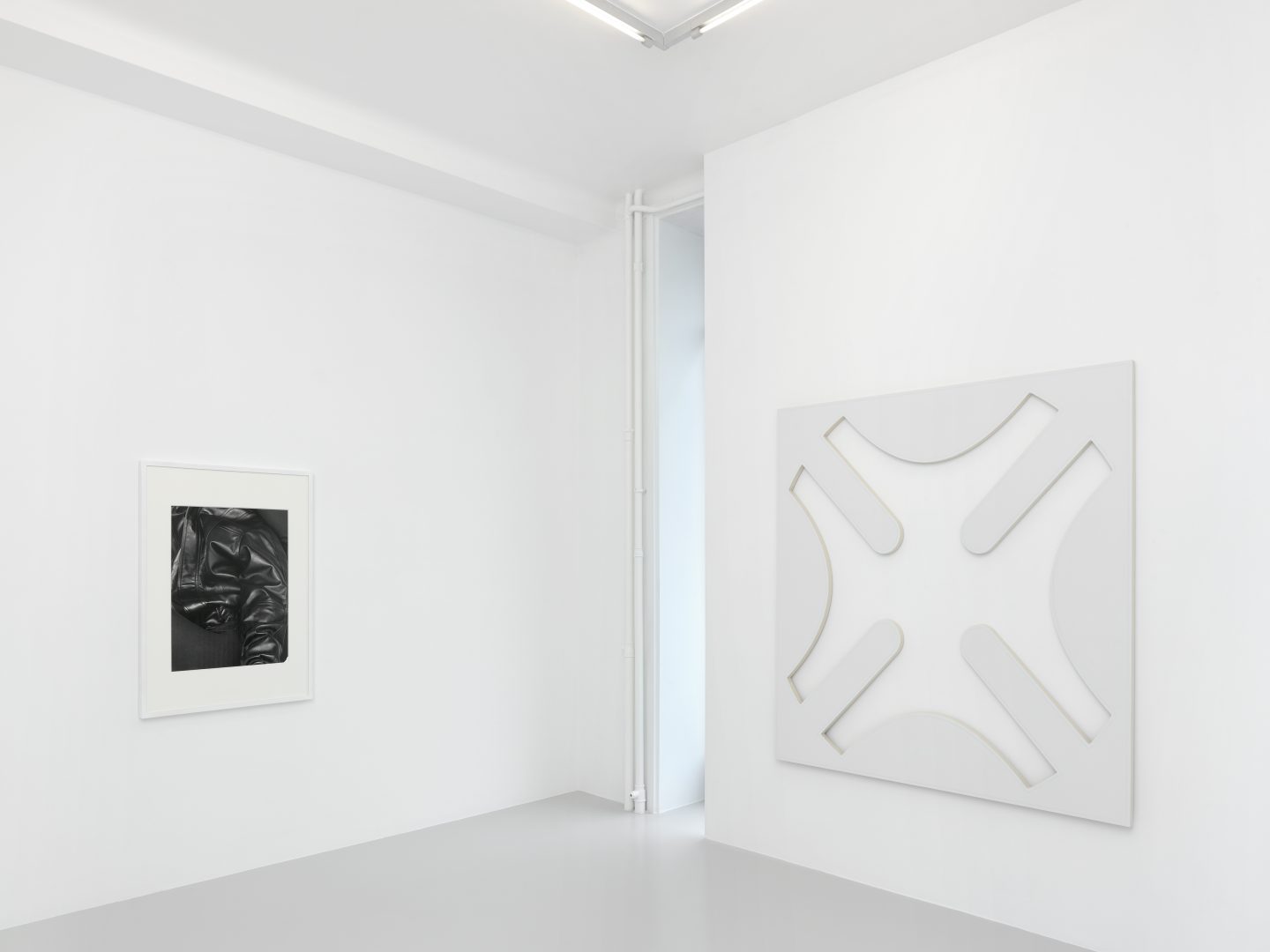 Vue d'exposition, Philippe Decrauzat | Pierre Paulin | feat. Dan Walsh, Bodies’s Delays, Xippas, Genève, 2019 ©Julien Gremaud