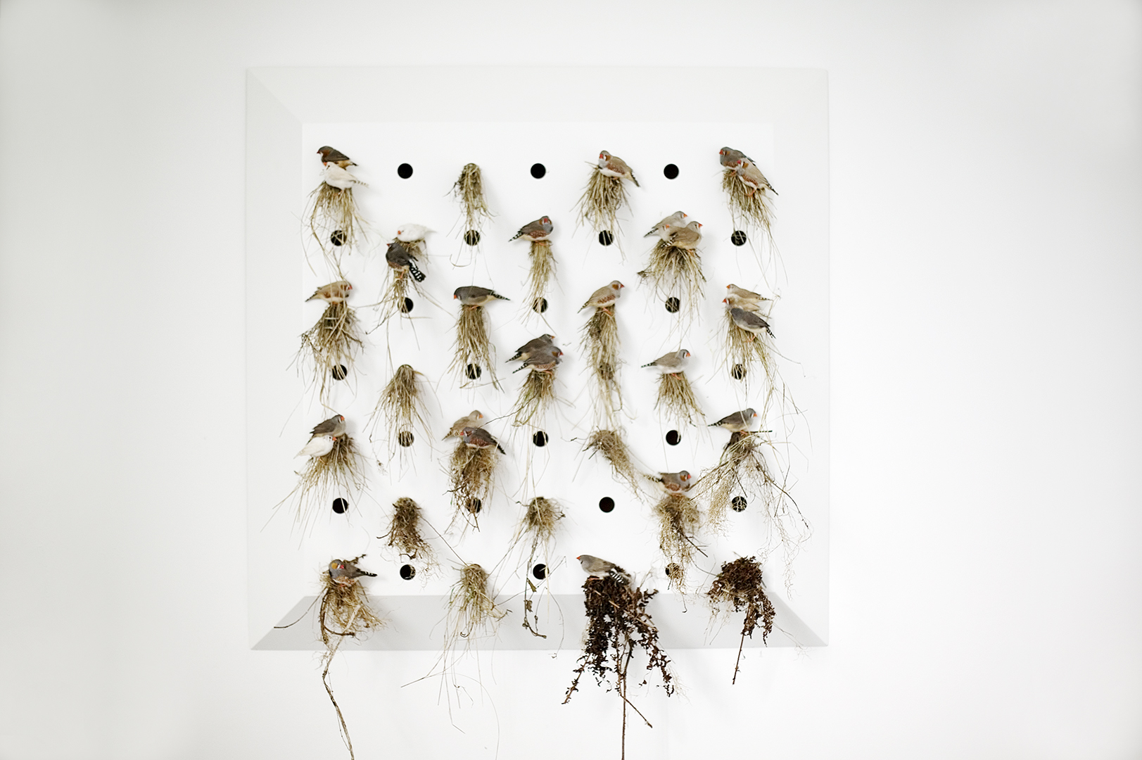 For his first exhibit at Xippas Gallery, the artist Céleste Boursier-Mougenot transforms the gallery into an aviary.