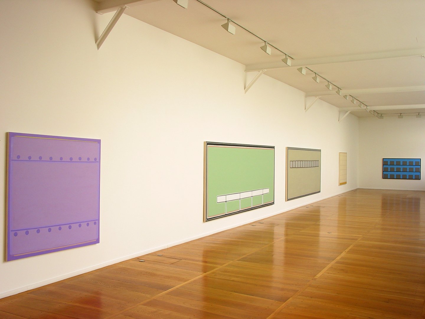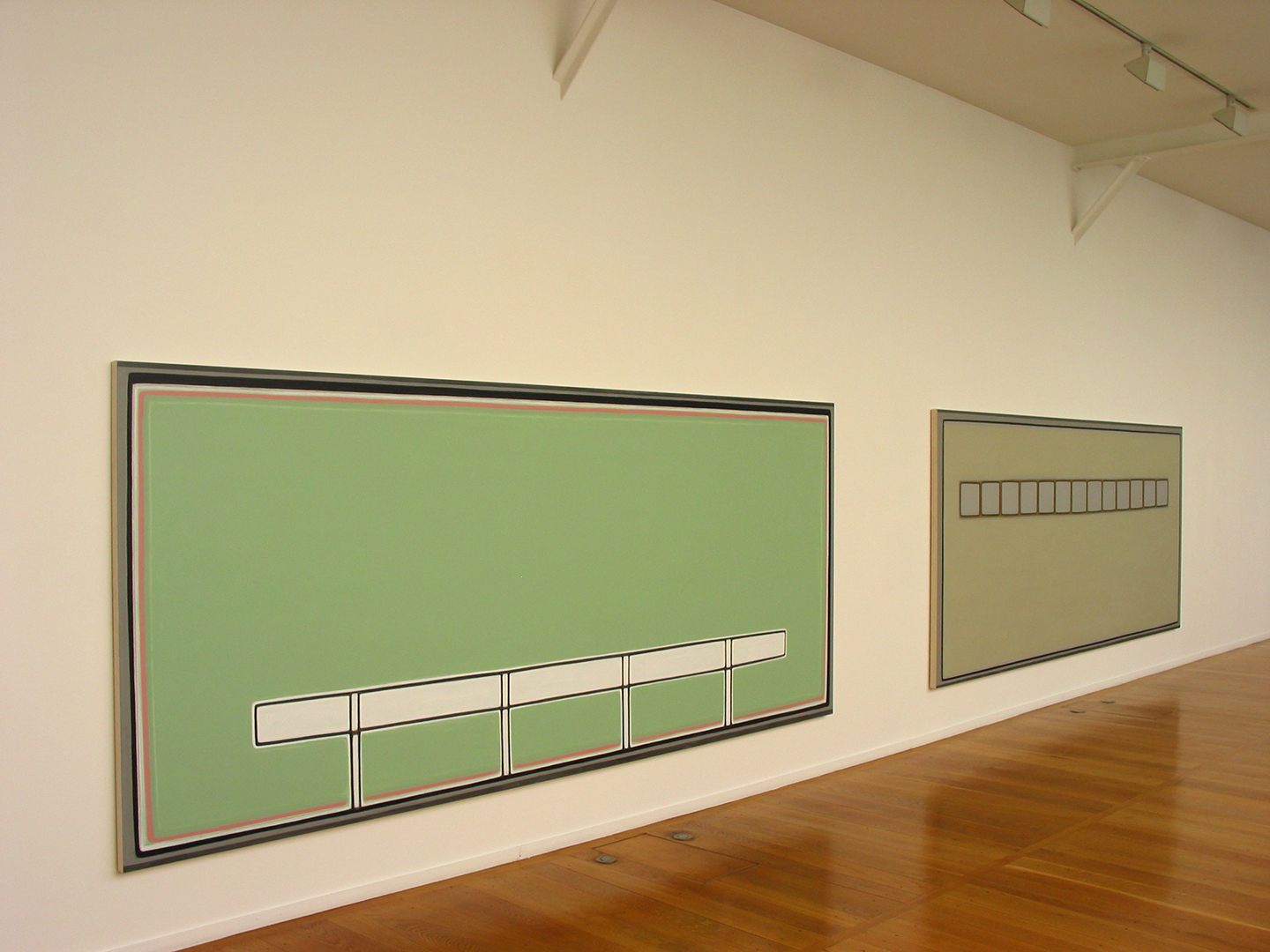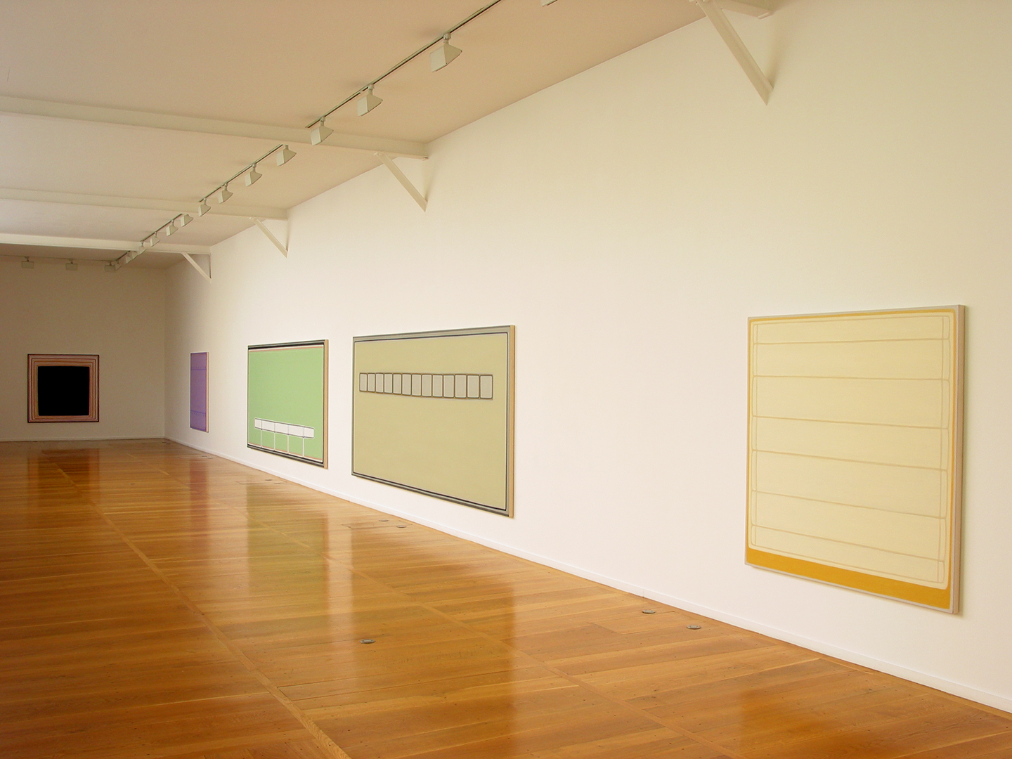 The artist’s first paintings presented empty frames traced by hand, in black or yellow, which acted as windows opening onto the white of the canvas. The spectator was then confronted by a subject-less image, and found himself harshly returned to the condition of an observer. Rather quickly, Walsh developed his technique and now makes paintings with systematically intrinsic successions – that is, paintings within a painting, frames within a frame. The compositions compile different colored rectangles onto one surface, and thus explicitly recall the artist’s older works. The spectator is then left the task of deciphering the works’ multiple levels of interpretation, which allow the painting to be read as a wall, but also the wall as a painting. The artist’s recent paintings therefore frequently explore the link they establish between the spectator, the work of art, and the surrounding architectural space.