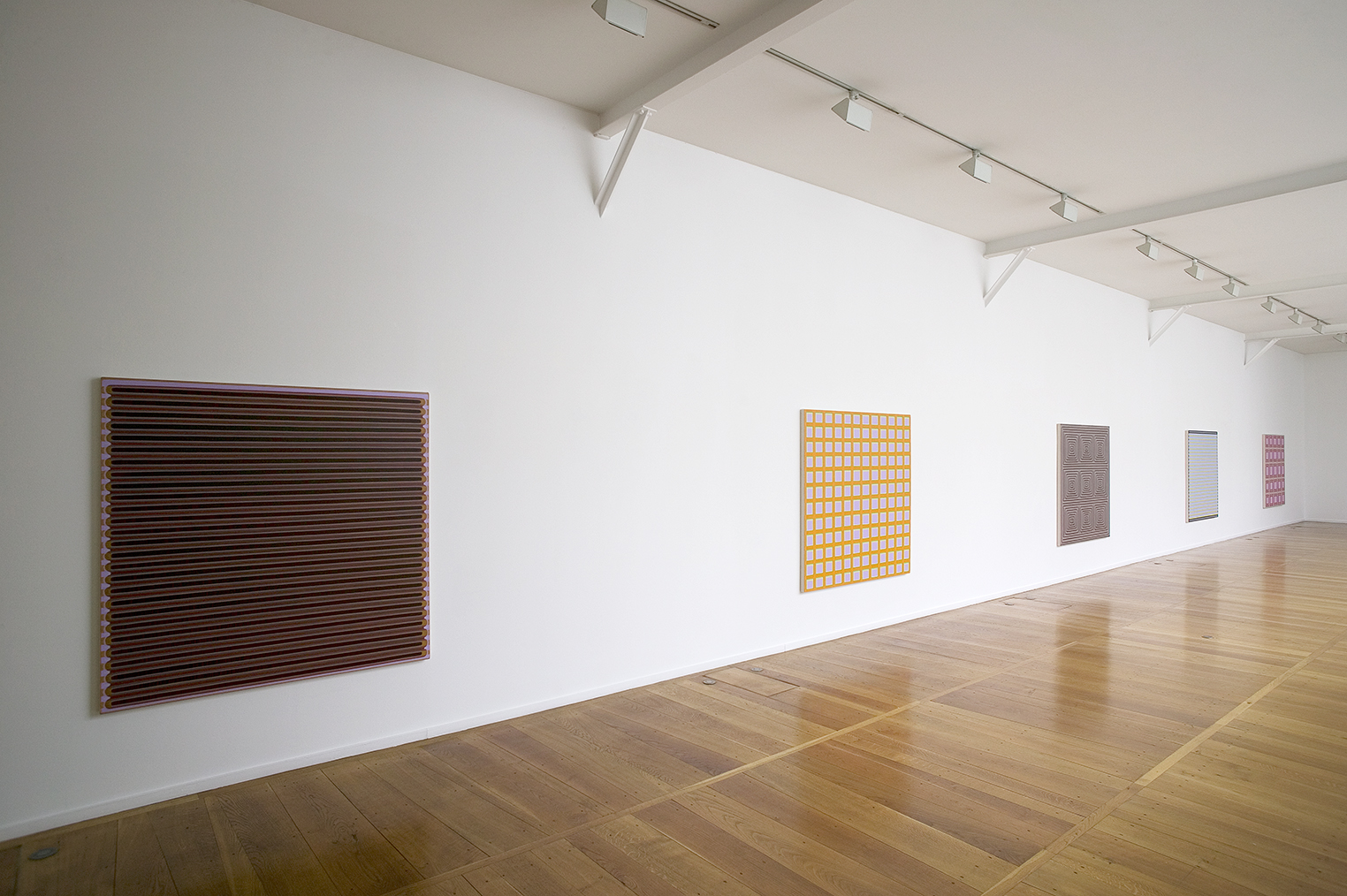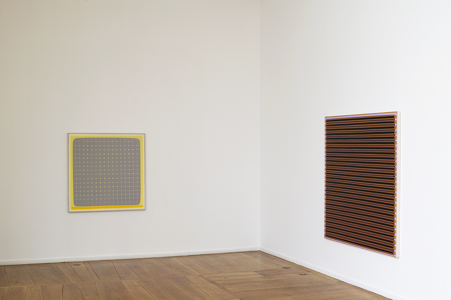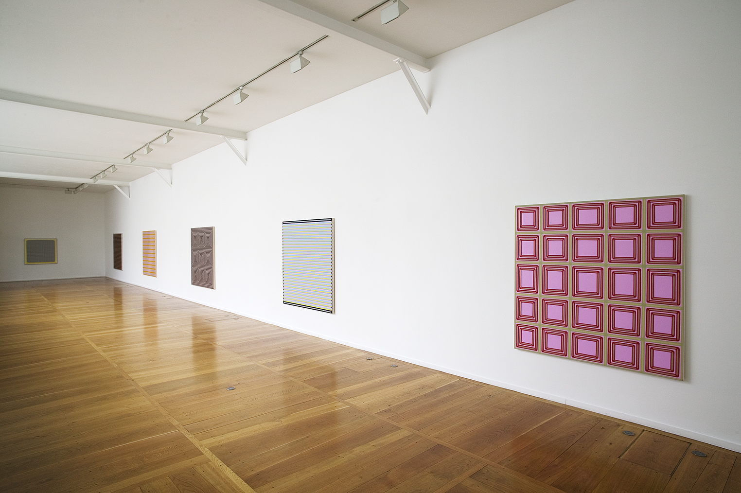 The artist’s first paintings presented empty frames traced by hand, in black or yellow, which acted as windows opening onto the white of the canvas. The spectator was then confronted by a subject-less image, and found himself harshly returned to the condition of an observer. Rather quickly, Walsh developed his technique and now makes paintings with systematically intrinsic successions – that is, paintings within a painting, frames within a frame. The compositions compile different colored rectangles onto one surface, and thus explicitly recall the artist’s older works. The spectator is then left the task of deciphering the works’ multiple levels of interpretation, which allow the painting to be read as a wall, but also the wall as a painting. The artist’s recent paintings therefore frequently explore the link they establish between the spectator, the work of art, and the surrounding architectural space.