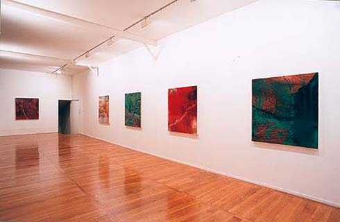 L’artiste verse sur des panneaux de bois posés au sol des pigments mélangés à différents matériaux liquides, et fait osciller le tableau. Laissant ainsi agir les lois de la gravité et les processus chimiques, la peinture coagule sur la surface d’images produites par le mouvement d’une caméra, d’un appareil photographique ou d’un ordinateur. Le procédé, bien que complexe et délicat ne représente cependant pas la finalité de l’œuvre. L’image ainsi obtenue est en effet recouverte d’une couche de vernis transparent, généralement brillant, de nature à unifier la surface du tableau et à éliminer toutes traces autorisant une reconstruction de sa réalisation. La surface brillante et les couleurs saturées, des rouges sanguins, presque noirs, des bleus cosmiques, des ocres dorés, font office de miroir. Le spectateur s’y reflète et doit ainsi se déplacer pour observer l’œuvre dans sa totalité, même si son mystère reste entier.