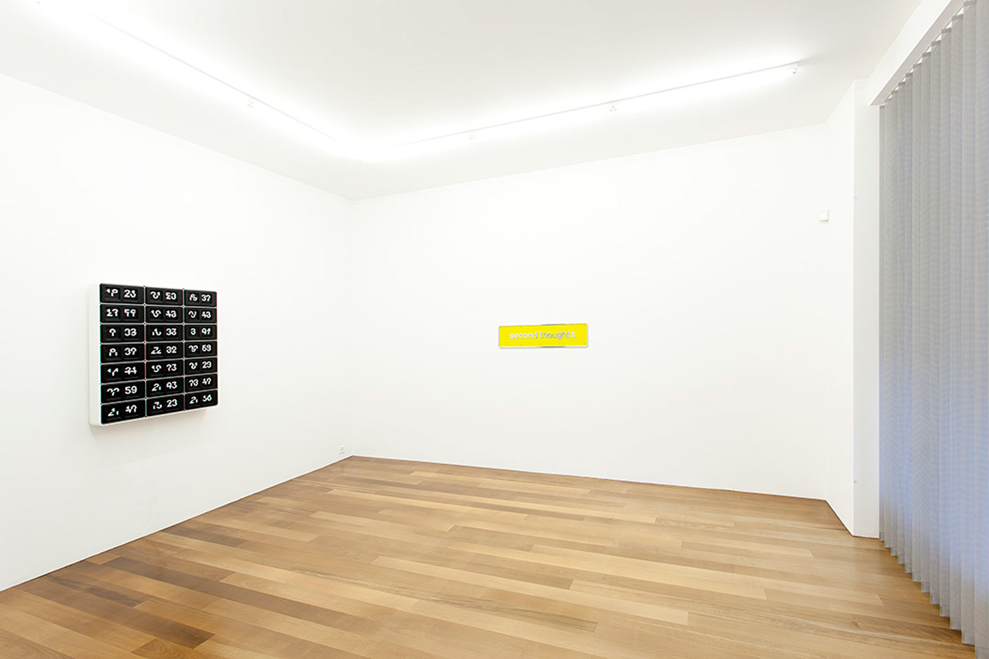 His installations called Perfect Time feature several digital clocks and record simultaneously the passage of time. They don’t give us the time, the numbers being divided as in his paintings, but they show us different temporalities. By changing regularly, they reveal that time is actually a process, the title being an ironic reference to the fact that there is no “perfect hour”.