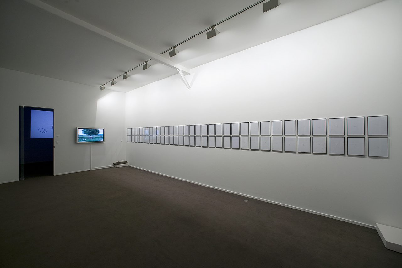 Denis Savary draws small scenes, in pencil, comprised of only a few sketched lines placed in the centre of a standard sheet of A4 paper. Each line is mastered and the subject reveals itself furtively. Any addition to the motif would result in an alteration of the fragile apparition on the page. Day by day, by way of an immutable framework, the artist has fixed over a thousand images, which are then carefully stored away in cardboard boxes.