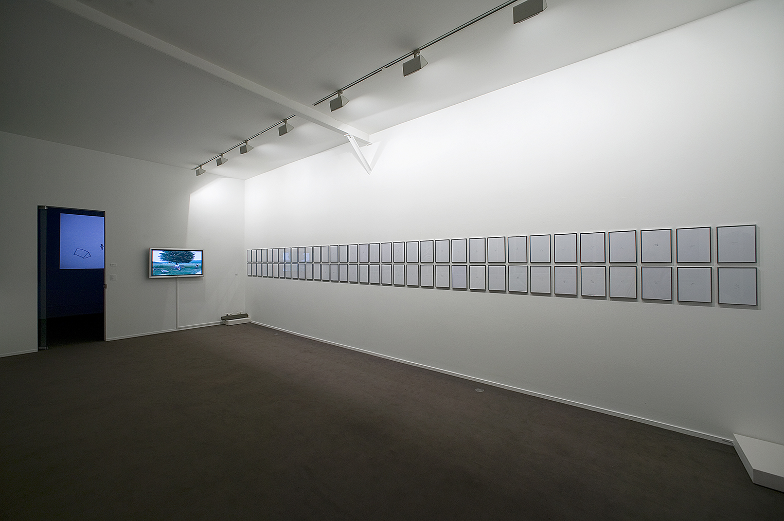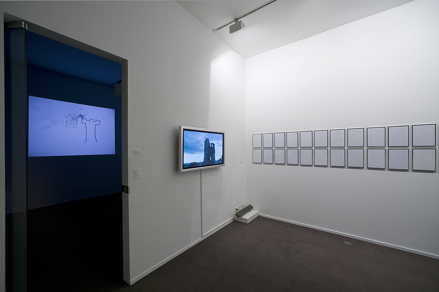 Denis Savary also realises animated drawings where each action is sketched in pencil on a single sheet of paper. He draws, erases and draws over again on the same page, therefore creating a short narrative. The stains and traces left over from the successive rubbing produce a sense of movement. The sound track consists only of the ambient sounds and the drawings being made.