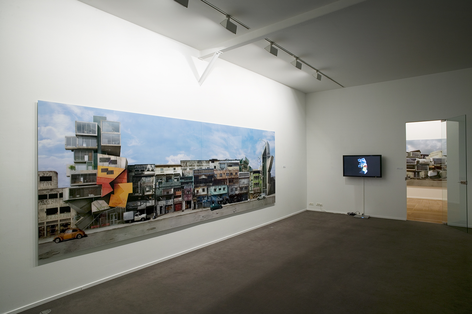 Dionisio Gonzalez part des différents clichés qu’il a réalisés dans les favelas sur lesquels il va insérer des éléments d’architecture qu’il aura créés de toutes pièces sur ordinateur. Contrairement à la plupart des architectes et des urbanistes qui visent à imposer une structure urbaine logique aux Favelas, celui-ci tente d’étendre et d’améliorer les structures existantes en conformité avec les besoins de leurs habitants. Car au-delà de la dimension esthétique abordée dans cette œuvre, il faut également y lire son aspect social. L’engagement de l’artiste s’est d’ailleurs concrétisé à travers son implication auprès des administrations locales afin de trouver des moyens à la matérialisation de ses bâtiments, ceux-ci étant notamment conçus pour abriter des centres sociaux destinés à améliorer la communication entre les populations locales.