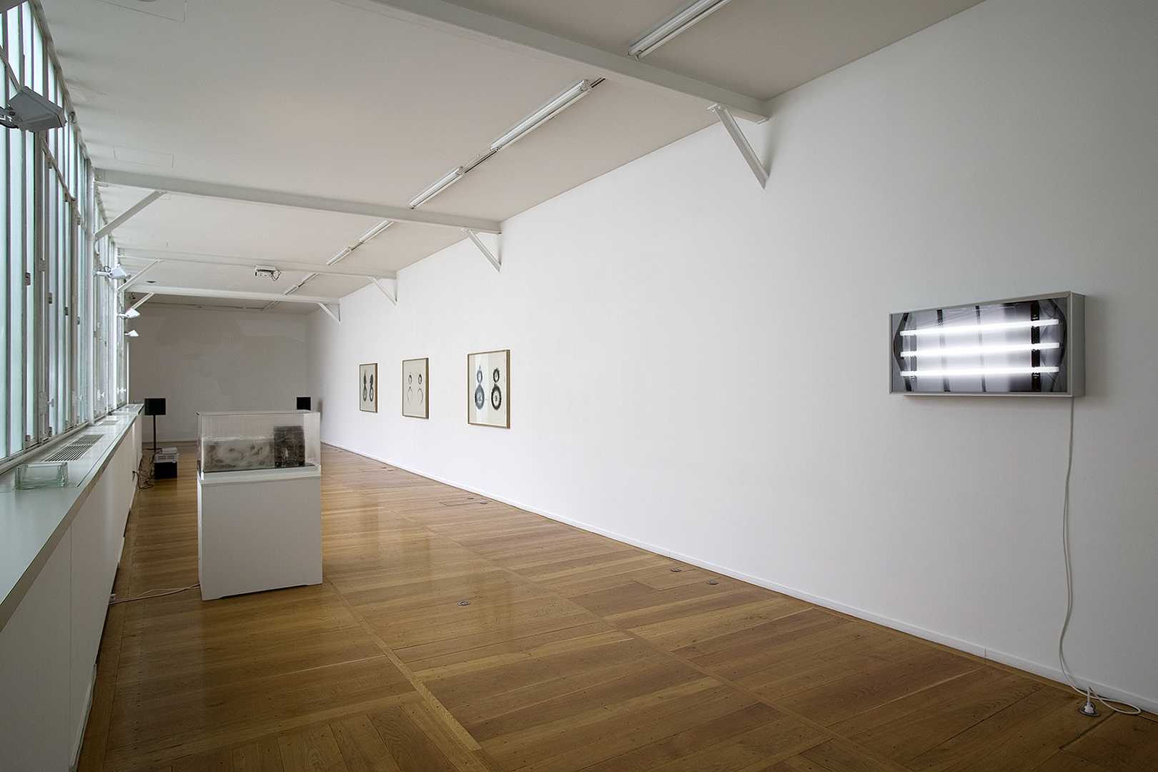 Dominique Blais’ work is inscribed in the esthetic groove of electronic music, a milieu to which he is close, dating from his days as promoter and organizer of concerts and musical venues at the Confluence in Paris. His drawings, a new series as yet still untitled, are composed of round stains of graphite powder, and are the transpositions of parts of music chosen by the artist from such masters as Christian Marclay and Günter Müller, O + Noto, White House or Autechre. The traces come from the speakers onto which Blais placed the graphite powder, and which are thus projected onto the pieces of paper through the length of the music. Prints, witnesses, synesthetic joining of listening and looking; these drawings condense onto the surface of the paper a lapse of time passed, leaving in its wake sombre acoustic suns, uncertain mirage of sound material fixed through contact.