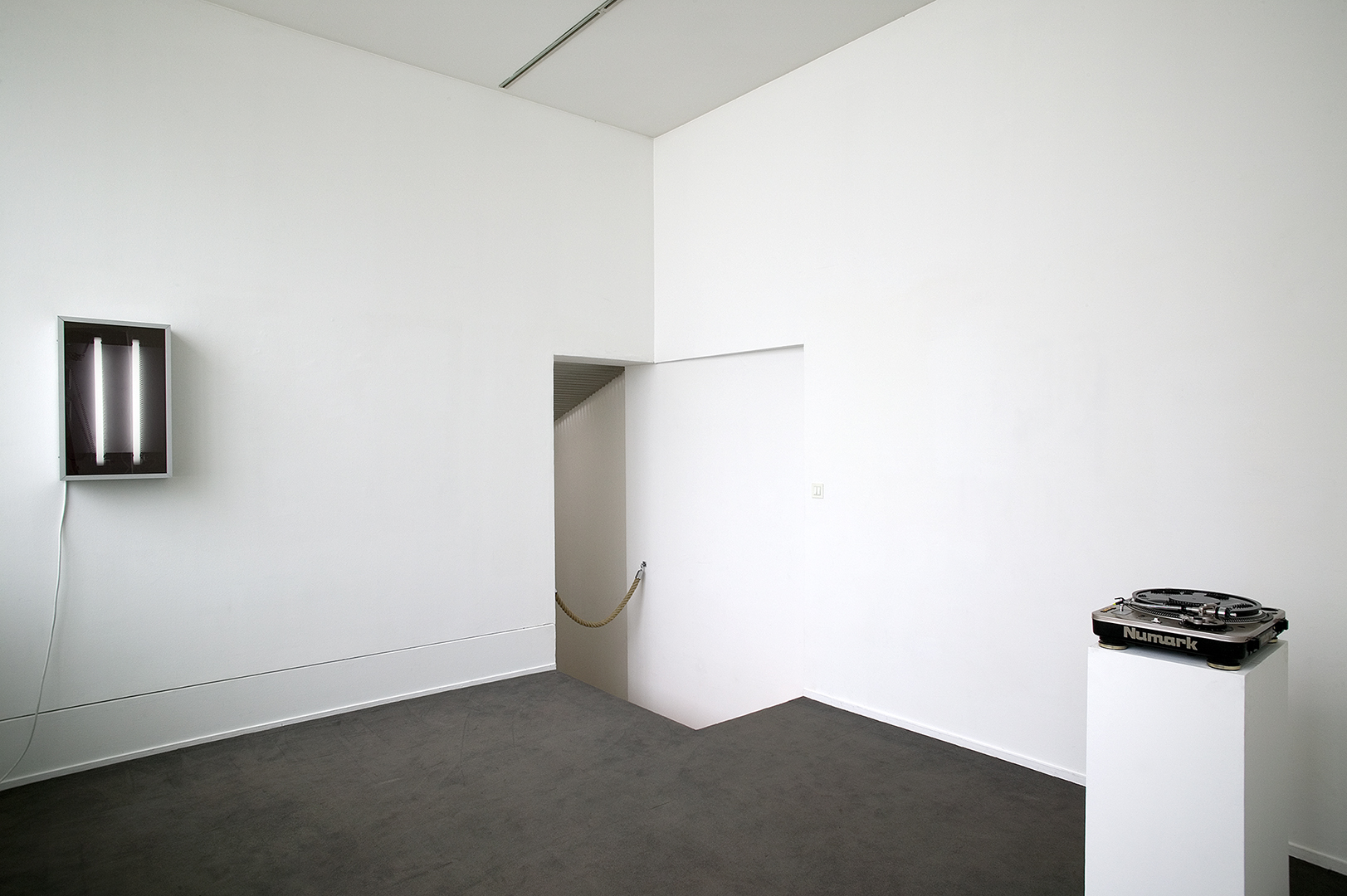 Dominique Blais works with the tools and vocabularies of a contemporary sculptor, exploring the potentials of light and sound on immaterial levels, atmospheric. An inimate universe is manifest…. The temporality of listening is often imposed on the viewer: the scrupulousness of the scenography of the space hybridizes the physicality of listening with the time of the gaze. From the entrance, the work Ways (2007) accompanies the spectator in the ascent of the staircase, leading into the gallery. This auditory work is a juxtaposition of Frank Sinatra and Sid Vicious reading versions of “My Way;” work which leaves the attentive visitor will recognizes as the encounter of two interpretations destined to confound their intended audiences.