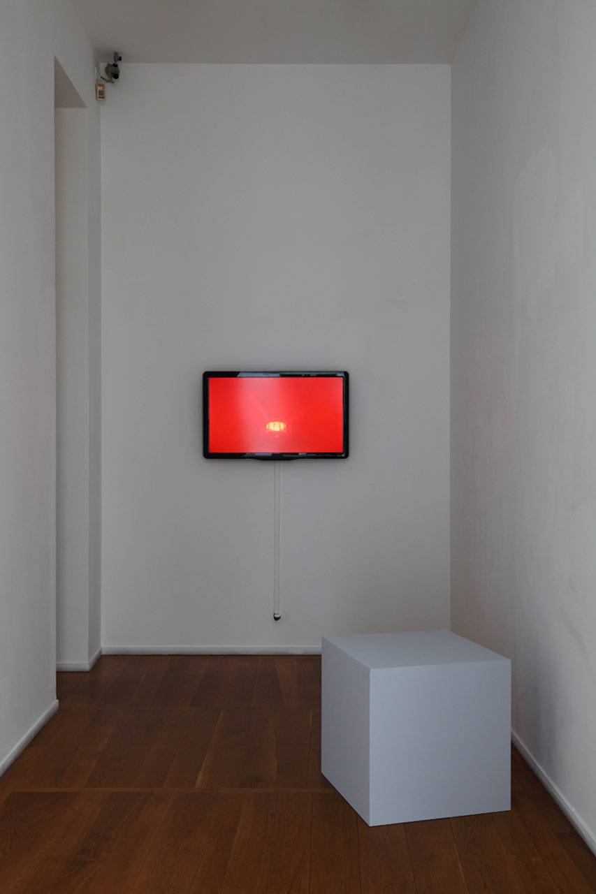 On the first floor, the spectator discovers Light House, a video that serves as an introduction to the exhibition and that was produced during a recent residency at the Nida Art Colony in Lithuania (which has a lighthouse). The color red that saturates the image decontextualized and dematerializes the object and gives it another function: here, the uniform rhythm of the lamp’s beam functions as a timepiece.