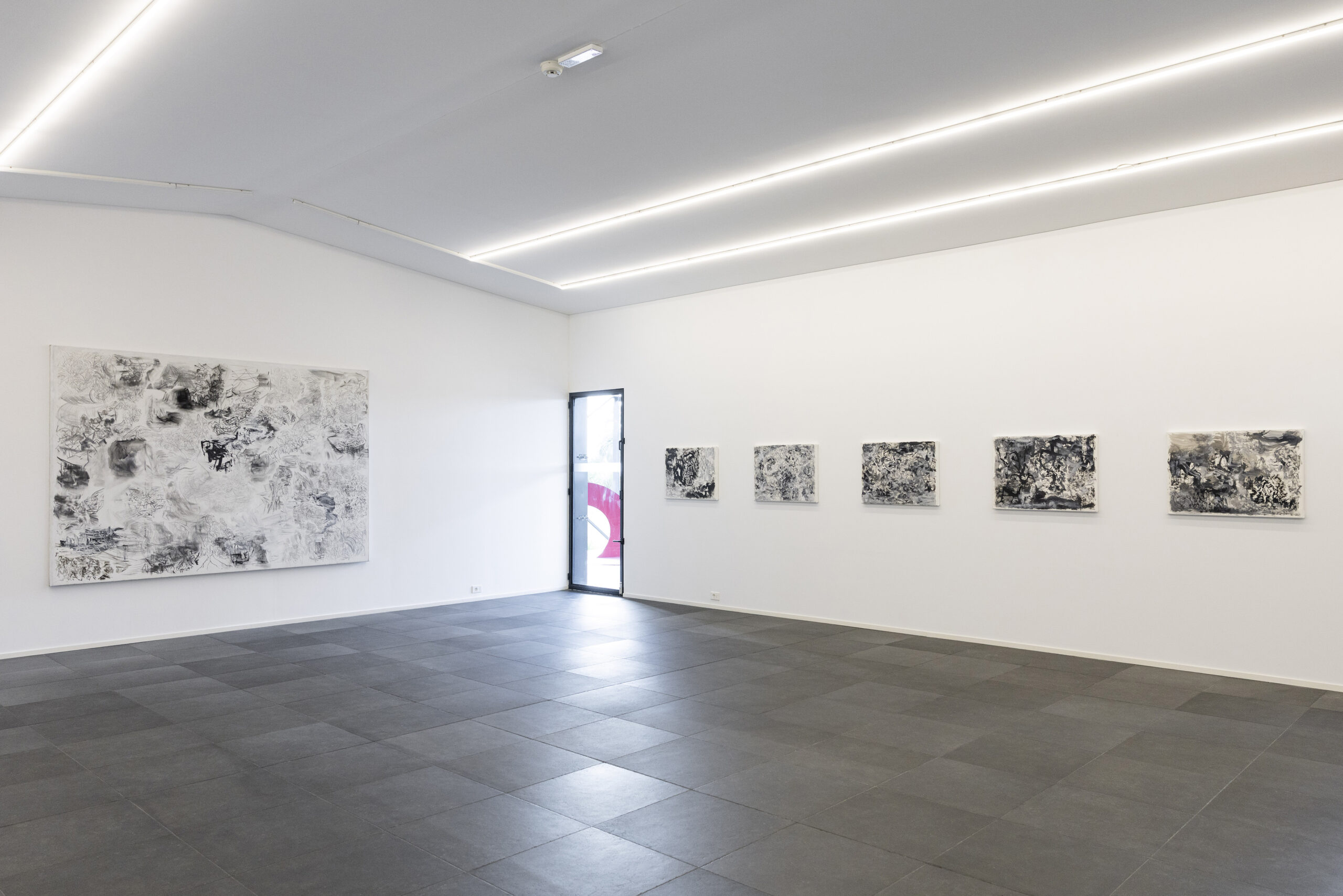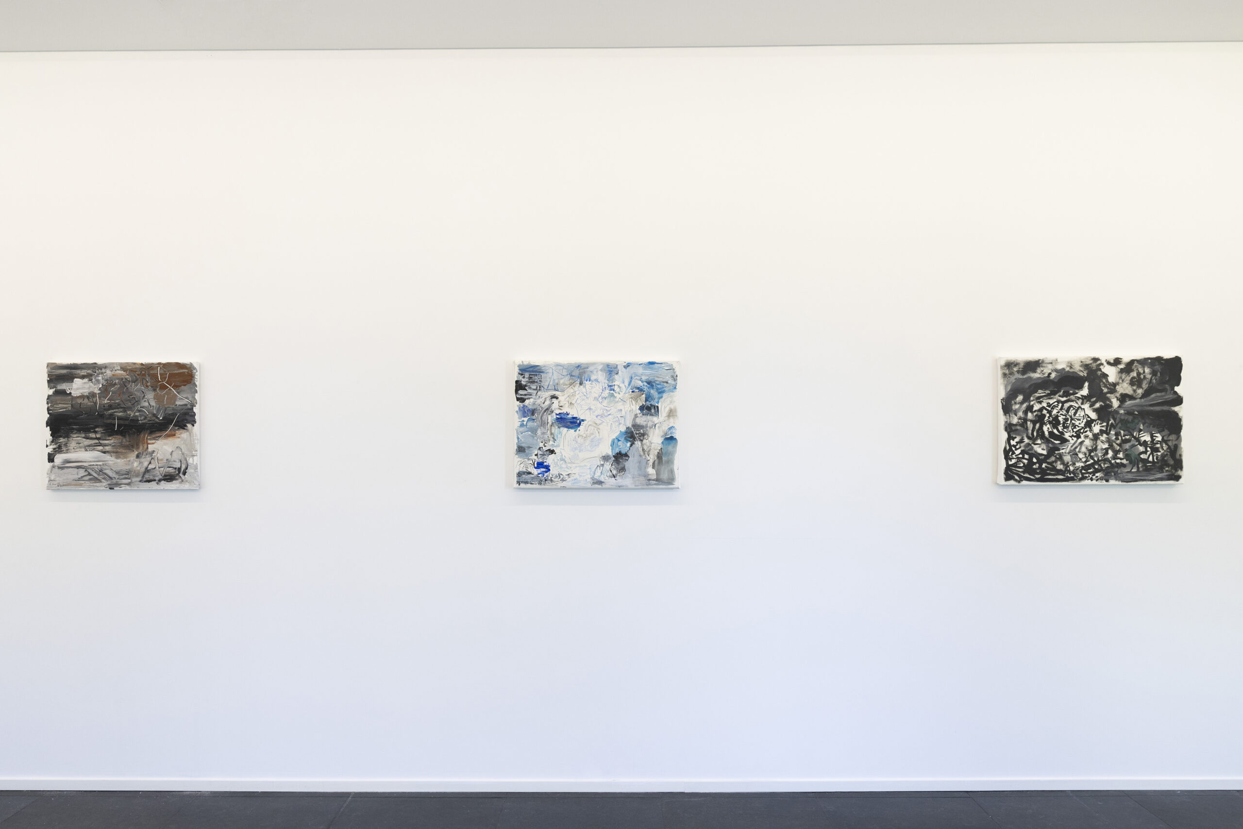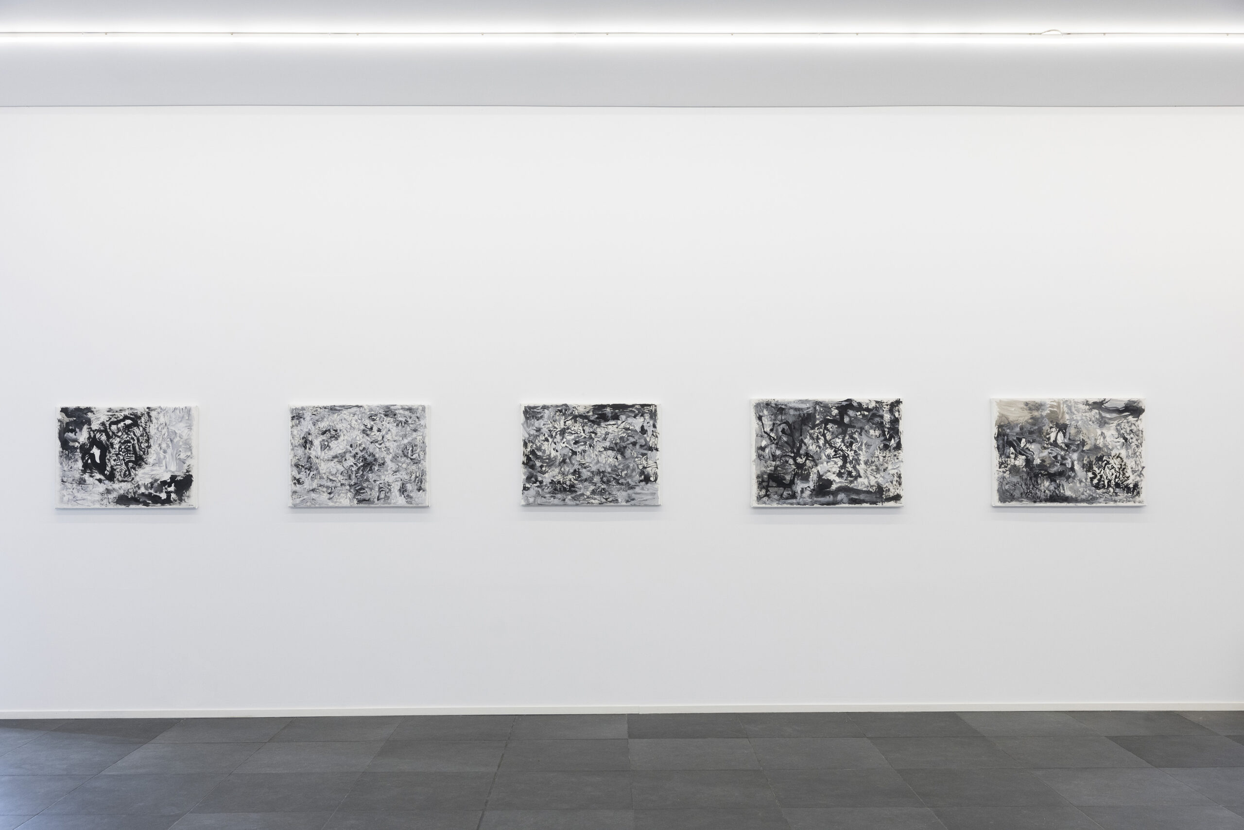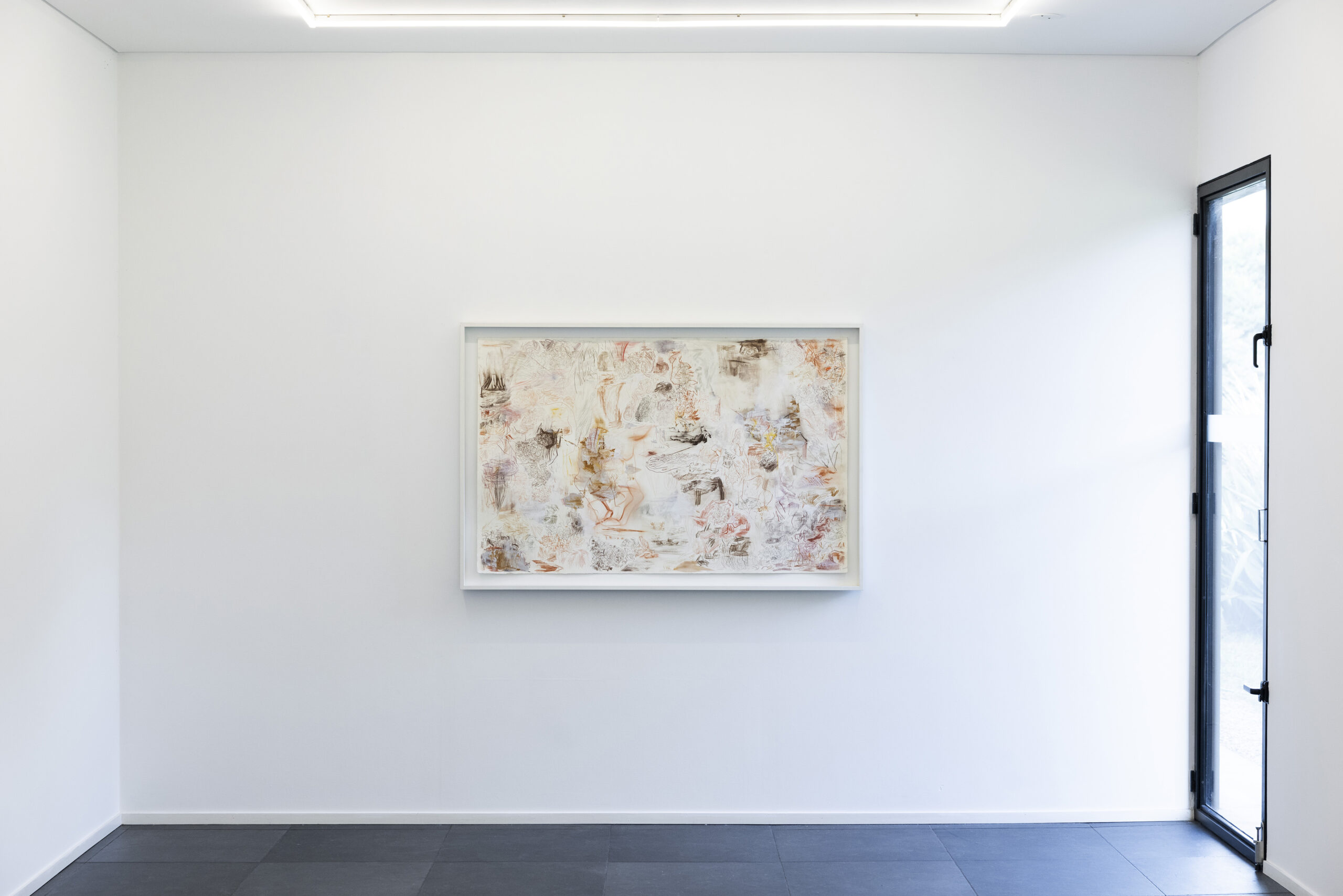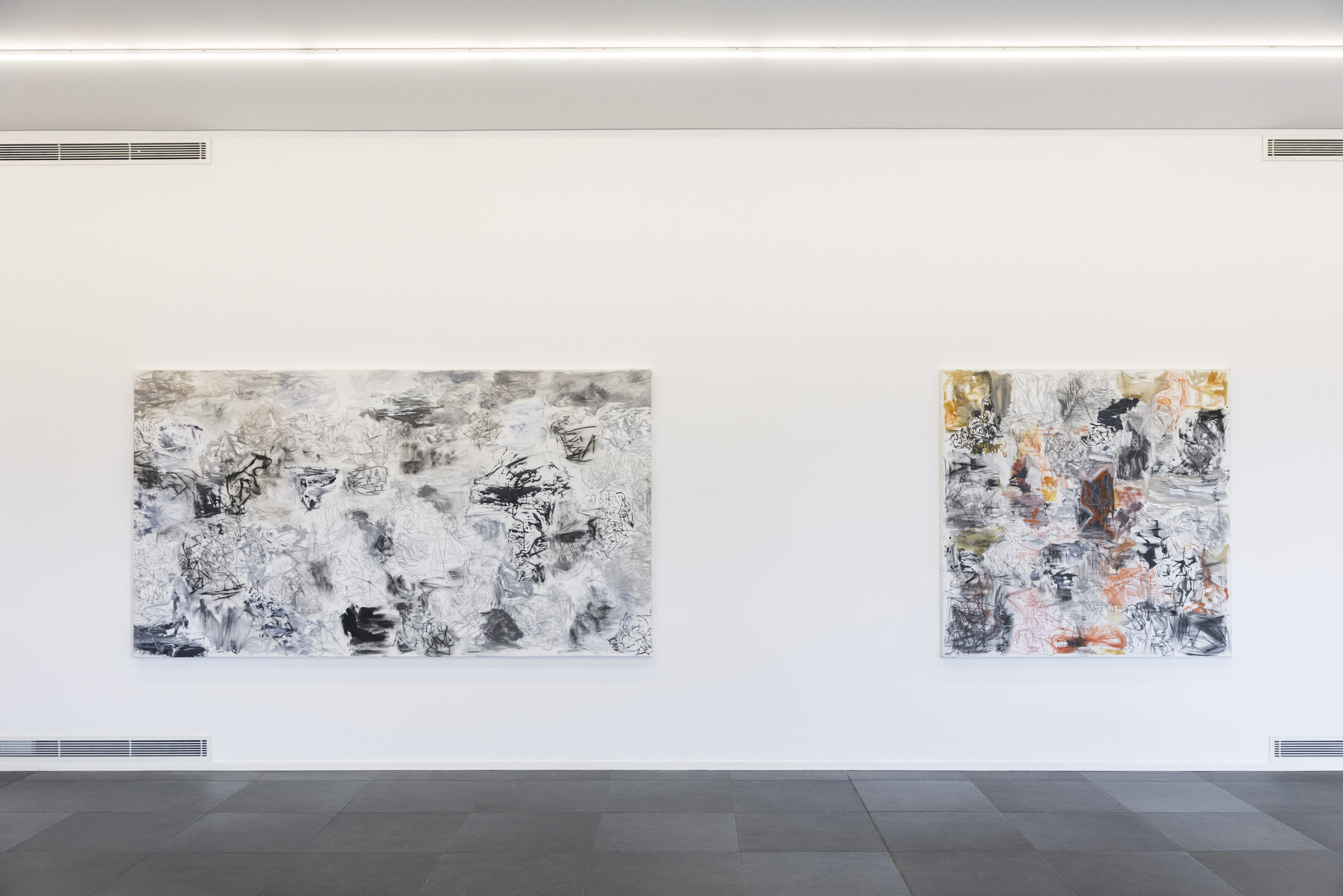On a set of canvases and papers of various sizes, an anxious counterpoint of weavings, smudges, strokes, spills, transparencies, superimpositions, textures, marks, traces, remains, and splashes develops. It is the agitated domain of a terminology as addicted to reconciliations as to opposites, where it offers the fragile reading a territory of appearances that act as if they assumed a vocally nominative direction, but only pretend to do so. In a disharmony of factors as physical and tactile as artificial and elusive, feigned adhesions to the skeletal remains of the reference provide tiny flashes of certainty. They are mirages in a world of visual objects that only resemble themselves, while pretending to mirror their likeness with the infinite things stored in the bazaar of the nonexistent.