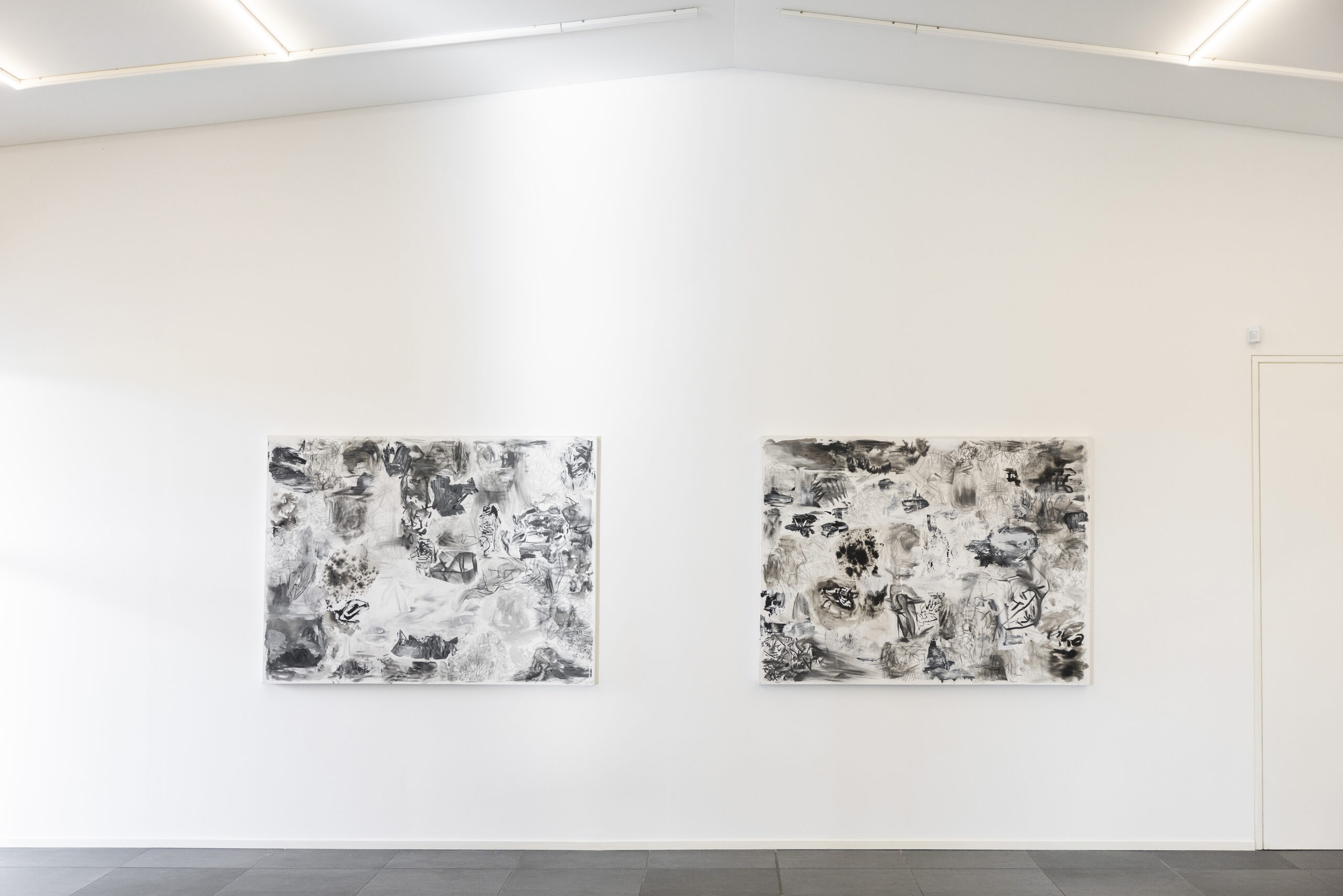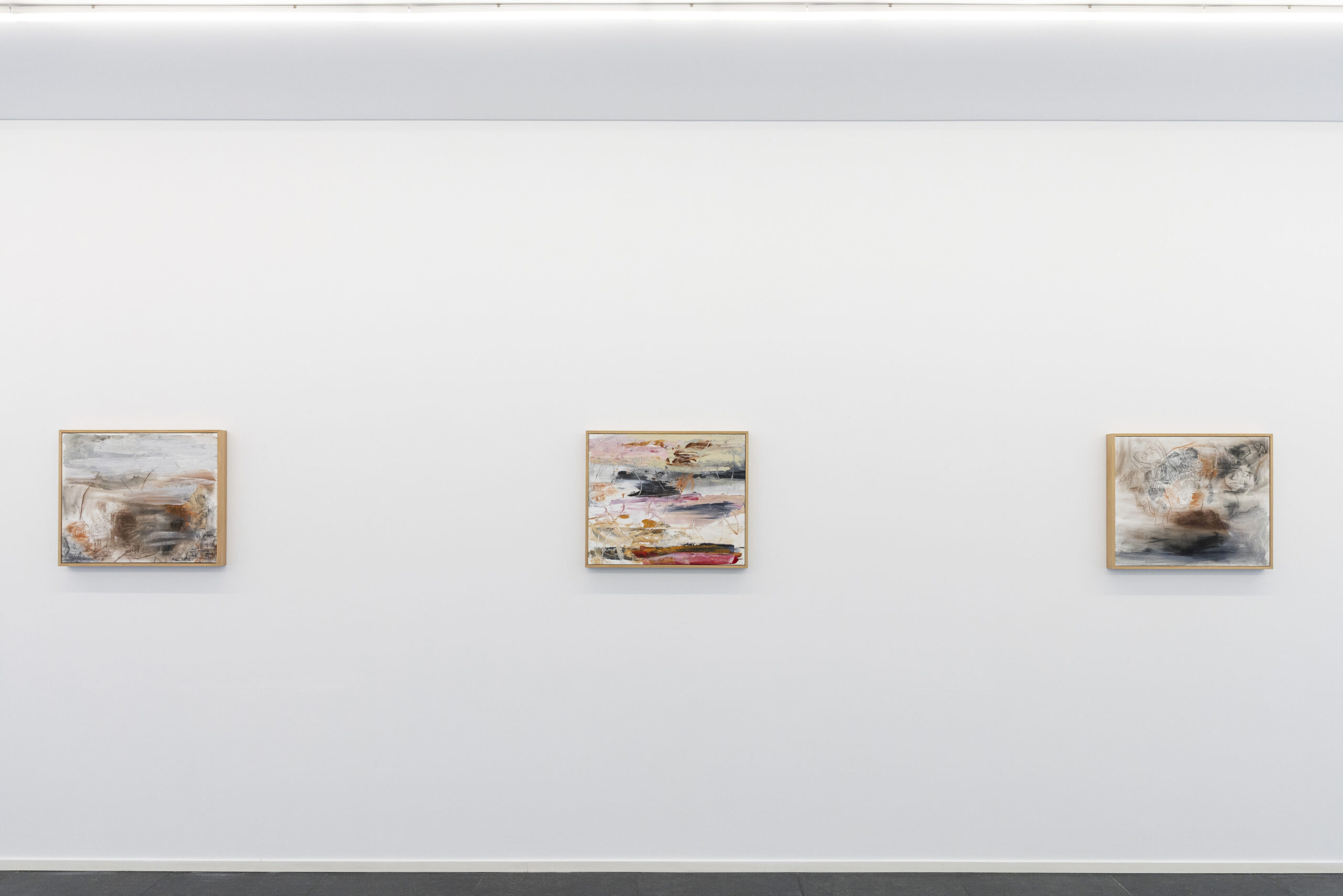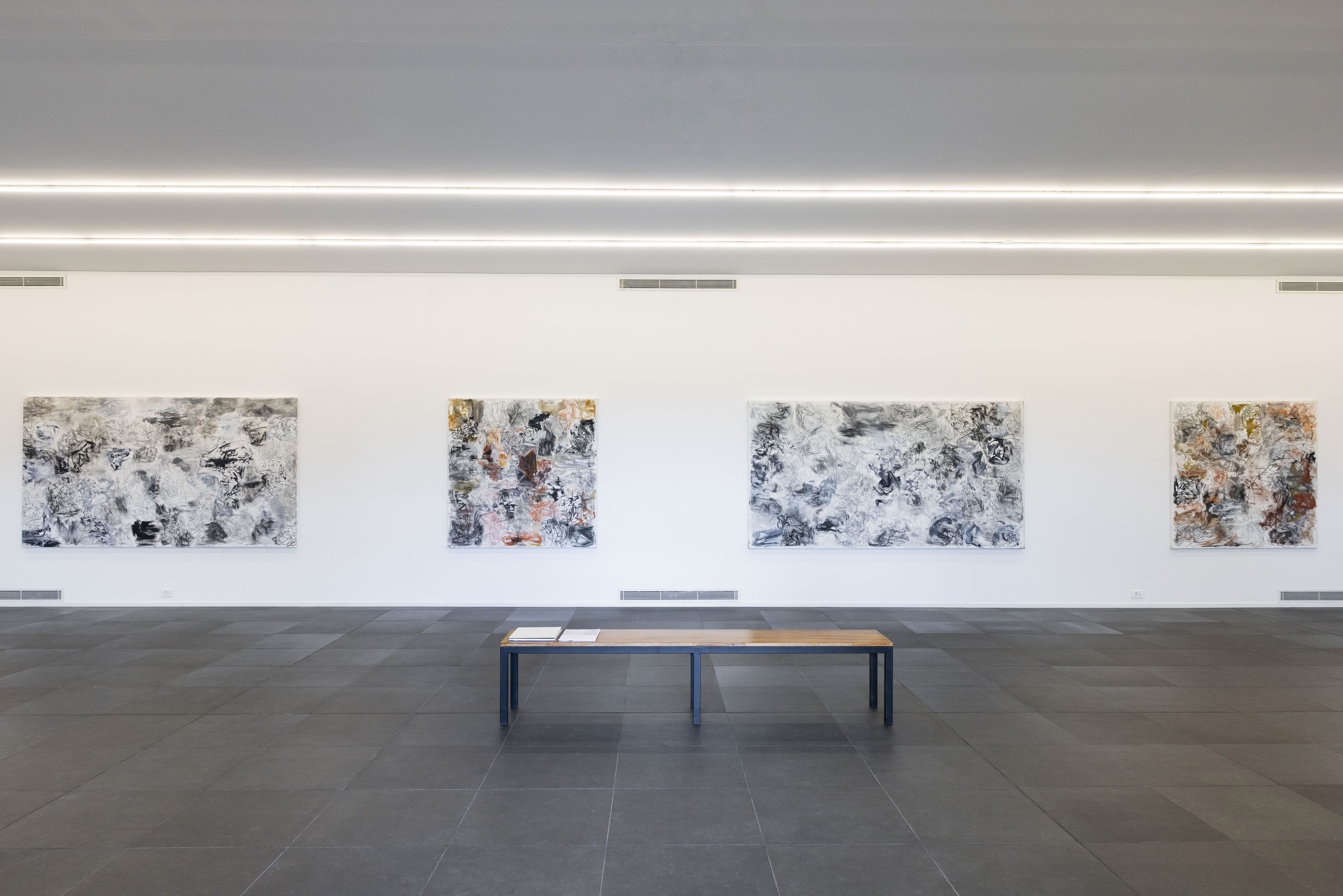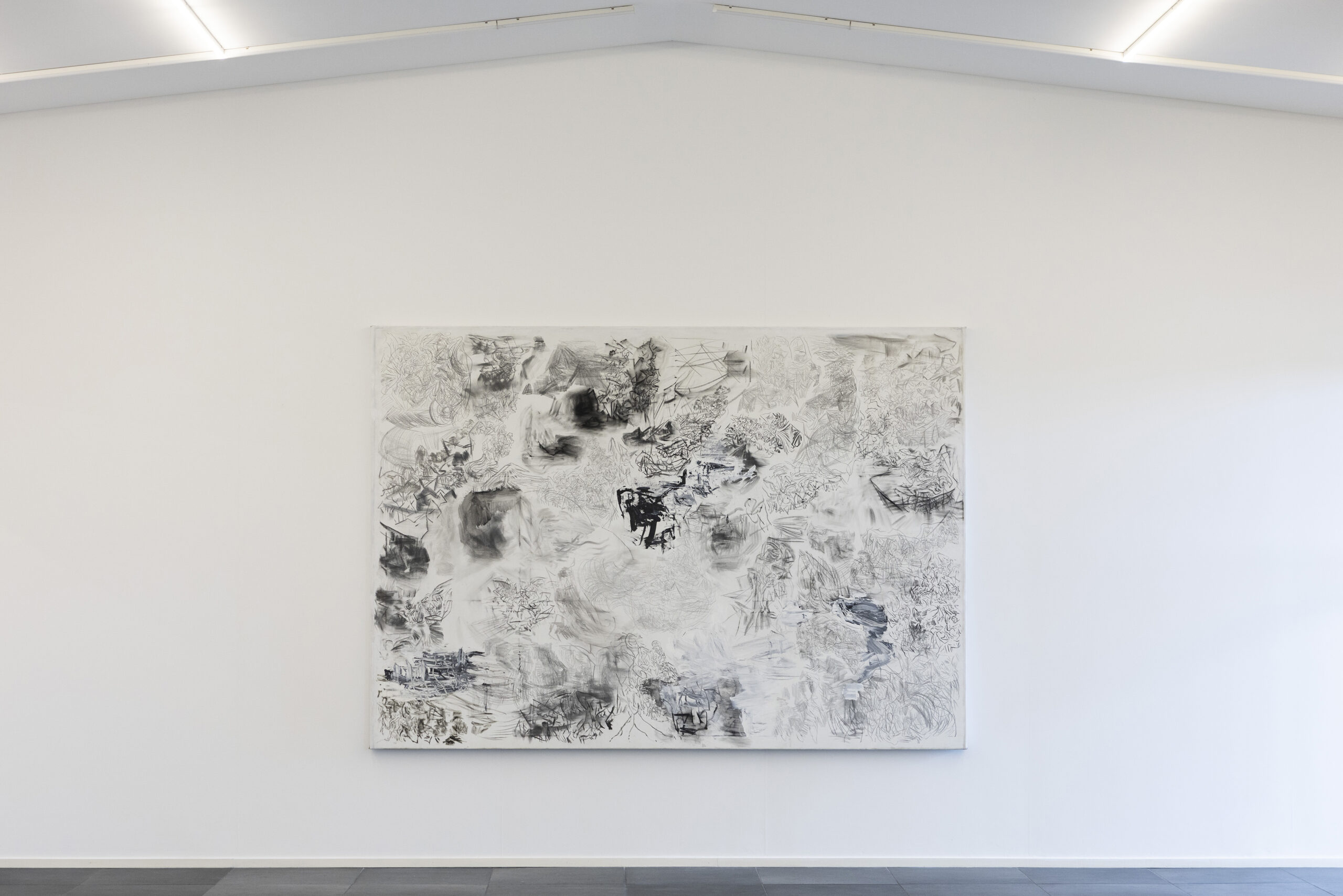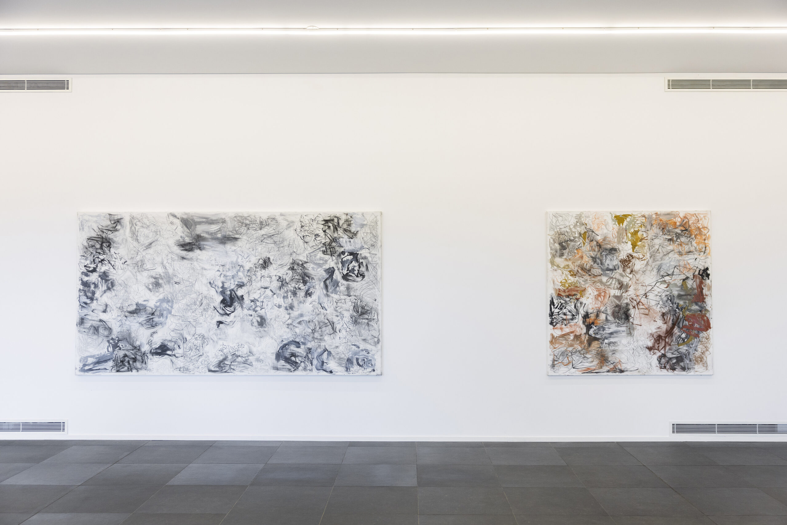 On a set of canvases and papers of various sizes, an anxious counterpoint of weavings, smudges, strokes, spills, transparencies, superimpositions, textures, marks, traces, remains, and splashes develops. It is the agitated domain of a terminology as addicted to reconciliations as to opposites, where it offers the fragile reading a territory of appearances that act as if they assumed a vocally nominative direction, but only pretend to do so. In a disharmony of factors as physical and tactile as artificial and elusive, feigned adhesions to the skeletal remains of the reference provide tiny flashes of certainty. They are mirages in a world of visual objects that only resemble themselves, while pretending to mirror their likeness with the infinite things stored in the bazaar of the nonexistent.