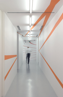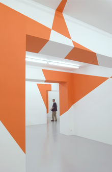 Felice Varini’s field of action is architectural space. Everything that constitutes such space is the raw material for his work – a work shaped in situ and in relation to the spaces the artist encounters. Despite the particular characteristics of these spaces the works maintain their independence.