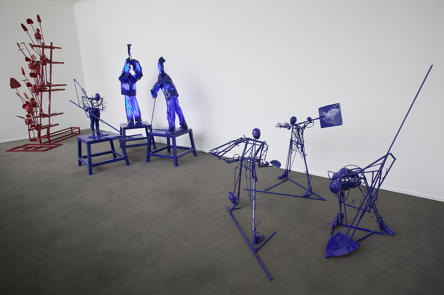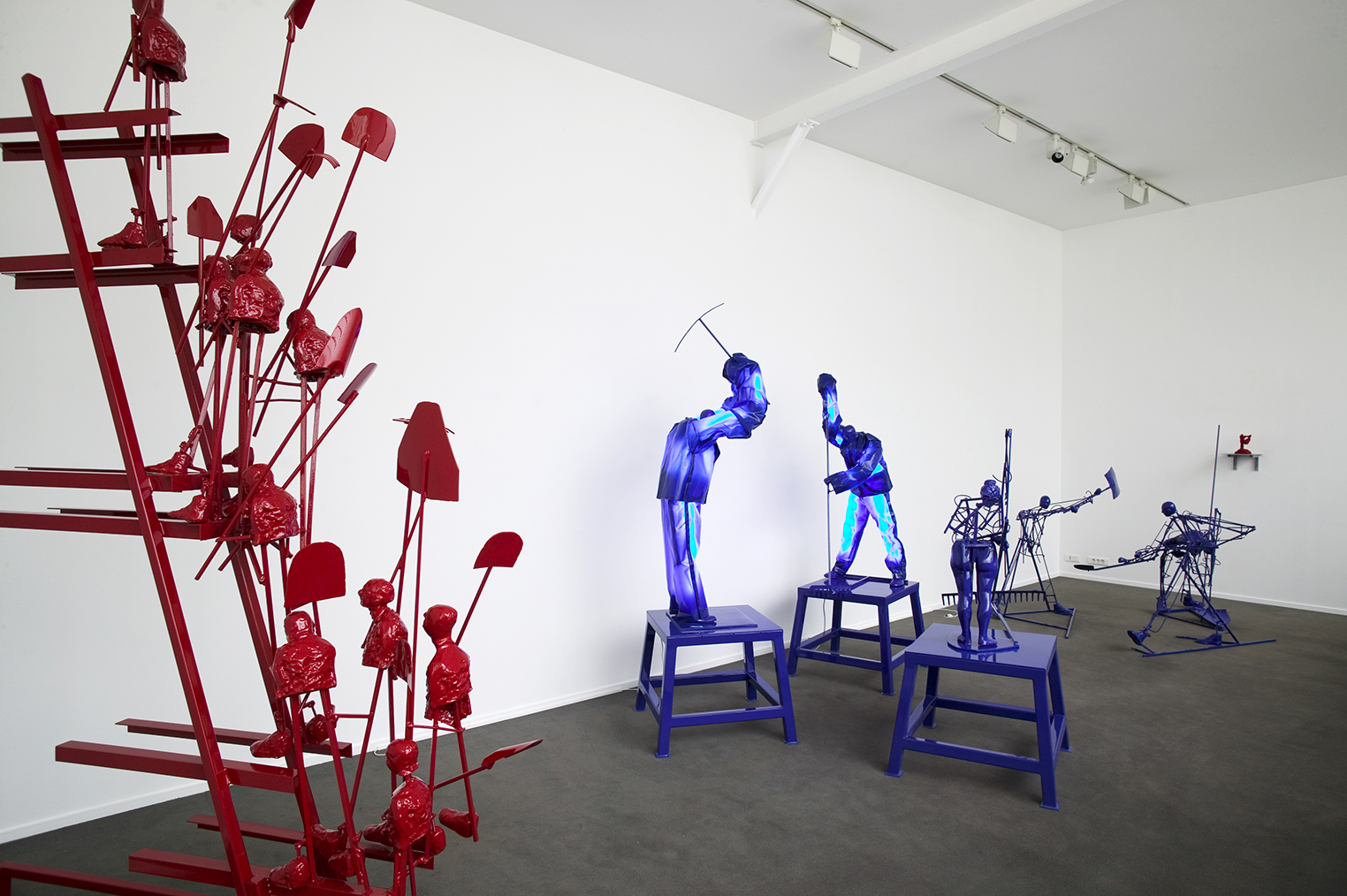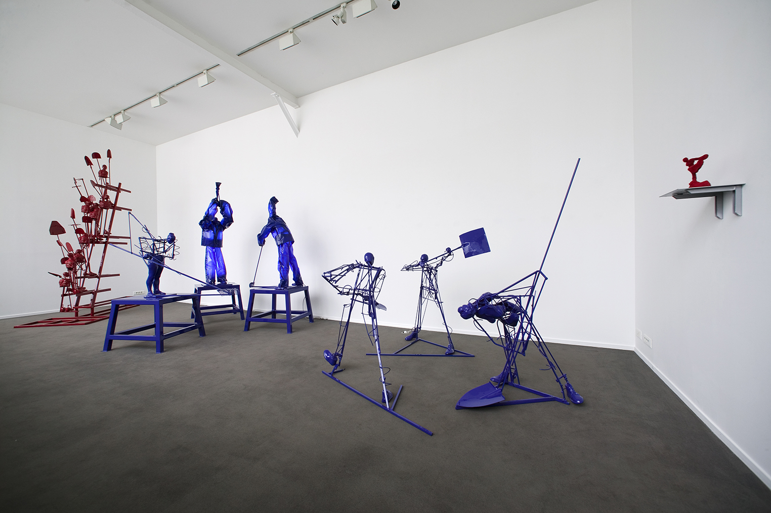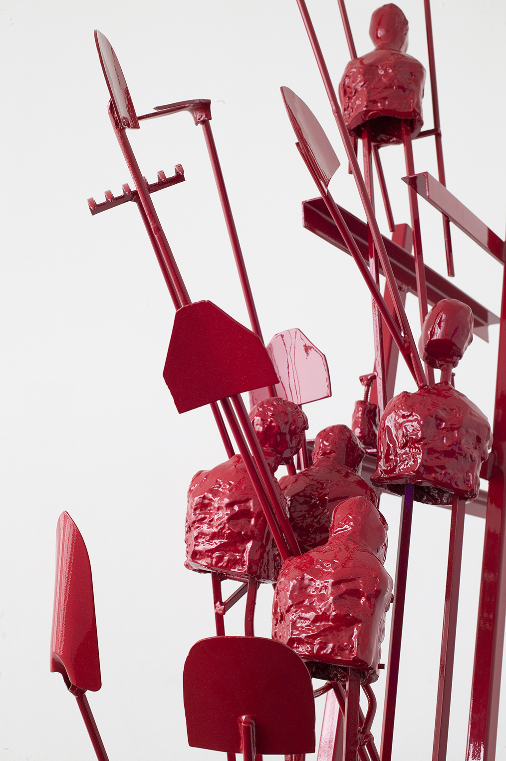 His sculptures take us into areas that we can comprehend only if we are willing to free ourselves of the preconceived images that the media overwhelms us with. The objects that he comes up with are not part of the collective imagination, or our iconography. Neither are they a reference to products whose design follows any form or fabrication constraints. Rather, deformation, remodeling and reorganization of volumes are the many expressions that pull you towards a non-Euclidean world and transform the visible into a “vision”. The titles of the sculptures follow the same principles and are to be read as hints for the interpretation of the artwork.