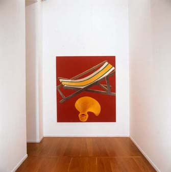 Dans la peinture de Georges Eliades, même si les objets se côtoient sur la même surface ils ne semblent pourtant pas être issus du même espace physique; la vision est fragmentée, l’objet se veut autonome et parfois même sans rapport d’échelle, appuyant ainsi cette vision tautologique où seule la forme serait vraie. Les objets apparaissent parfois tronqués, hors du cadre ou inversement frôlant les marges de la peinture, nous suggérant que la réalité et le sujet se trouvent probablement ailleurs, dans un hors-champ à la limite de la représentation.