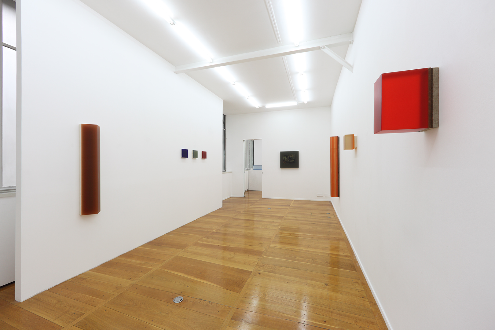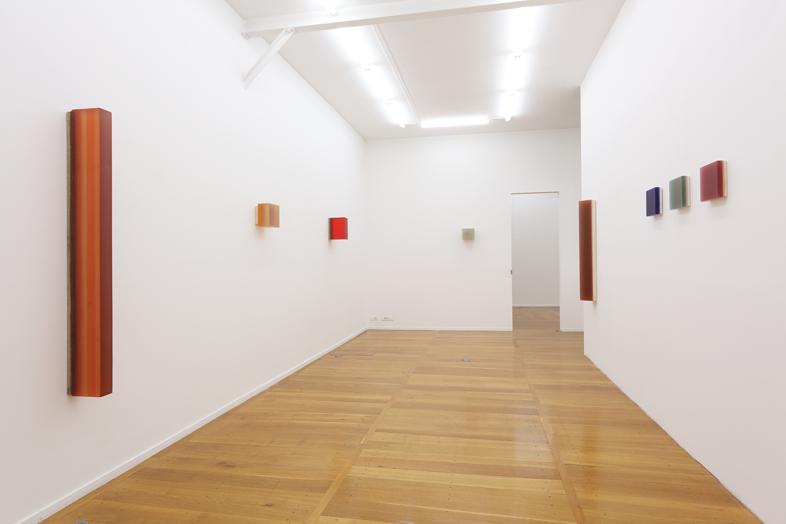 Starting with the 300 or so pigments present in nature, Hamak plays with both the physical properties that allow color to appear to the eye and also with the diverse aesthetic mediums that enable color to attract our eyes. Since color results from a complex chemical process, Hamak’s works focus on color as both a physical material and as a property that reflects light. Because the color is imprissoned in a translucid material, it can interact with the surrounding light. Surfaces of paintings normally relect light, but Hamak’s paintings allows light to penetrate them. Light passes through the paintings, endowing them with a vaporous aspect that belies the true weight and mass of the object.