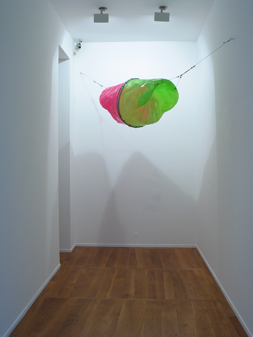 Galerie Xippas is pleased to present British Artist Ian Dawson’s debut exhibition in Paris. In this new body of work, Dawson has melted a variety of rubbish bins all of them rotationally moulded from polyethylene. The manufacturing process involves pouring the molten plastic polymer into a metal mould which is then spun, the centrifugal force coating the walls of the mould with plastic, and solidifying when cool. This process is mimicked in the artist’s studio where the objects are suspended and spun while the heat of a blowtorch is administered.