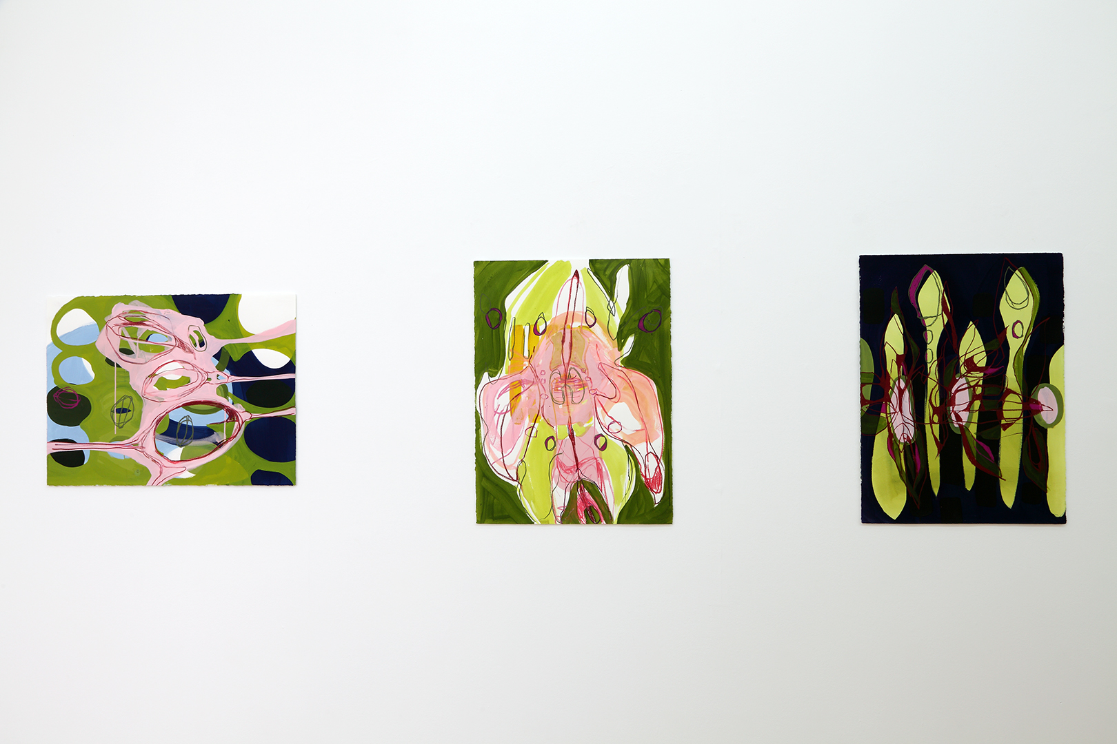 Tschäpe is describing the world in her own language, one we only have a vague understanding of, and will only understand in time, if ever – she takes us to a place where appreciation supersedes understanding. This primordial soup of the pre-conscious is articulated in gestural expression, and its subsequent narrative of the libidinal can be historically located at a time when Surrealism crossed the Atlantic, only to be reborn as Abstract Expressionism – pinpointing a space where the primal sub-conscious is sublimated into physical form.