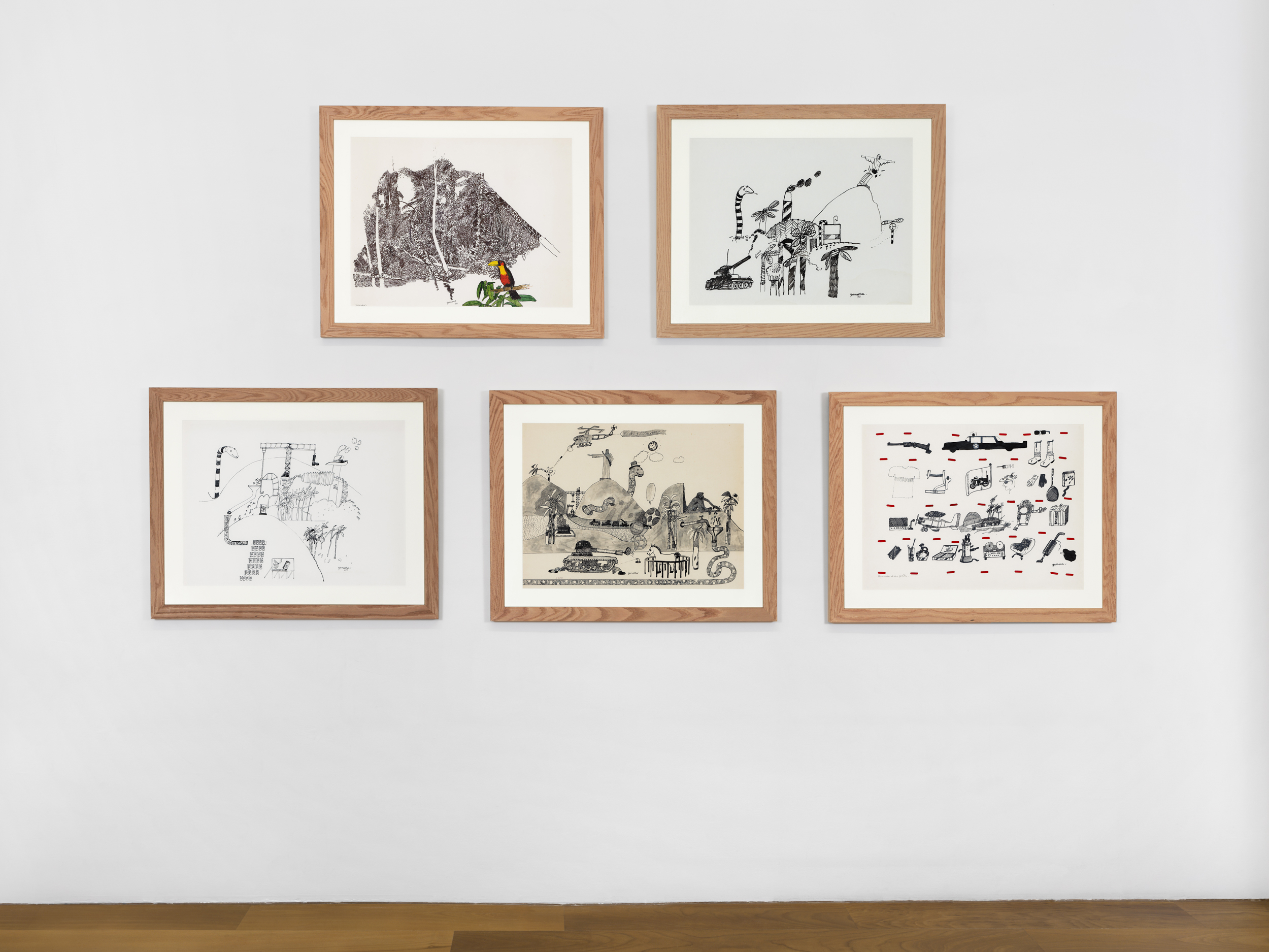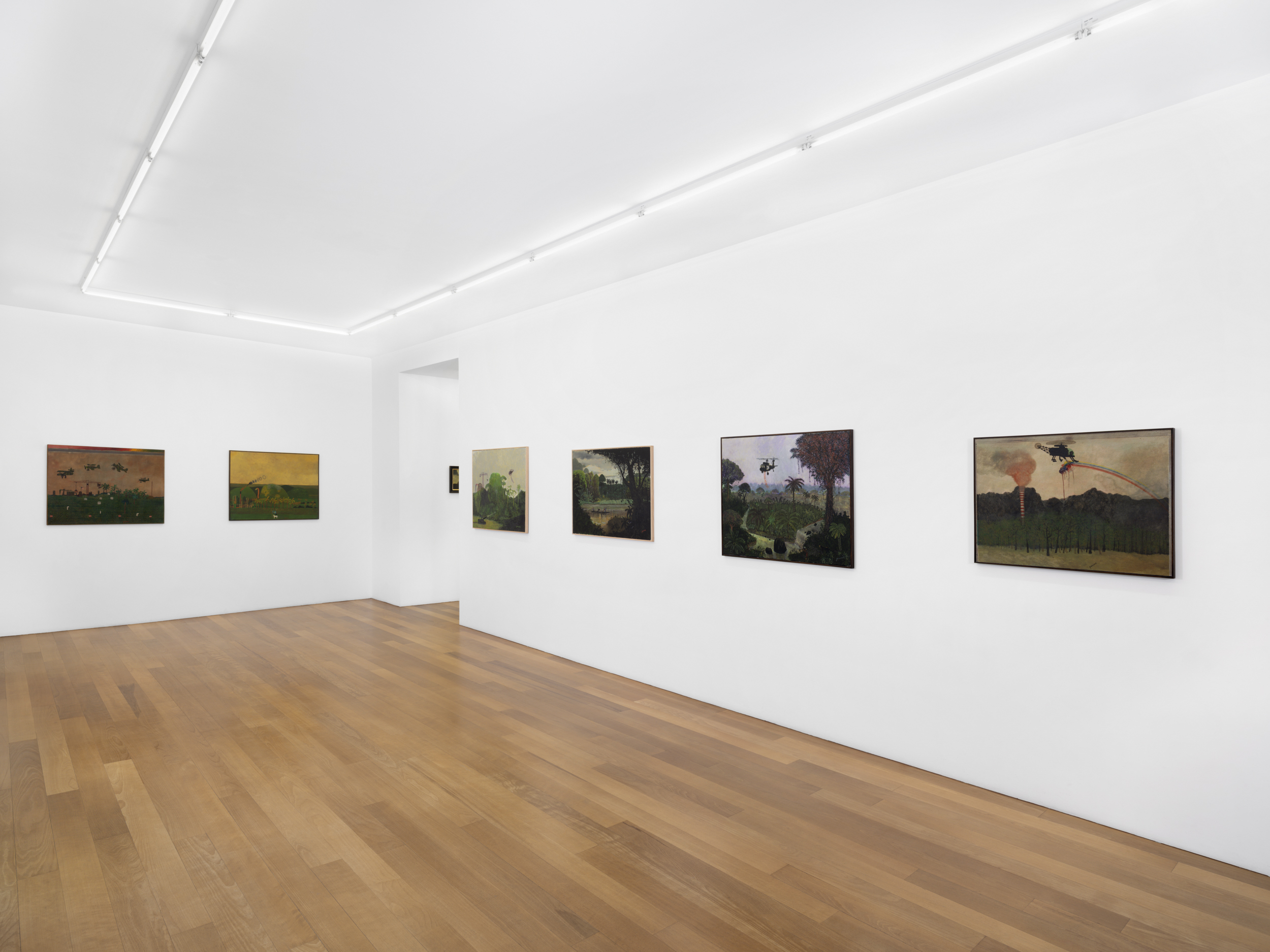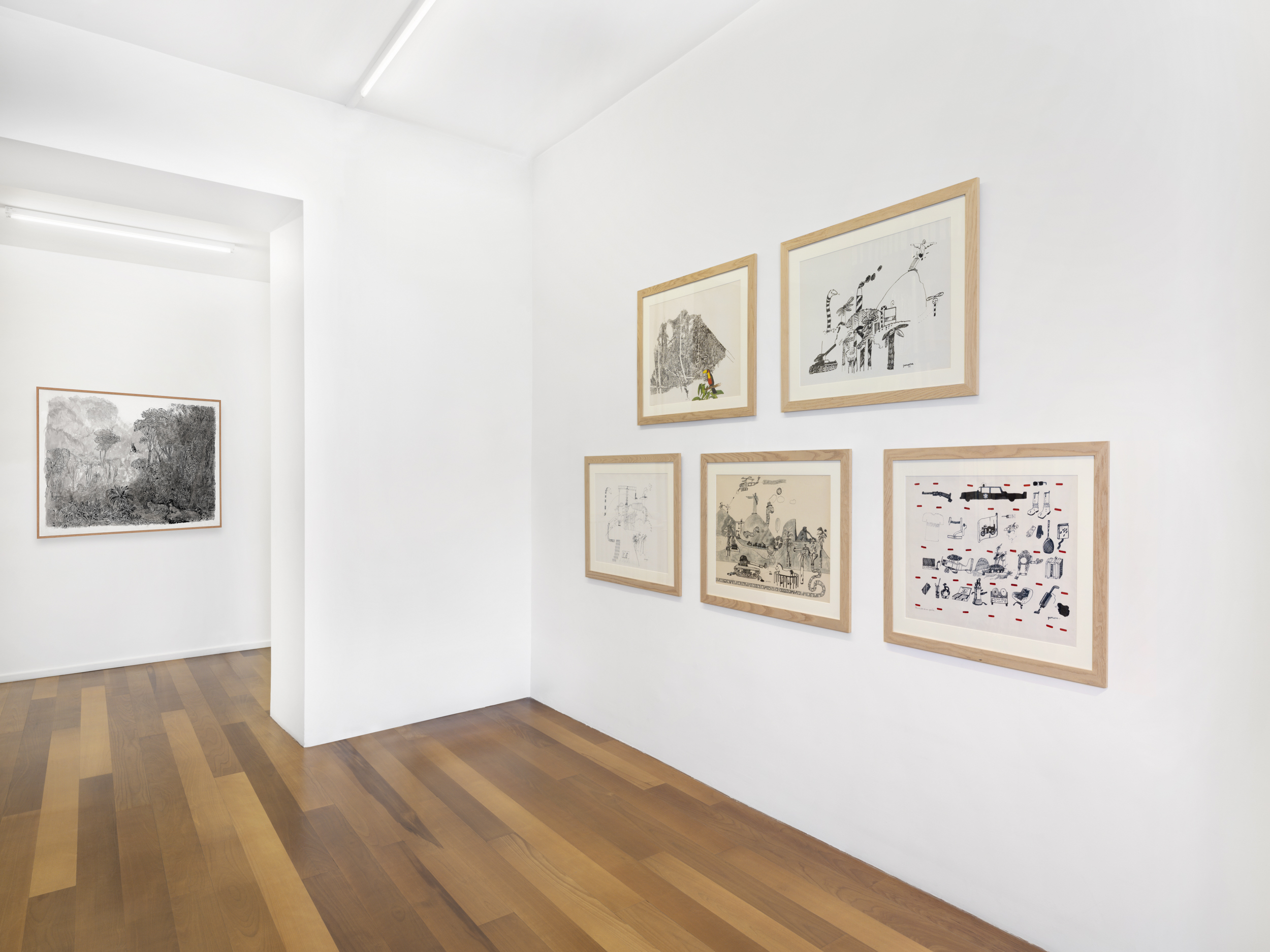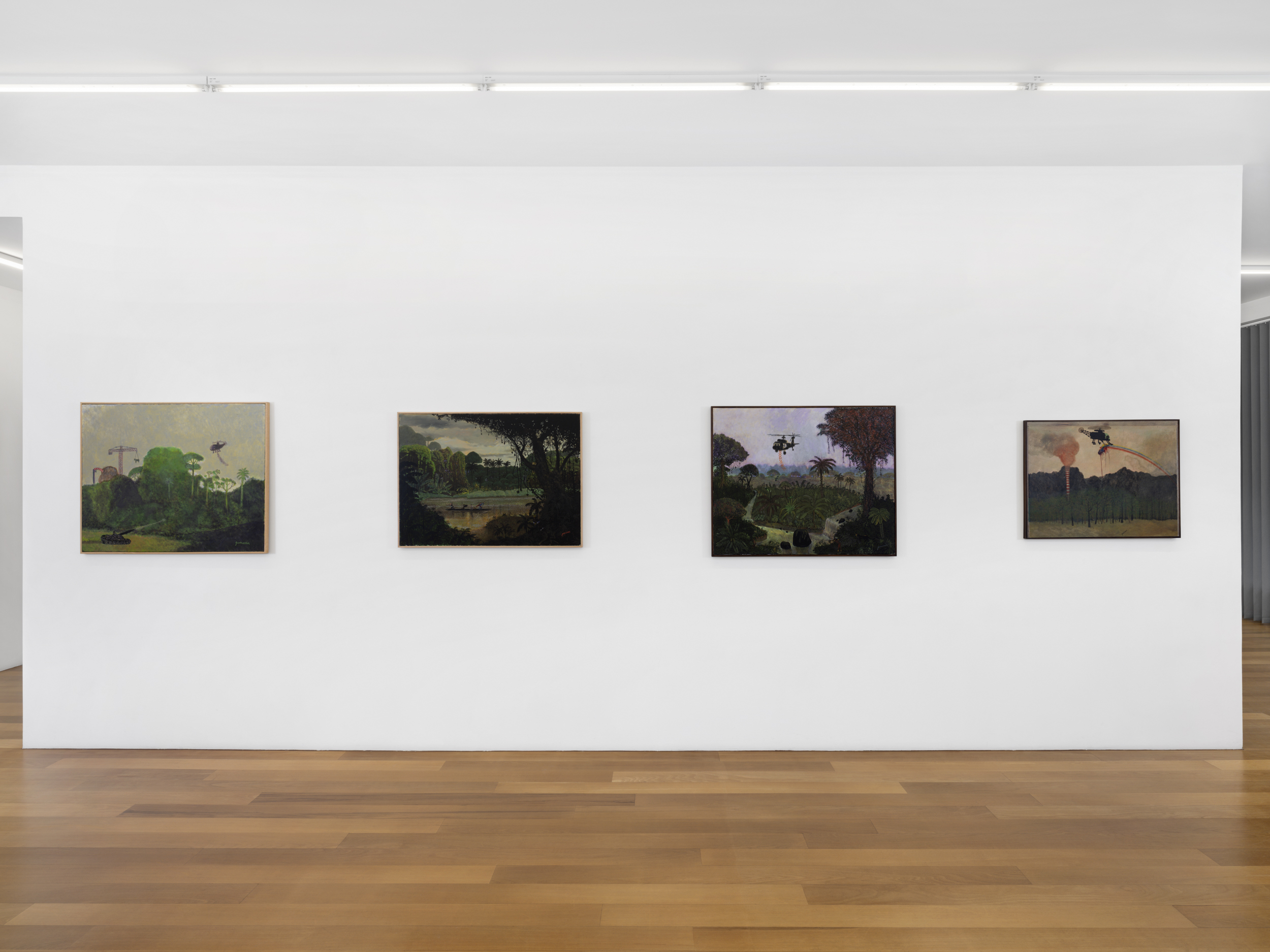 In this infinite and mysterious setting, the artist presents unusual stories where diverse characters from different cultures and historical moments coexist and interact: The Pope and Superman, the Spanish conquistadors of America and mythological animals, or the Yanomami and American sailors. The jungle landscape witnesses and suffers all these conflicts and stands as an ontological space of resistance and resilience perhaps the last possible one.