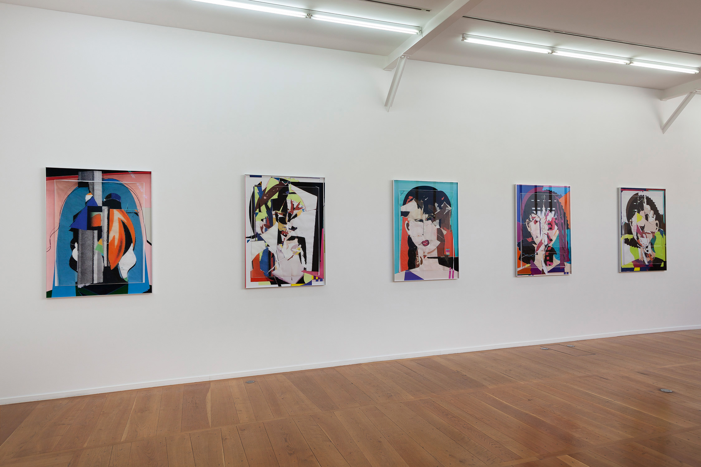 With the Faces series, Marina Faust develops portraits originating from a children’s game supposed to create perfect beings. The artist diverts the intention of the game, and the resulting creatures or “instantaneous states of mind,” challenge our perception of painting, from cubism to trompe-l’oeil. The technique of pigment print on semi-transparent silk tissue paper generates a complexity between collage, photography, painting and drawing, and merge both analog and digital elements. As the artist says, “My collages are the results of experiments with and around photography. I tear, destroy and reconstruct. Accidents govern the method. In a tradition of self-portrait, a discipline I have practiced my whole life, one could see these collages as self-portraits, but also simply as portraits of my contemporaries.”