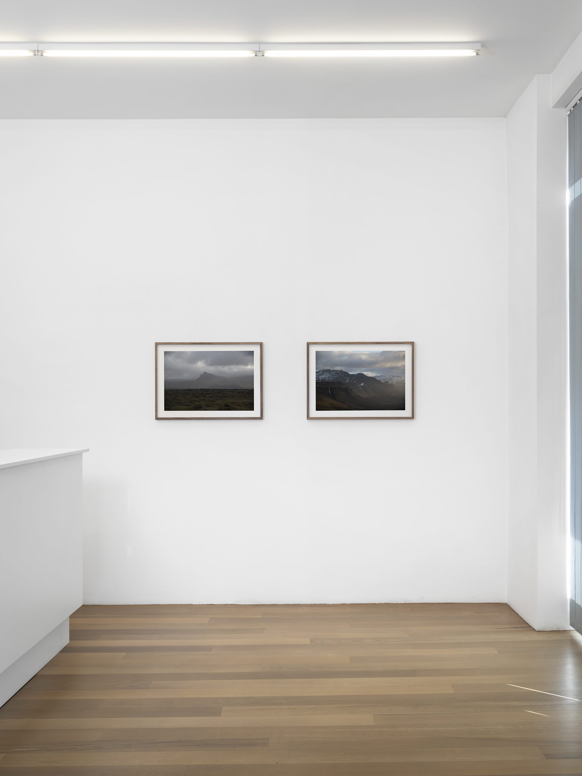 « In the adventure novel Journey to the Center of the Earth (1864), Jules Verne writes: “What is curious about this land of Iceland is not above, but below”. The photographs of Matt Bohli demonstrate the opposite. The exhibition Among Giants presents twenty-five photographs showing the majestic volcanic landscapes of Iceland. Since the early 1960s, this land of mist characterized by the omnipresence of an extraordinary nature has been a subject for many artists, and especially for Dieter Roth, a true mentor of the Icelandic art scene. However, in the famous sculptural series Island (1968 – 1970), the island of Roth distances itself from an image of pure beauty to become a heap of waste and rotting food. Matt Bohli’s Iceland has nothing to do with the degraded representation of the member of Fluxus, it is even quite the opposite. The mountains of Among Giants, whether misty, sunny or snow-covered, devoid of any human trace, in an impeccably mastered framing, celebrate the spectacle of an almost overwhelming powerful nature, not without recalling the notion of «sublime» as the German romantics described it, – Friedrich von Schiller states in On the Sublime (1798) that “on the mountains dwells freedom”. Matt Bohli’s own photographic protocol comes to confirm Schiller’s words. The mobility of the artist’s gaze on these landscapes, like a cinematographic tracking shot, testifies to a way of nomadism reminiscent of the practice of walking artists, Richard Long or Hamish Fulton, who since the mid-1960s have made traveling in the natural landscape the heart of their work. Matt Bohli walks, wanders, strolls and roams on these Icelandic mountains in search of the ideal image which, unretouched, will translate the very concept of sublime, in a perspective of reconciliation of man and nature, heir to the Rousseauist fantasies of the Reveries of the Solitary Walker (1782).