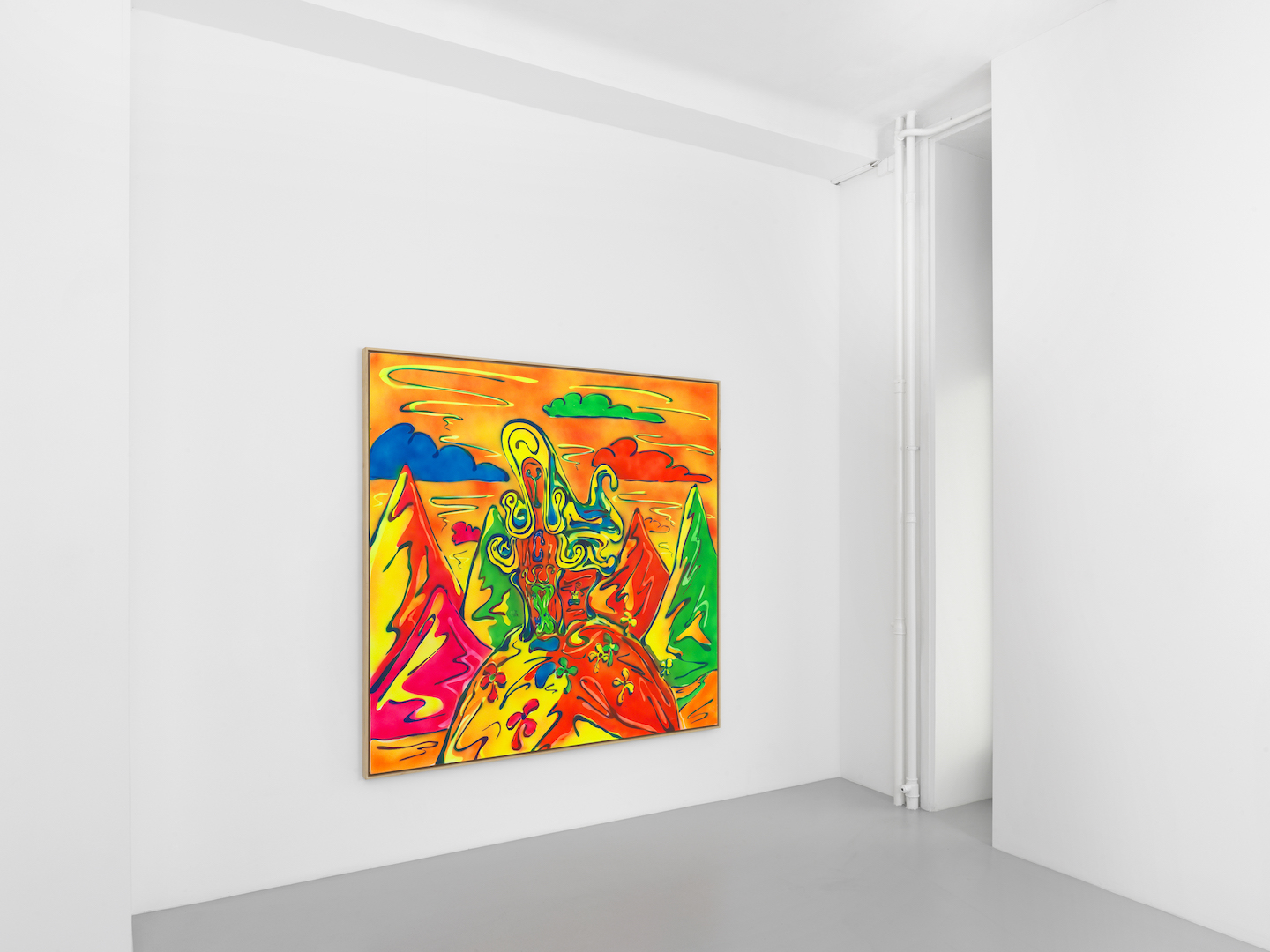 A canvas testifies in the exhibition of incursions of the artist in the figuration. In 1994, Michael Scott stopped line paintings; having not set a term for his work methodology, he said he was coming to the end of his systematic work and wanted to express something else. This 1995 painting, entitled The Realm of the Clown, which describes a psychedelic « Looney Tunes » landscape, would be the very opposite of his systematic work. A neon world, a wacky kingdom where colors are mixed and sprayed on the canvas. However, he will return to geometric abstraction and his search for maximum optical effect while leaving, this time, a more important place to the random. These recent paintings, also presented in the exhibition, reveal a more intuitive practice whose result integrates the hesitations, the changes and the accidents inherent to the methodological processes of the programmed painting.