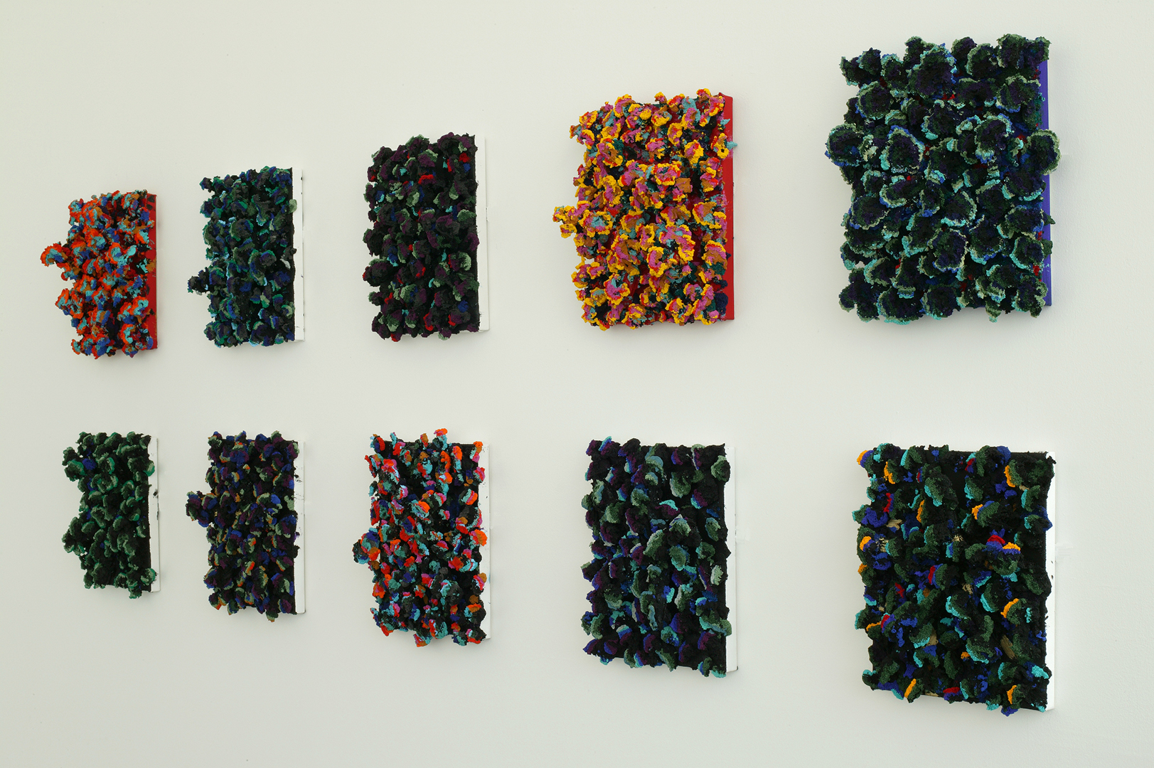 Dans des œuvres plus récentes, Nahas utilise de véritables étoiles de mer agglomérées sur la surface du tableau, puis recouvertes de pigments poudreux aux couleurs intenses, créant une profondeur infinie de la matière. Ces éléments modulaires prolifèrent et animent les surfaces de vibrations instables.