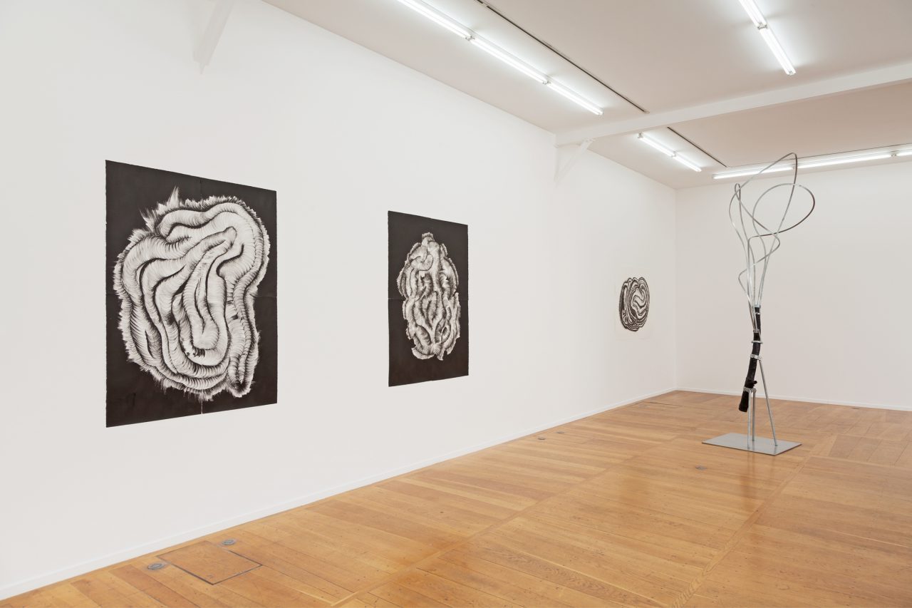 The second direction reappears through the Indian ink drawings that Pablo Reinoso began to create during the lockdown and that he calls Éclosions. The format may seem surprising, but this would be forgetting that his gesture as a sculptor is always preceded by that of a draftsman, and that his sculptures are like drawings in space, especially when they detach themselves from their “object-like” nature to move towards abstraction. Thus, this transition to an intimate, two-dimensional format seems logical, especially since the subject is inspired by the poetry of the microscopic, of vibrating cells. Life is locked in these fragile membranes, like a coiled potentiality, in a foetal state. It preserves itself there, waiting to be ready to assert itself in existence, generating “landscapes, movement, waves, life, time, breathing.” Sculpting life forms in matter.