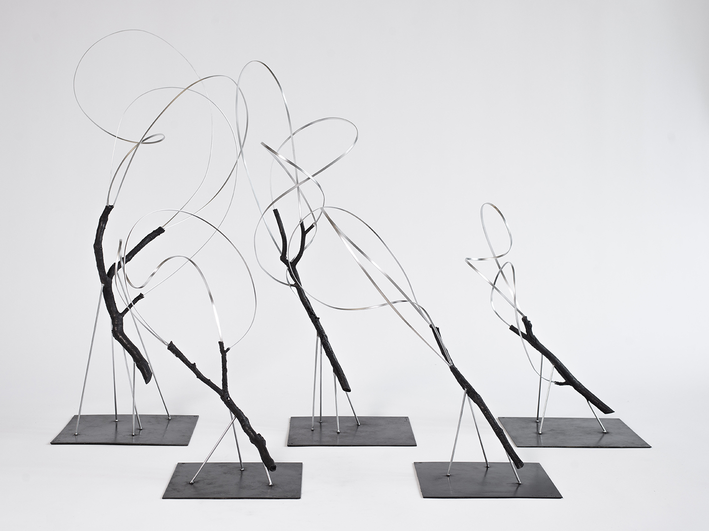 With the Uprooted series, Pablo Reinoso blends together the sinuous curves of his sculptural works with the organic shapes of storm-felled, bronze-cast tree branches. The artworks’ base serves as a resting structure for the natural element, which pursues its growth in a swirl of interwoven lines. Each sculpture has a unique structure, built on a delicate balance between stillness and movement, suggesting both strength and precarity.