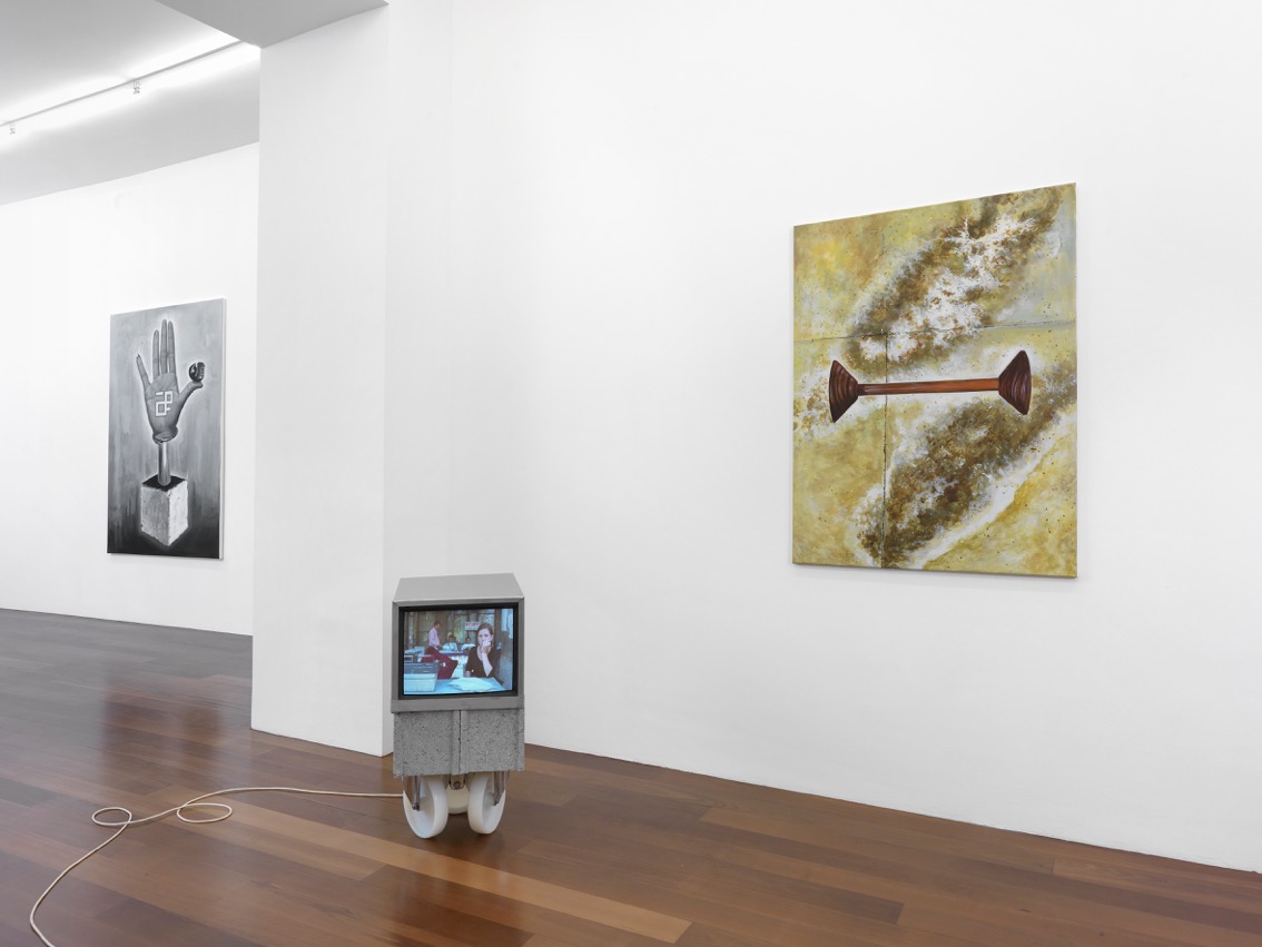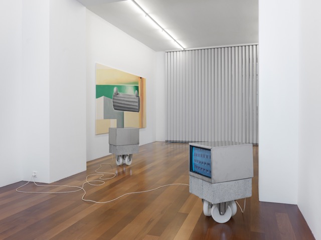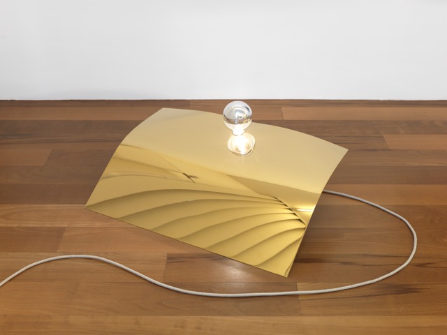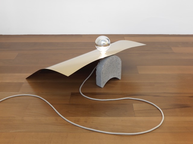 Finally Xippas Gallery presents a sculpture lamp from the artist, Béton-laiton (2015), recently produced by Hard Hat, the Geneva-based publisher of artist editions. It is made from a standard concrete slab, perhaps the most widespread model in the world, a simple brass sheet and a bulb. This construction (simple in its own way), made out of cheap materials used for construction work and decors, plays the porosity between furniture and minimal sculpture, and attest to the richness of the circulation of forms and signs.