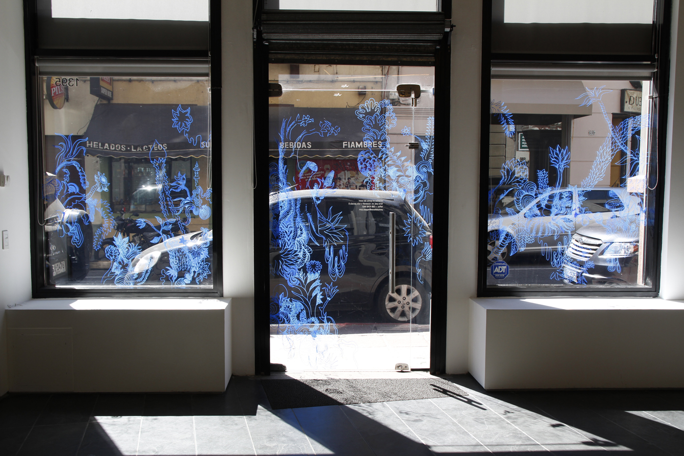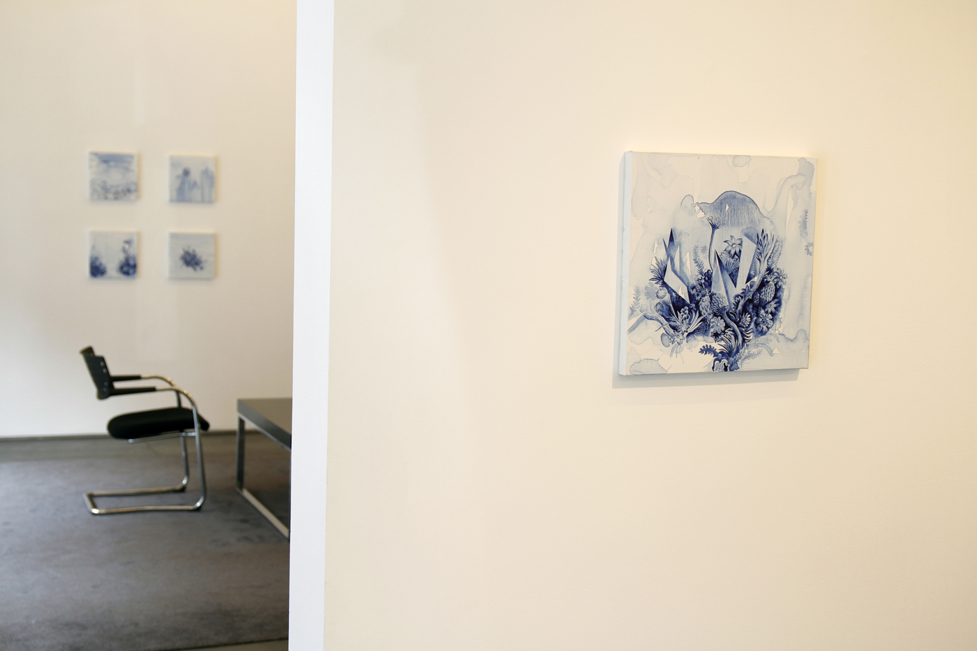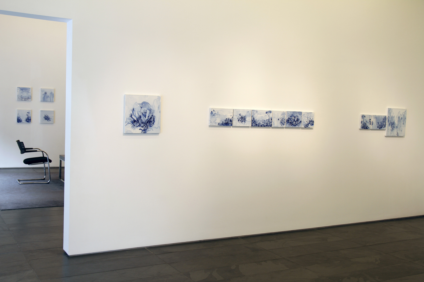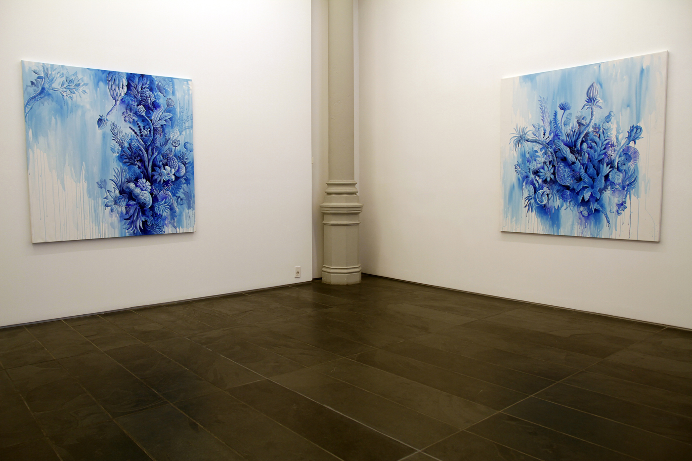 In the work of Varela, the “traditional model” of still life is replaced by vegetation inhabiting the boundary between fantasy and reality. We could wonder if these plants exist, perhaps in the leagues at the bottom of the sea, and therefore would never have the certainty of their existence. Varela gradually presents the mapping of an imaginary world, as if some form at some point might exist, eventually connecting with the “fabrications produced by the real world ” as in literature (fantastic, to Jules Verne) or at the movies (science fiction movies or so-called “adventure films”). This contradiction, of the appearance of the shape- is explored by the historical difficulty of finding the blue pigment.