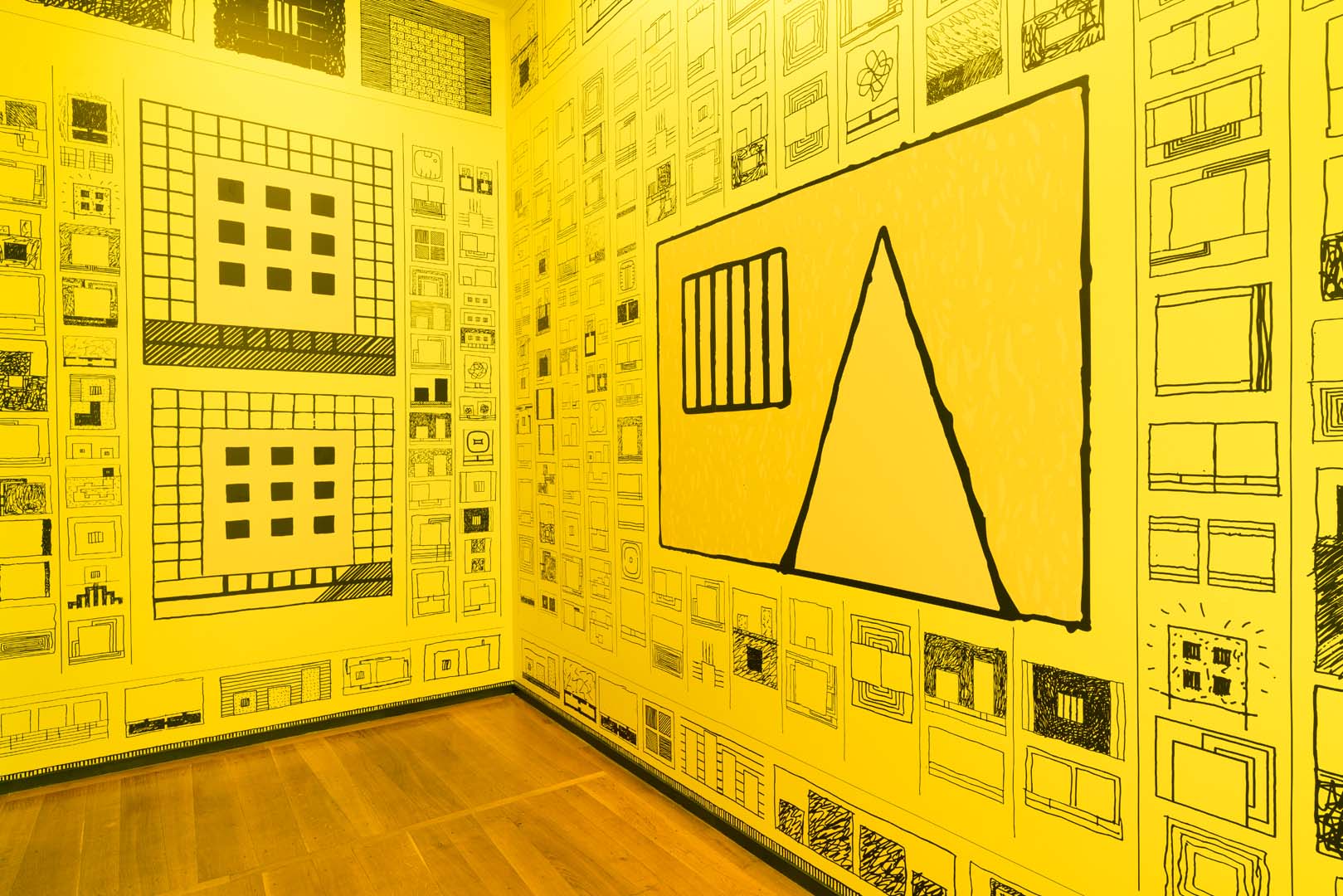 This relationship to architecture is not limited to the format of the canvas. In the 1990s, Peter Halley broadened his painting practice by making installations. The paintings were hung on backgrounds (usually digital prints), whose motifs are drawings and diagrams drawn from his archives or sketchbooks. He also collaborated with designers such as Alessandro Mendini and Matali Crasset. In each case, it was a question of investing the entire exhibition space, in order to consider painting as an architecture, and together with architecture.